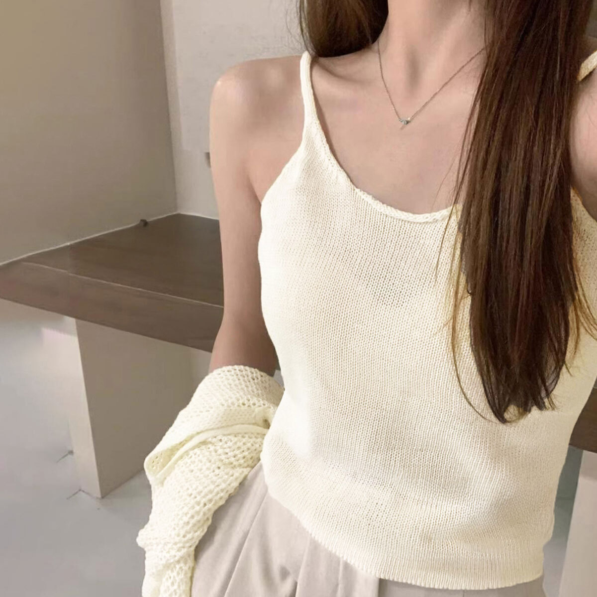 ◇無地のキャミソールはルームウェアとしてもおすすめ。