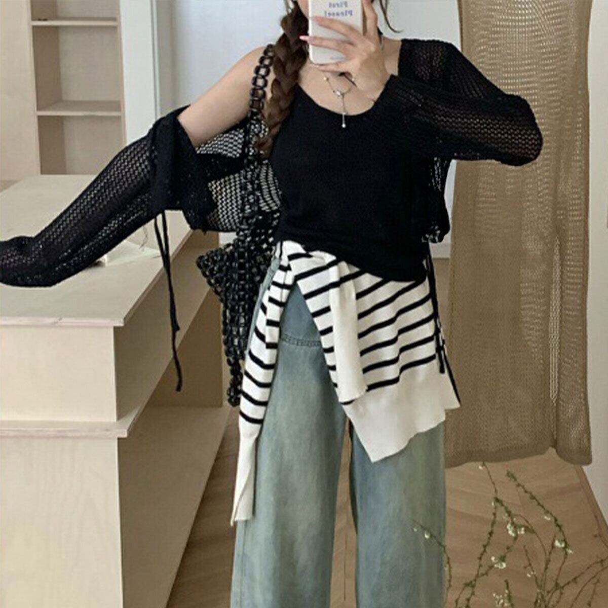 ※ニット素材のため、編み目に隙間が生じる場合があります。同系色のインナーの着用をおすすめします。