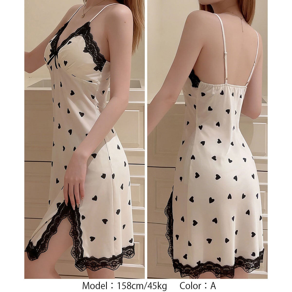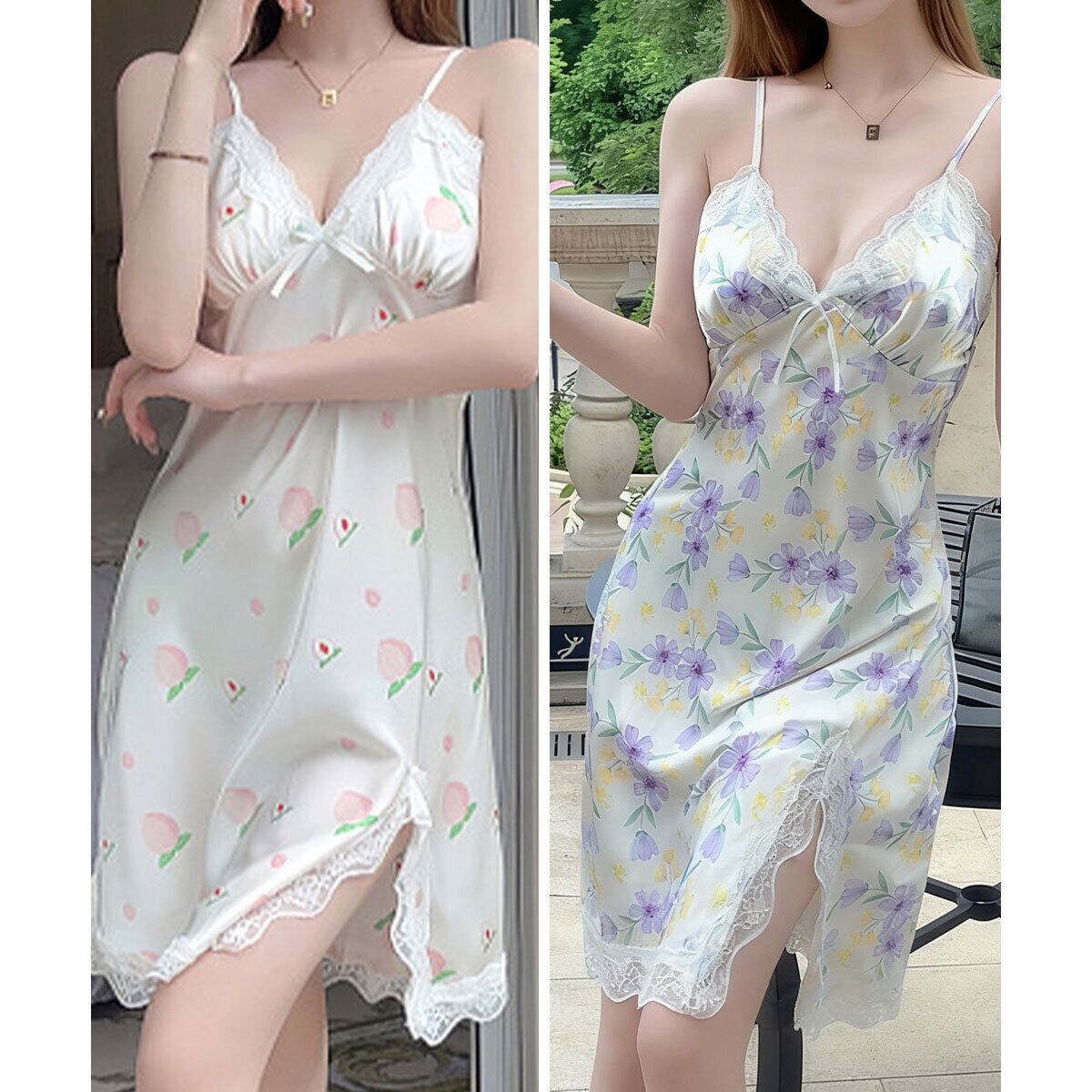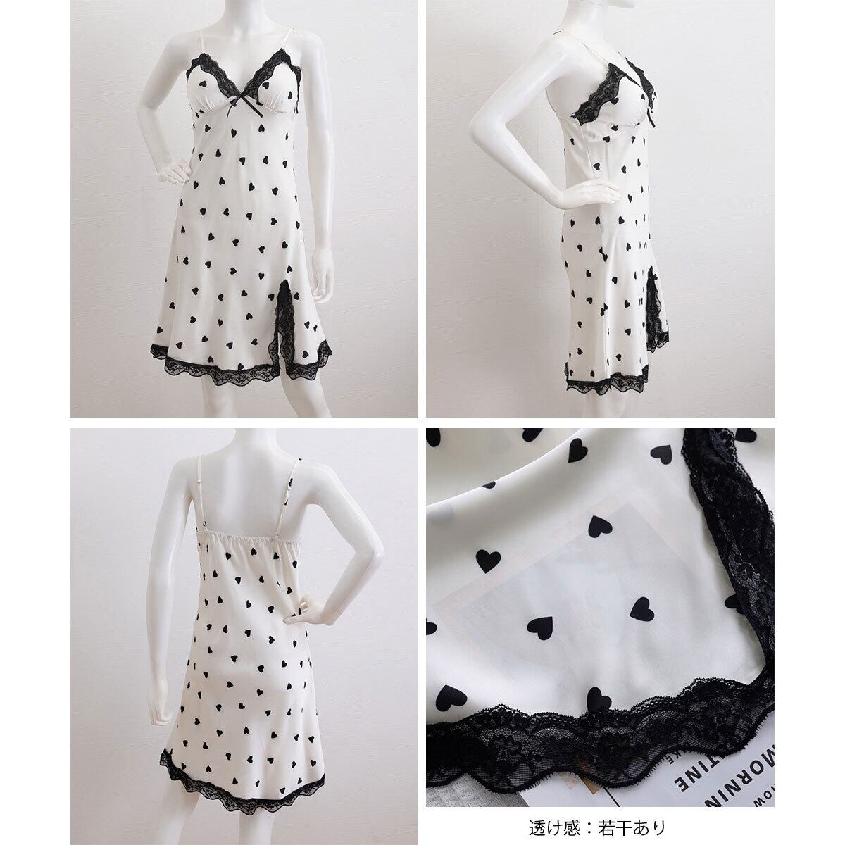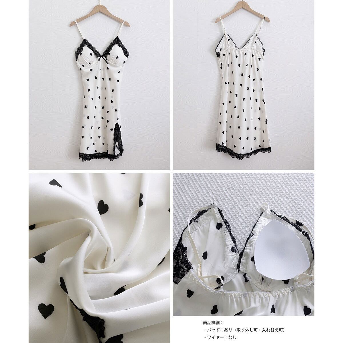 ワンピース パジャマ パッド付き ルームウェア レディース 春夏 韓国 サテン調 ベビードール 大人 かわいい きれいめ キャミワンピ スリット入り 部屋着 寝間着 フェミニン 大人可愛い 大人女子