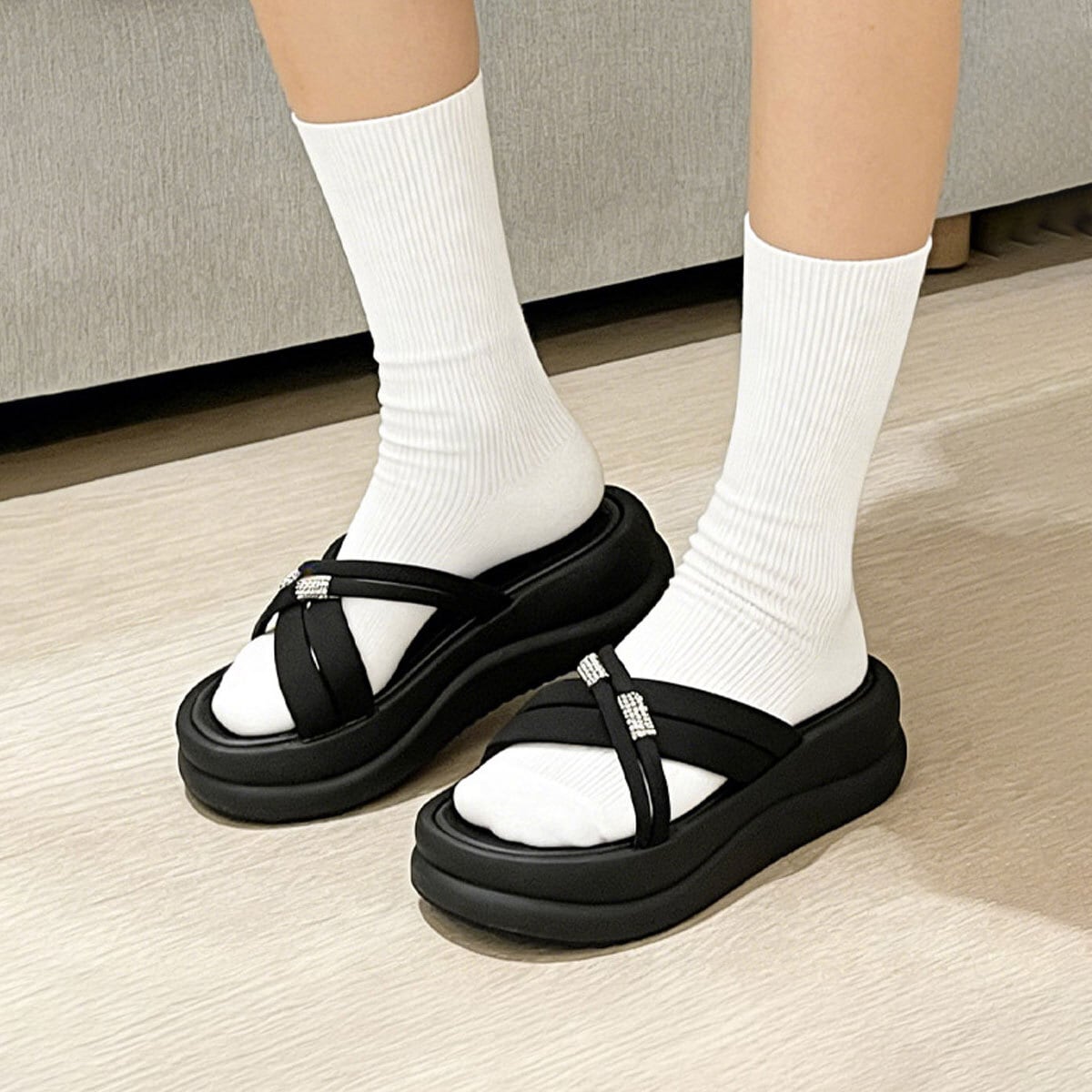 ミュールサンダル 厚底 レディース 春夏 韓国 サンダル きれいめ 大人 カジュアル シンプル ラインストーン ビーチ プール 海水浴 アウトドア クロスベルト 厚底サンダル 大人可愛い 大人女子
