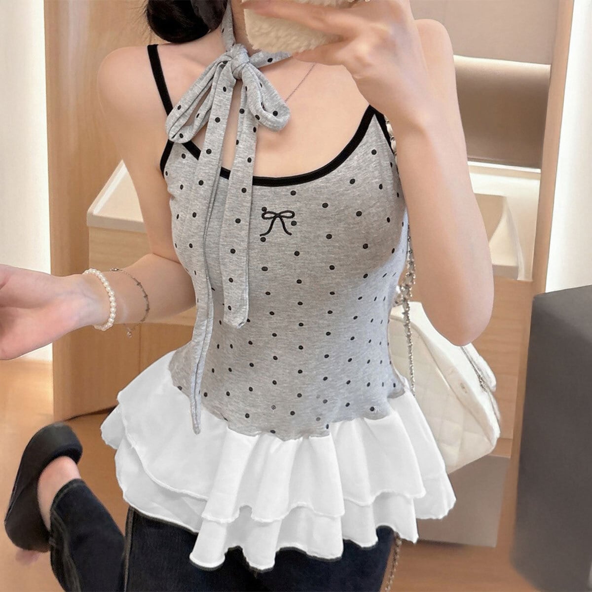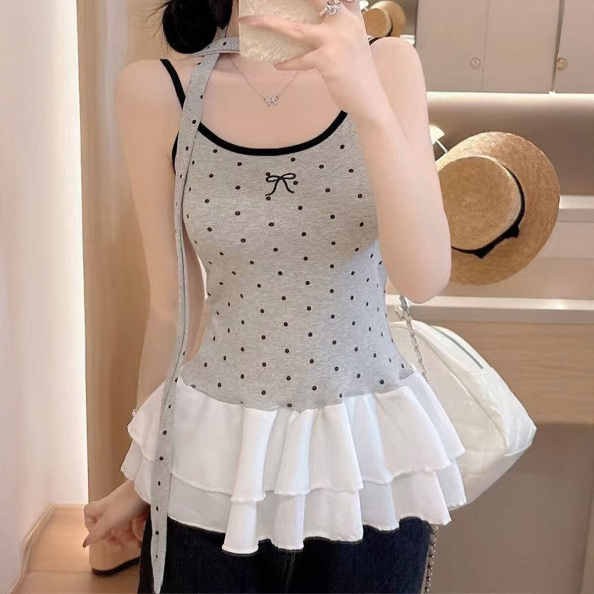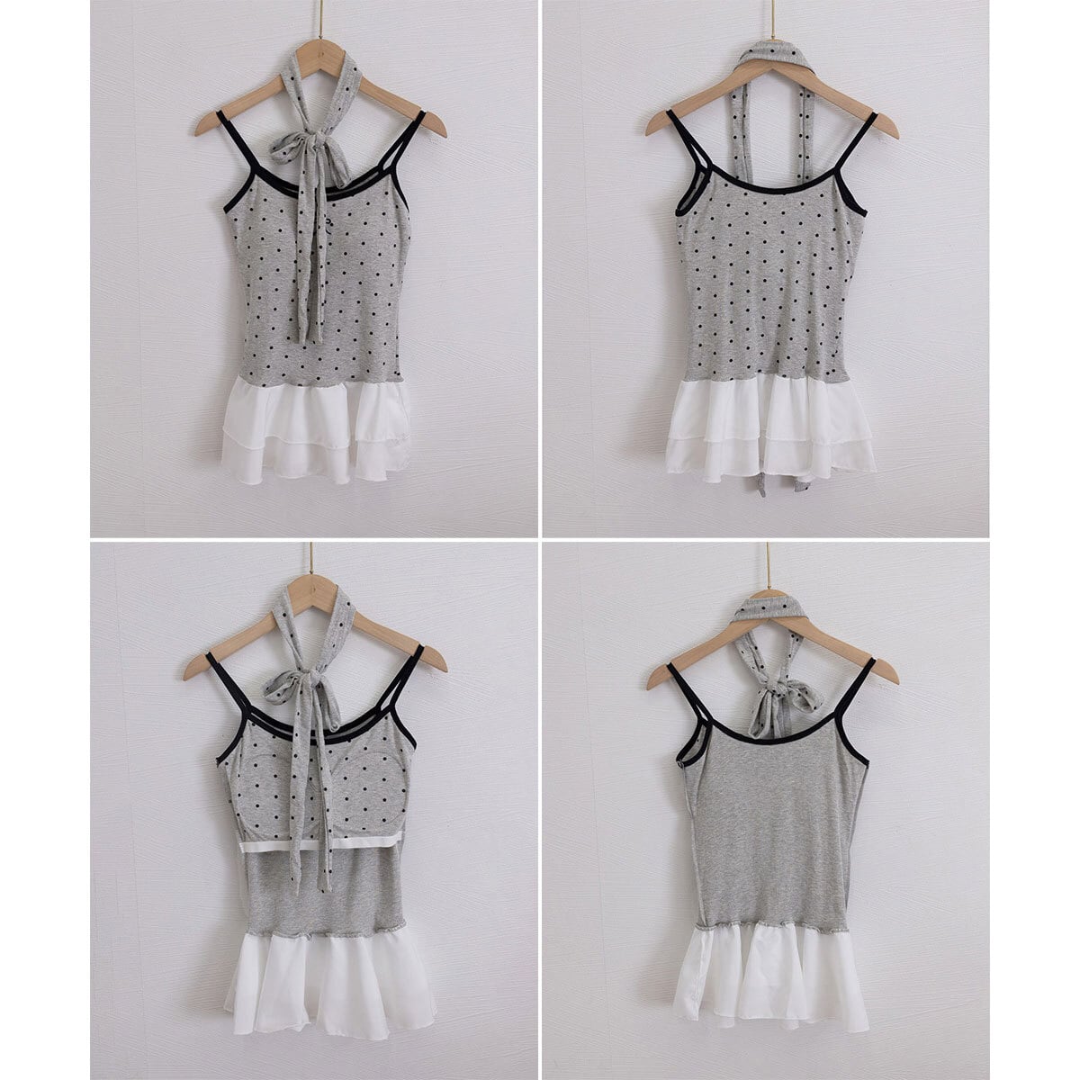 ◇大人可愛いフリルティアードのドット柄キャミソール。