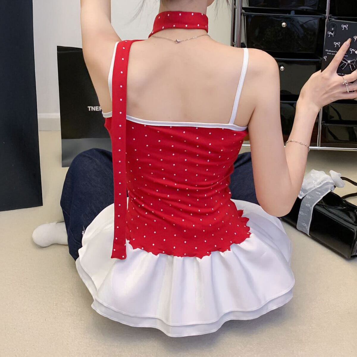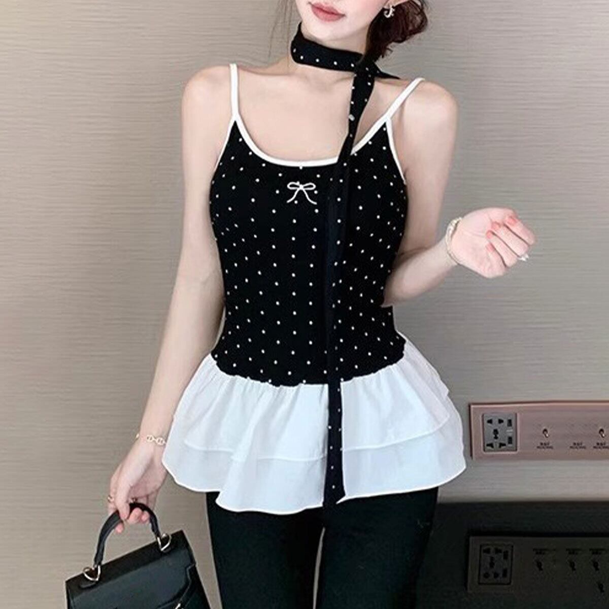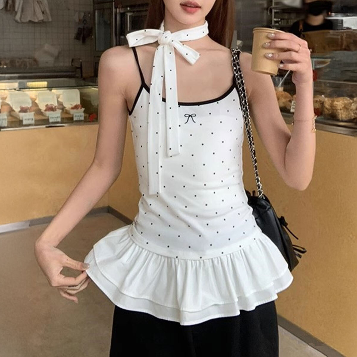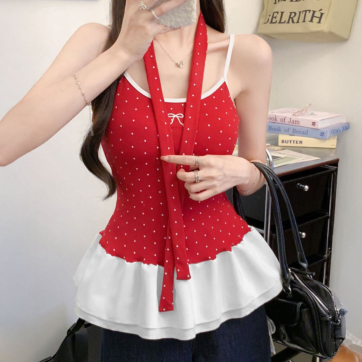 ◇大人可愛いフリルティアードのドット柄キャミソール。