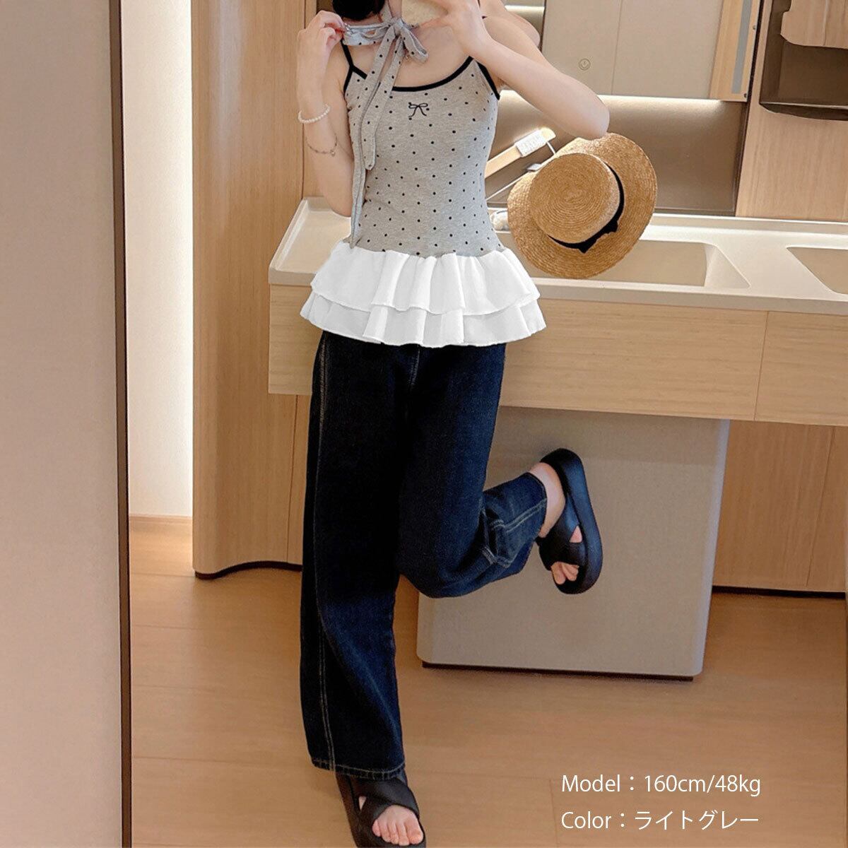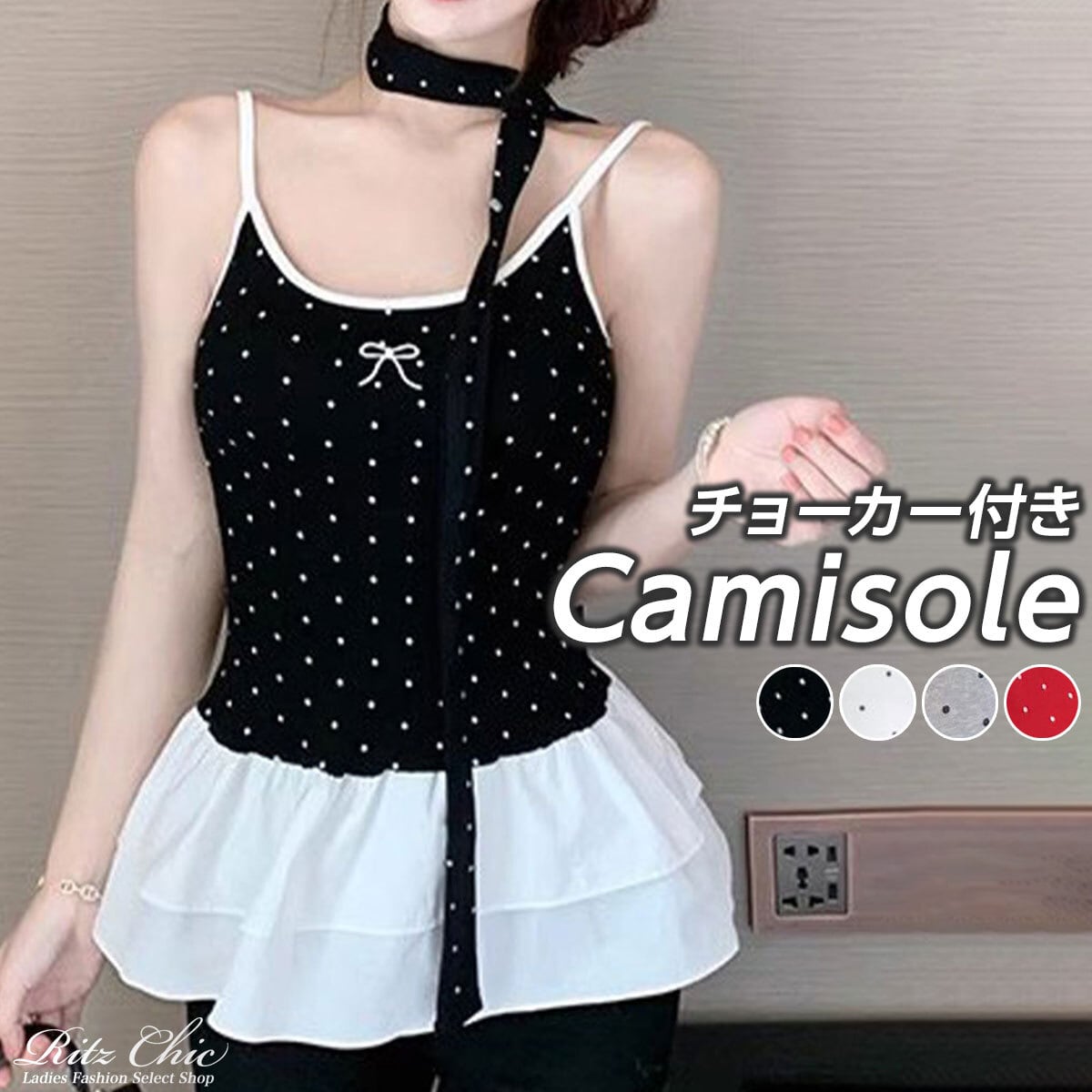 チョーカー付き キャミソール フリルティアード レディース 春夏秋 韓国 カップ付き きれいめ 大人 かわいい インナー トップス リボンチョーカー フェミニン ガーリー おしゃれ 大人可愛い 大人女子