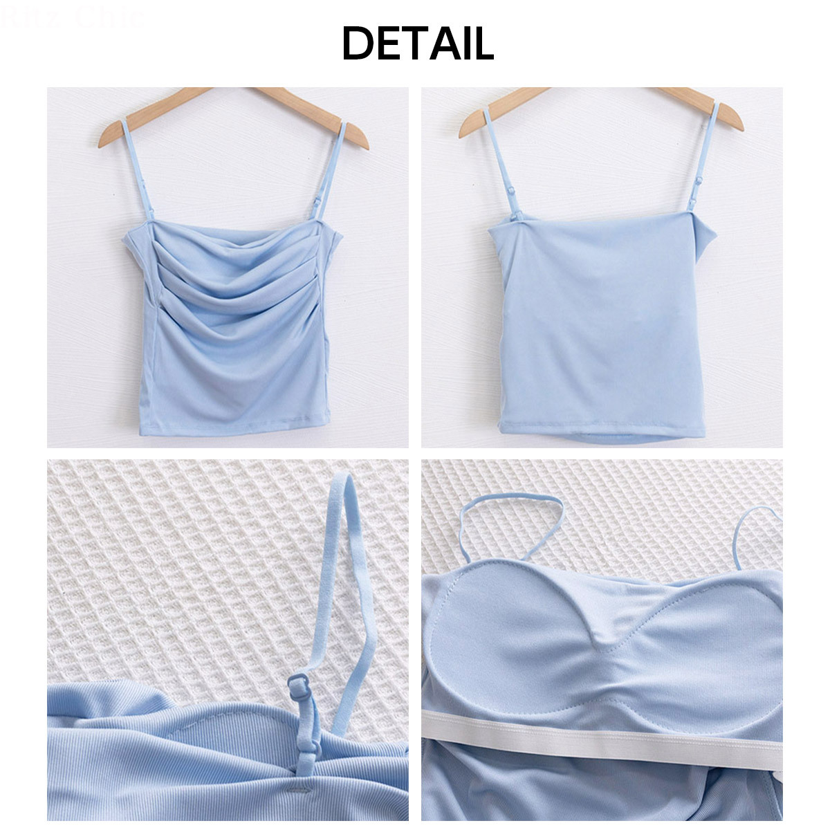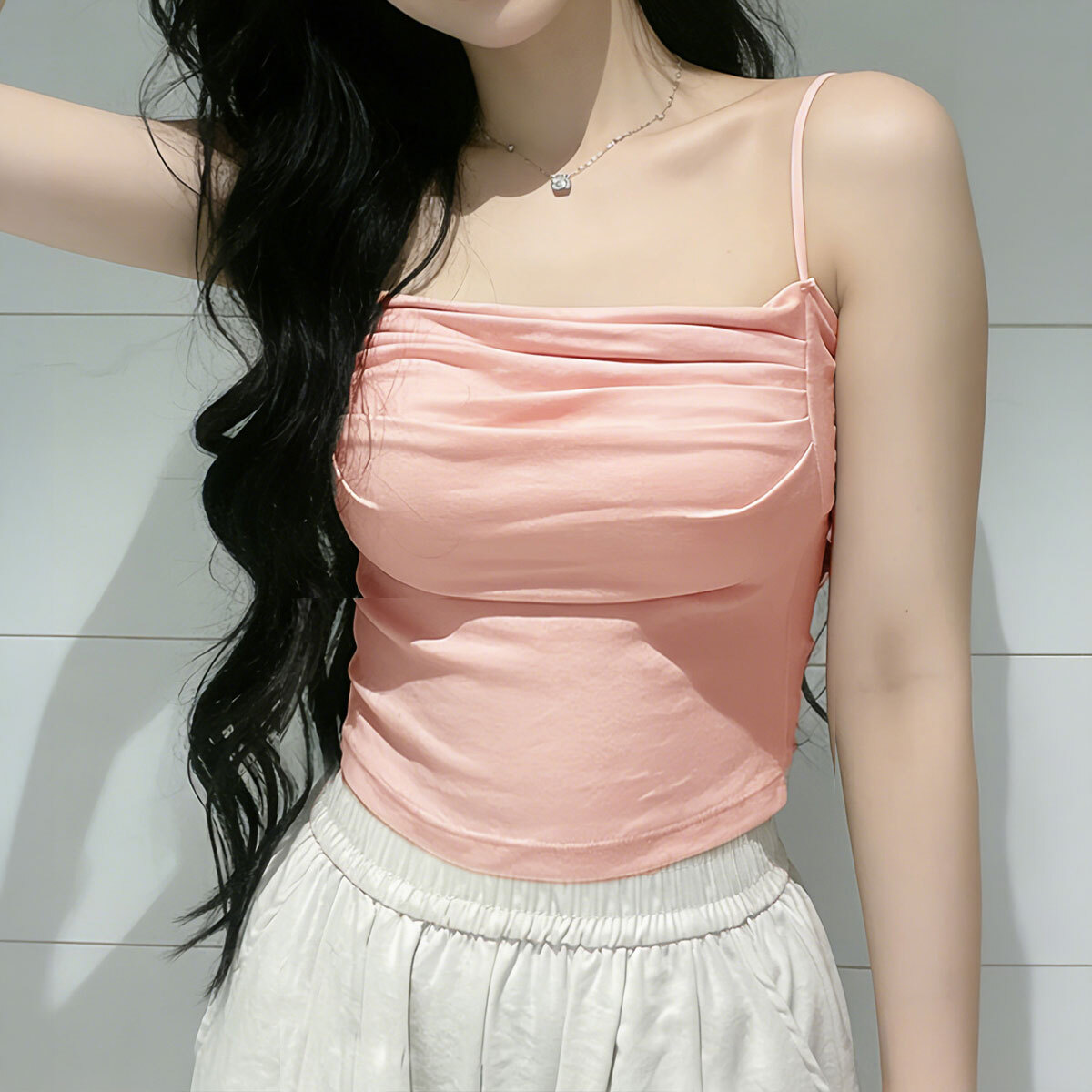 シンプルでありながらも、胸元のギャザーデザインで、立体感のある美しいバストラインを演出してくれるカップ付きのキャミソールです。
