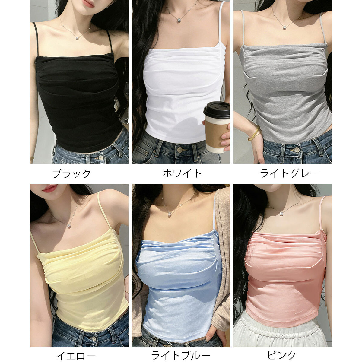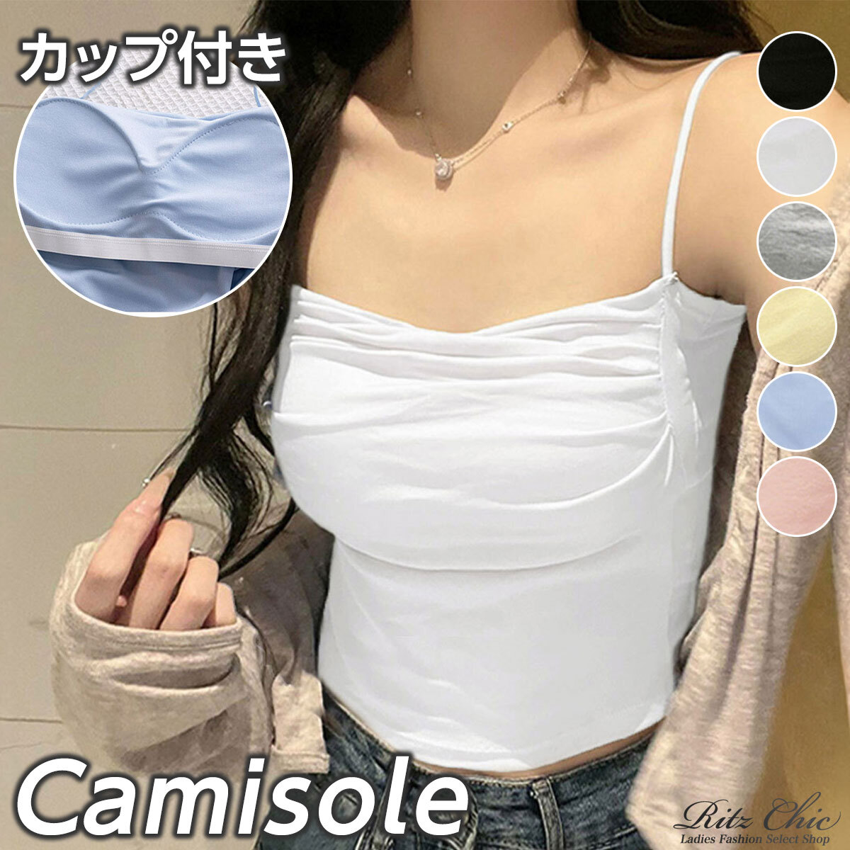 カップ付き キャミソール ギャザー レディース 春夏 韓国 インナー きれいめ 大人 カジュアル おしゃれ シンプル ストレッチ 伸縮性 ブラキャミ ノンワイヤー 薄手 大人可愛い 大人女子