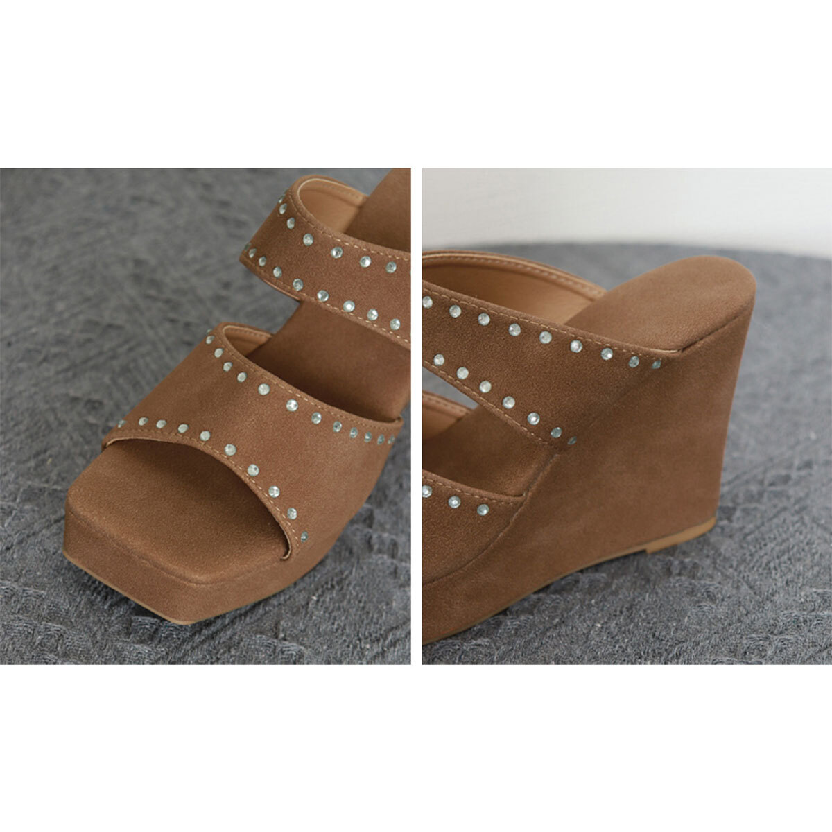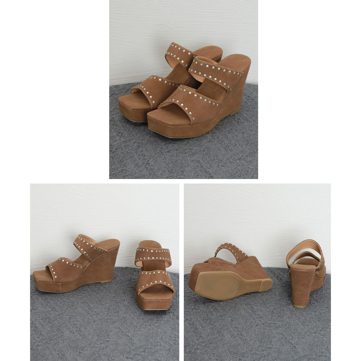ウェッジソールが足元をしっかり支え、歩きやすさにも配慮された設計で、長時間のお出かけでも疲れにくいのが嬉しいポイントです。