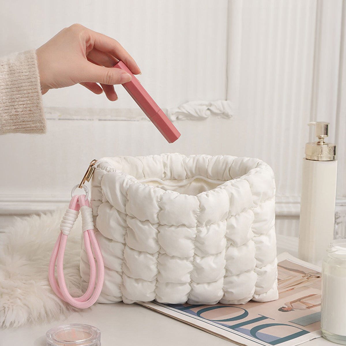 コスメポーチ トラベル バッグ レディース 韓国 化粧ポーチ おしゃれ 大人 かわいい きれいめ キルティング風 小物入れ 持ち運び 手提げ 旅行 出張 通勤 通学 大人可愛い 大人女子