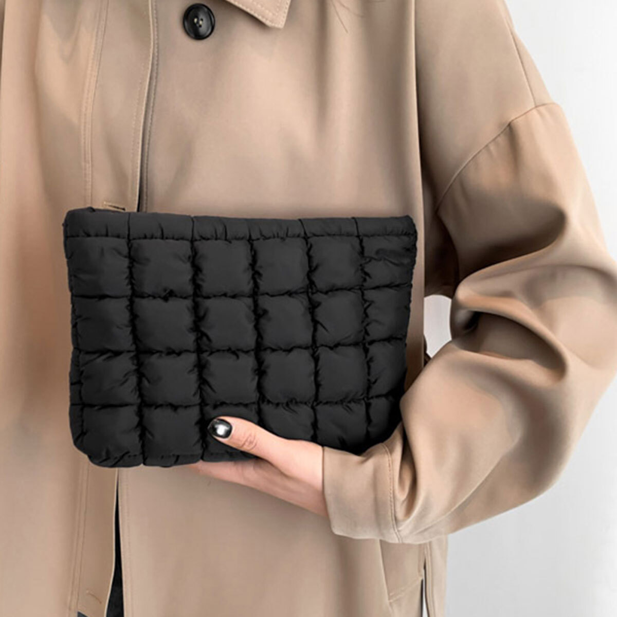 キルティング風のデザインがアクセントになって、いつものコーディネートを一層引き立ててくれます。