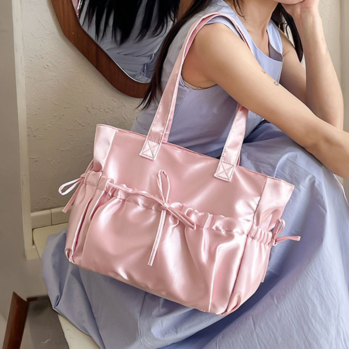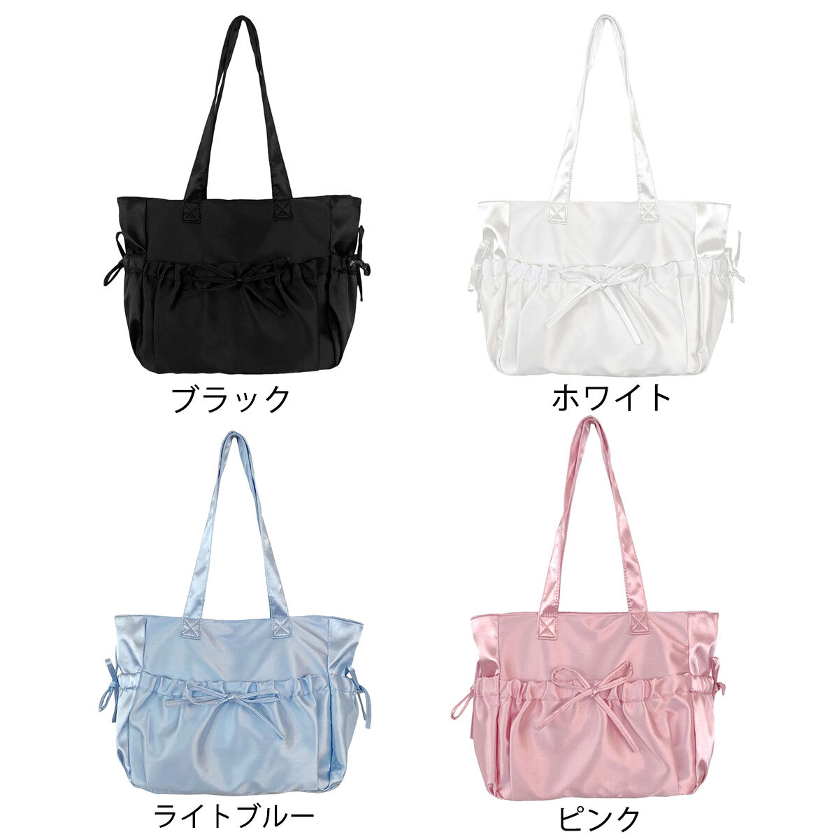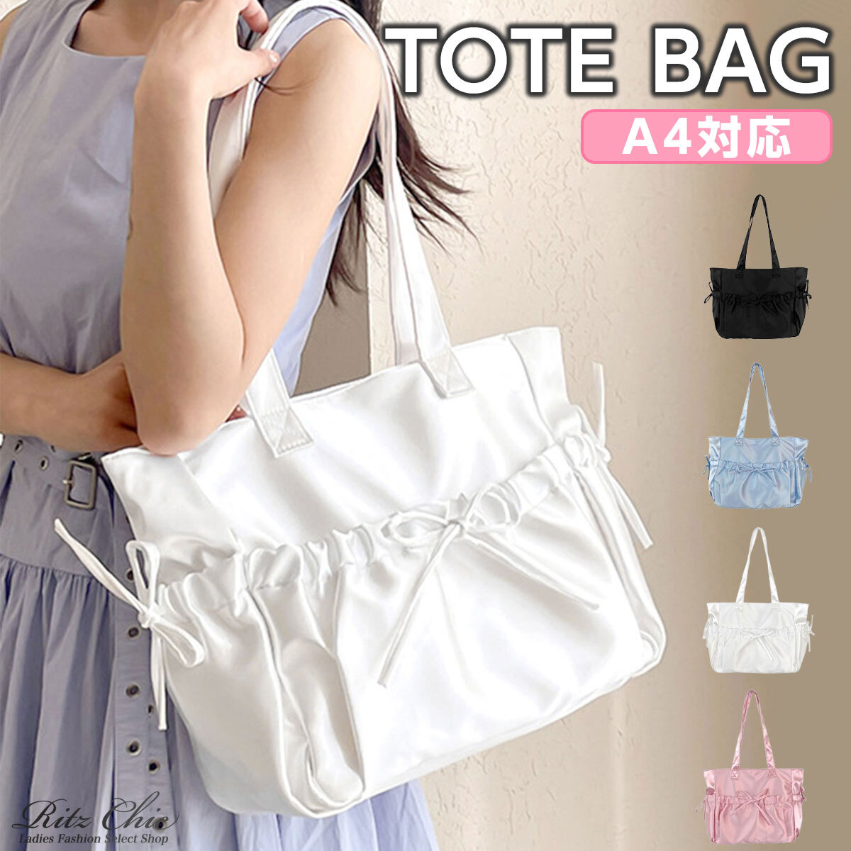 トートバッグ リボン レディース 韓国 大容量 軽量 A4 きれいめ 大人 かわいい おしゃれ 通勤 通学 フェミンイン ギャザー バッグ 柔らかい フリル 大人可愛い 大人女子