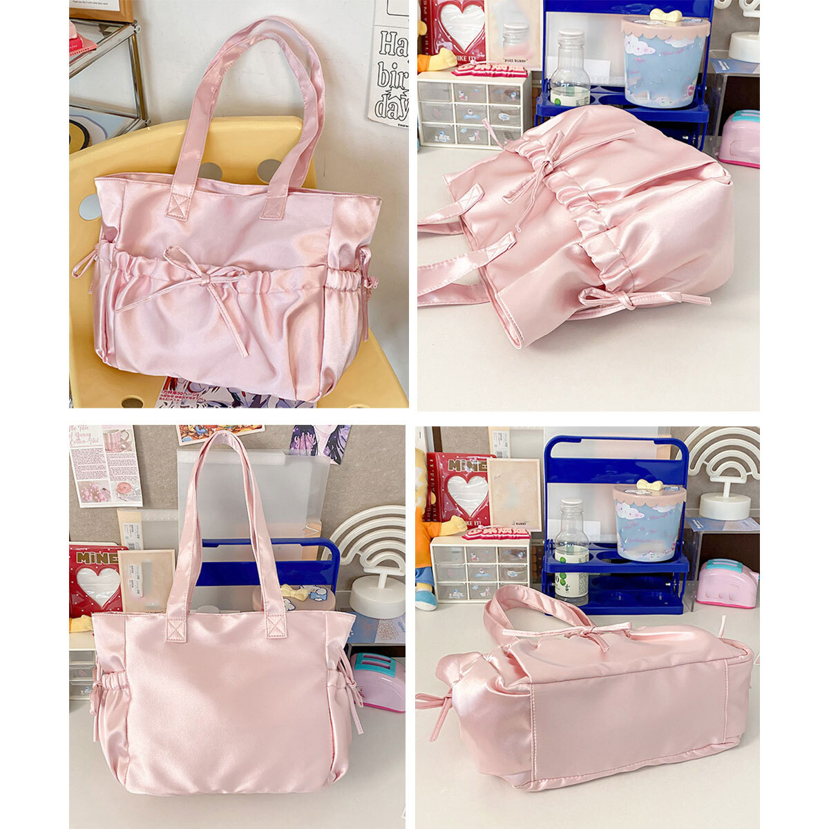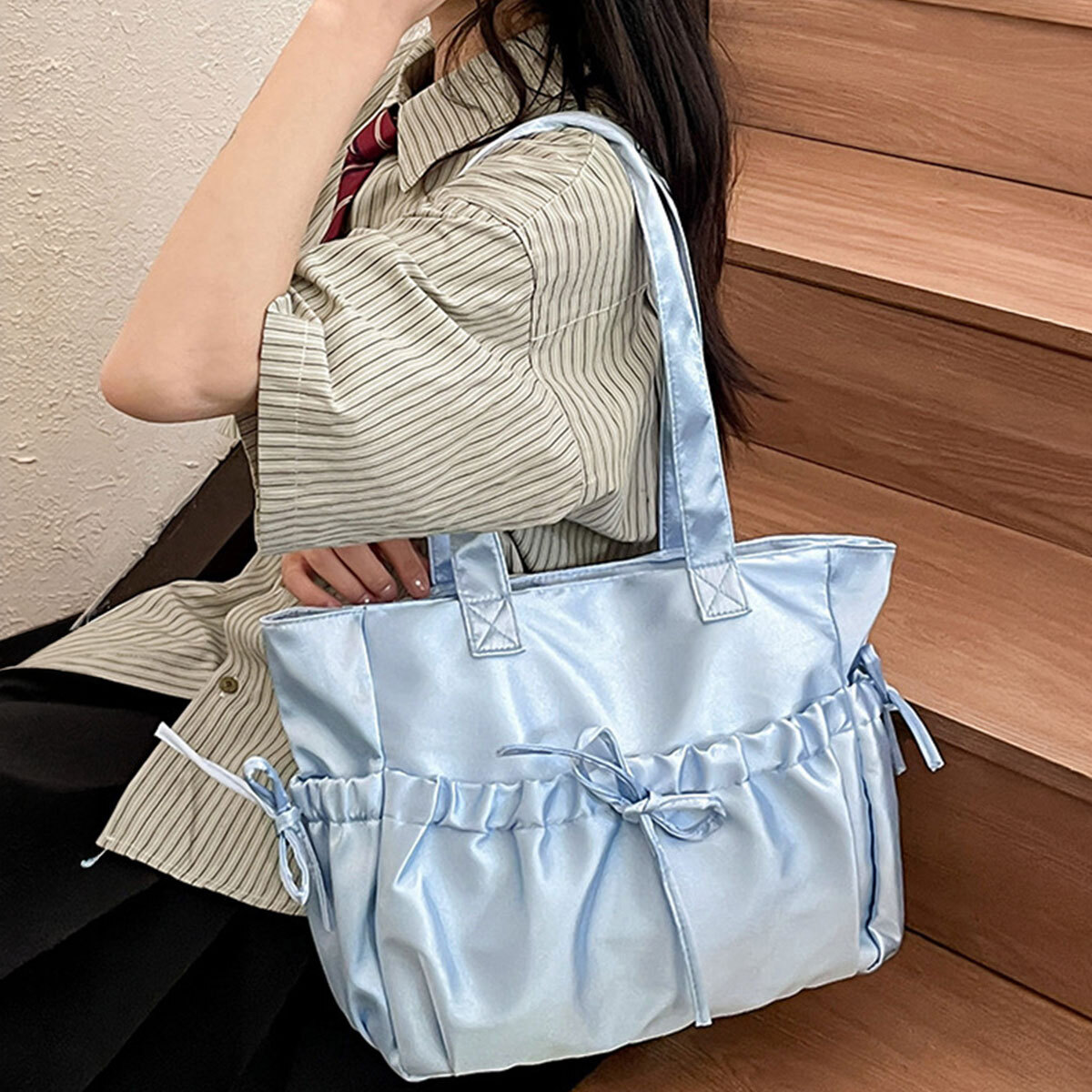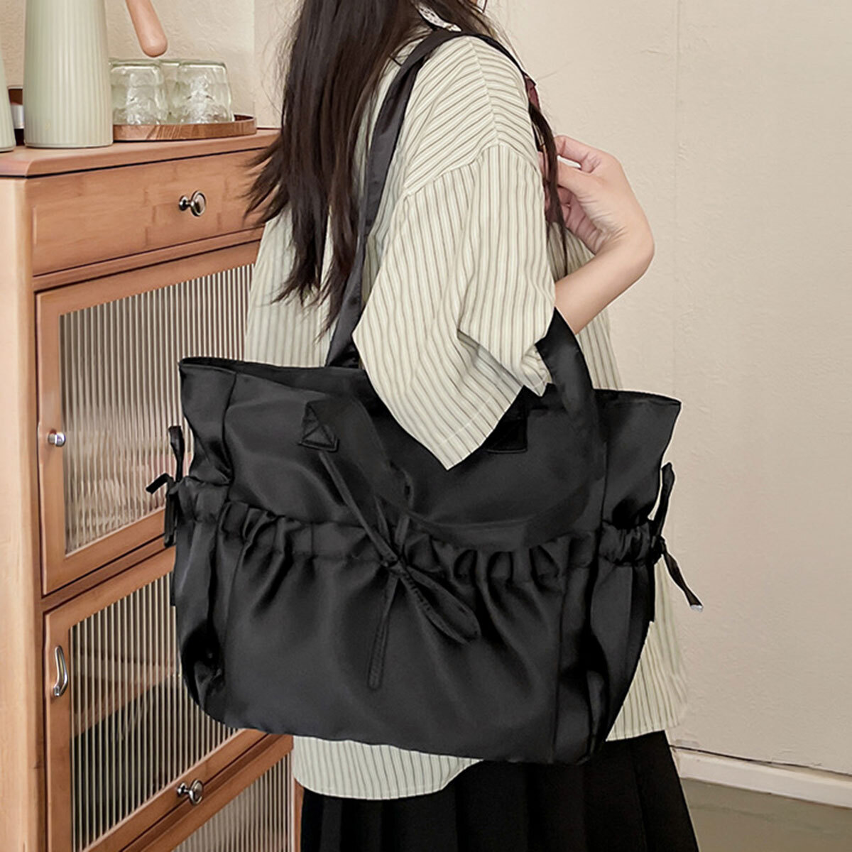 トートバッグ リボン レディース 韓国 大容量 軽量 A4 きれいめ 大人 かわいい おしゃれ 通勤 通学 フェミンイン ギャザー バッグ 柔らかい フリル 大人可愛い 大人女子