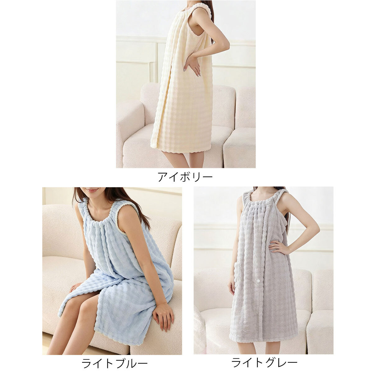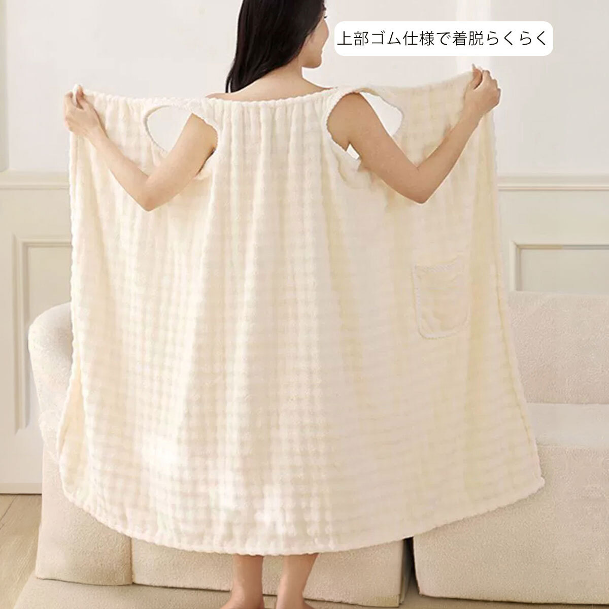 快適な着心地と吸水性や速乾性の高さを兼ね備え、さっと羽織るだけで完璧なお洒落感を演出してくれる、おすすめのバスタオルワンピースです。