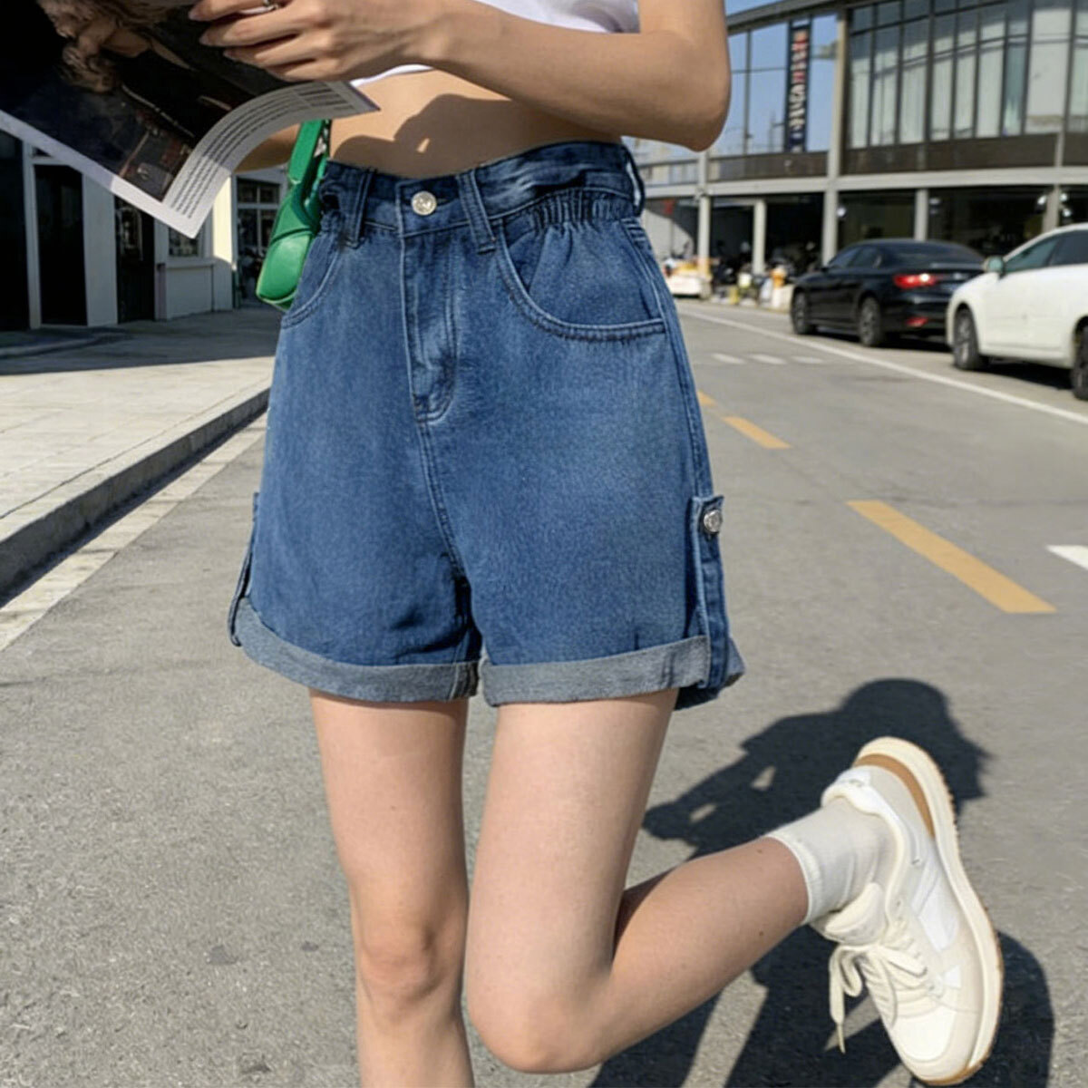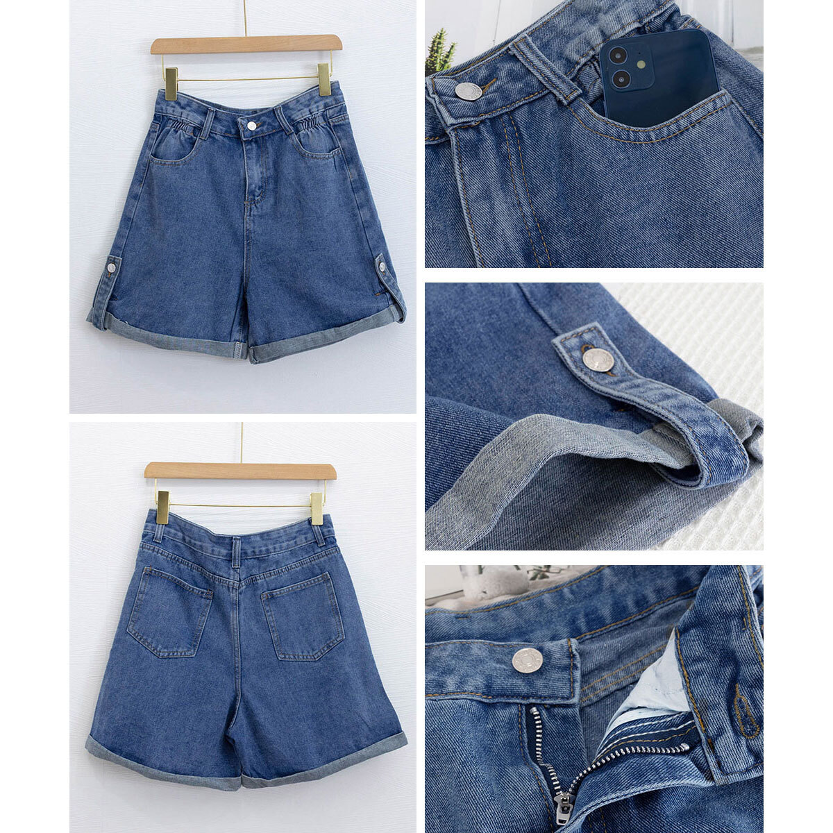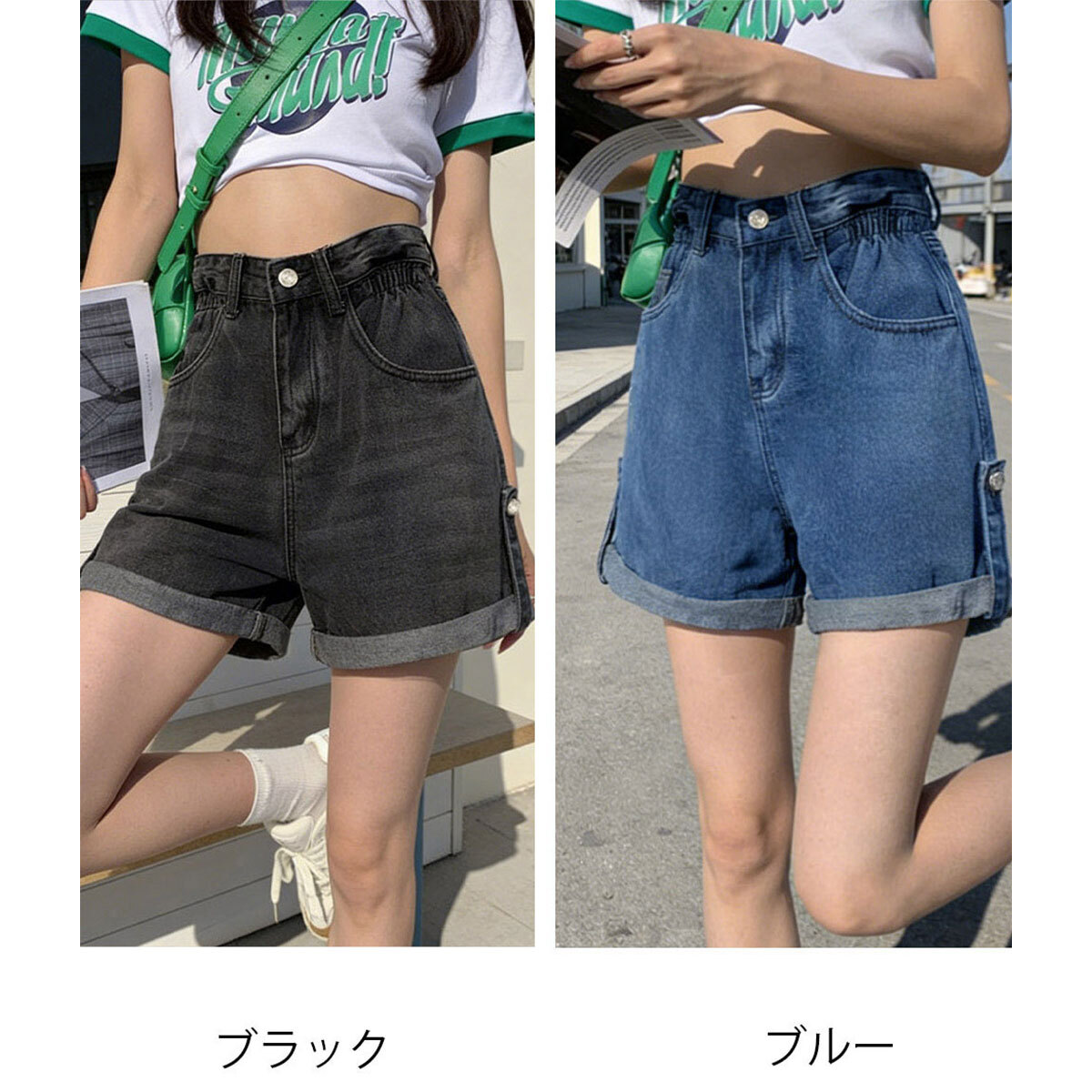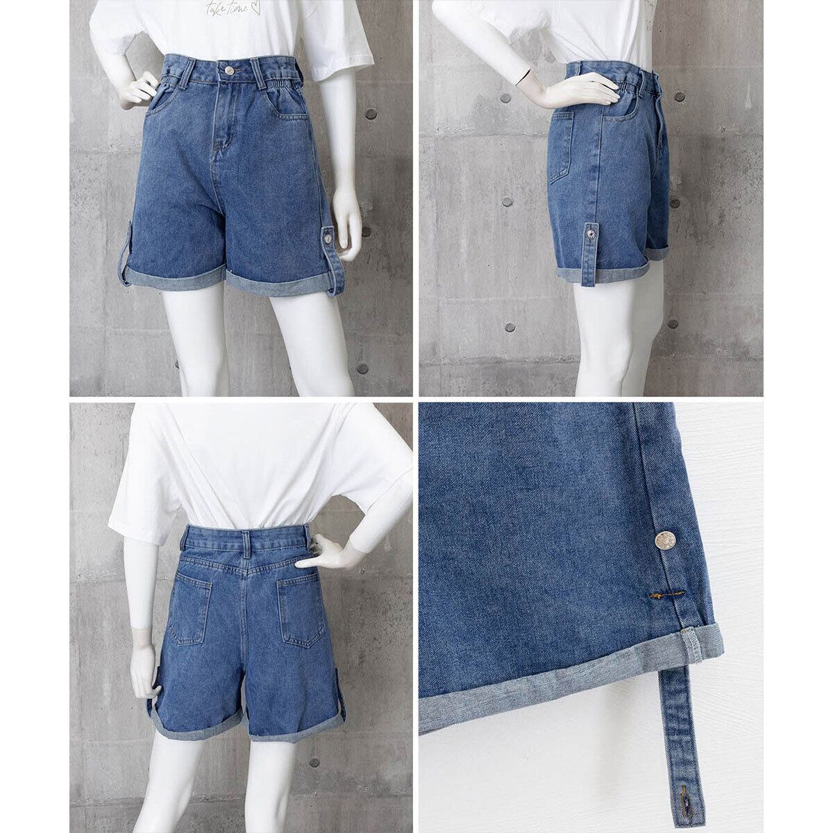 デニム ショートパンツ レディース 春夏秋 韓国 ジーンズ おしゃれ 大人 カジュアル ロールアップ ワイドシルエット ゆったり デニムパンツ ハイウエスト ハーフパンツ 大人可愛い 大人女子
