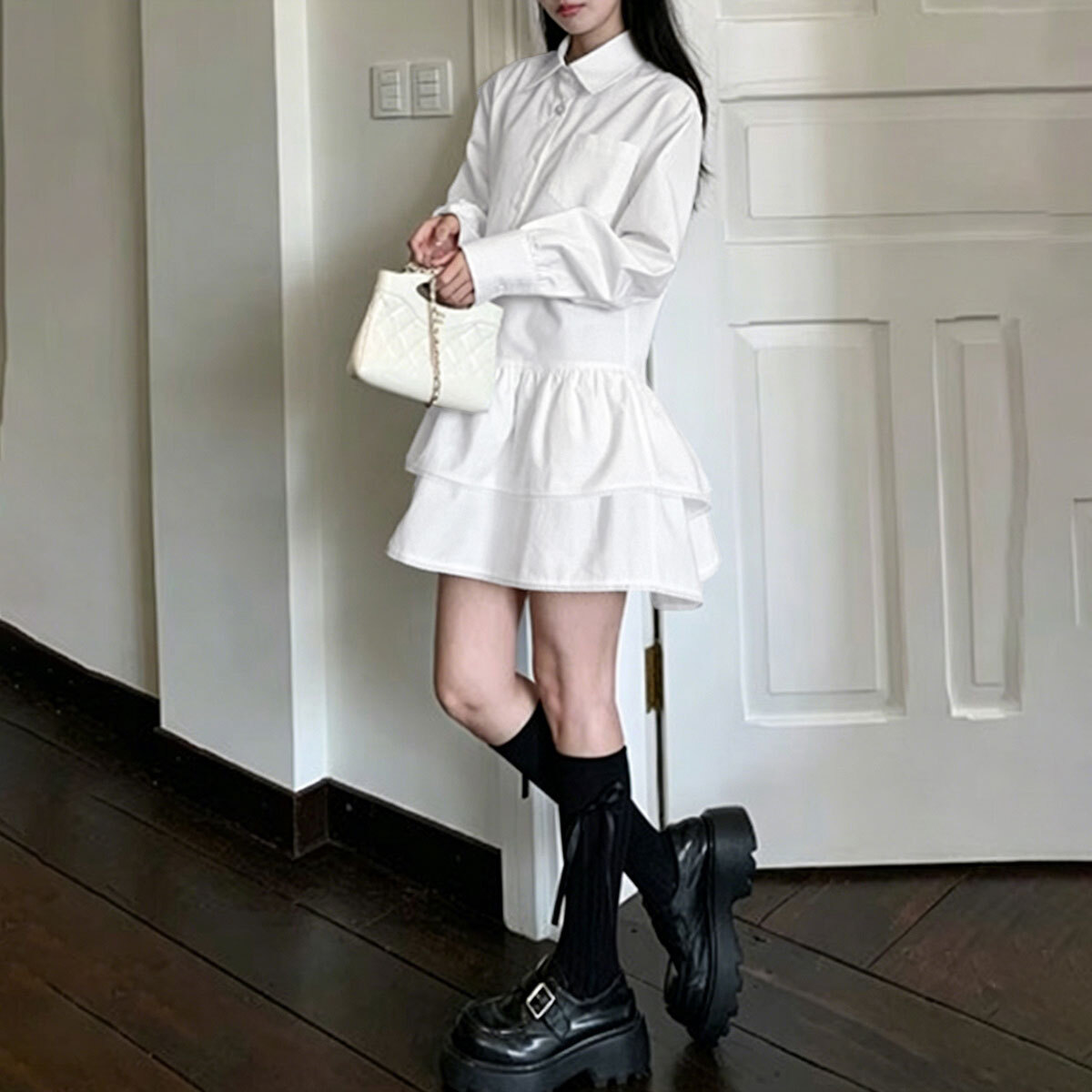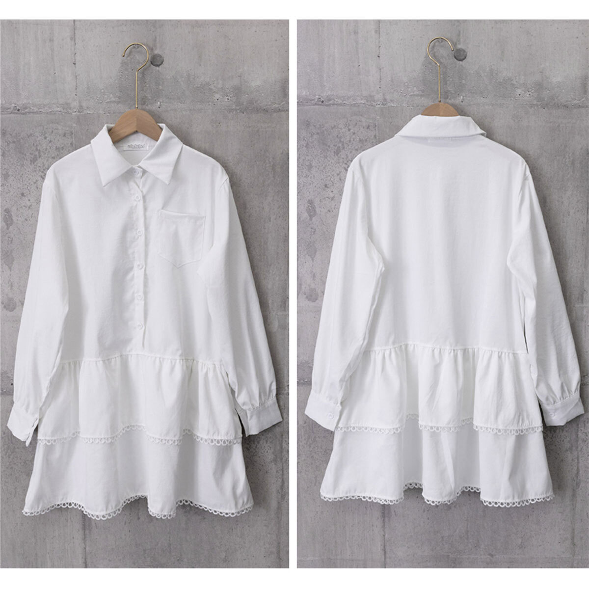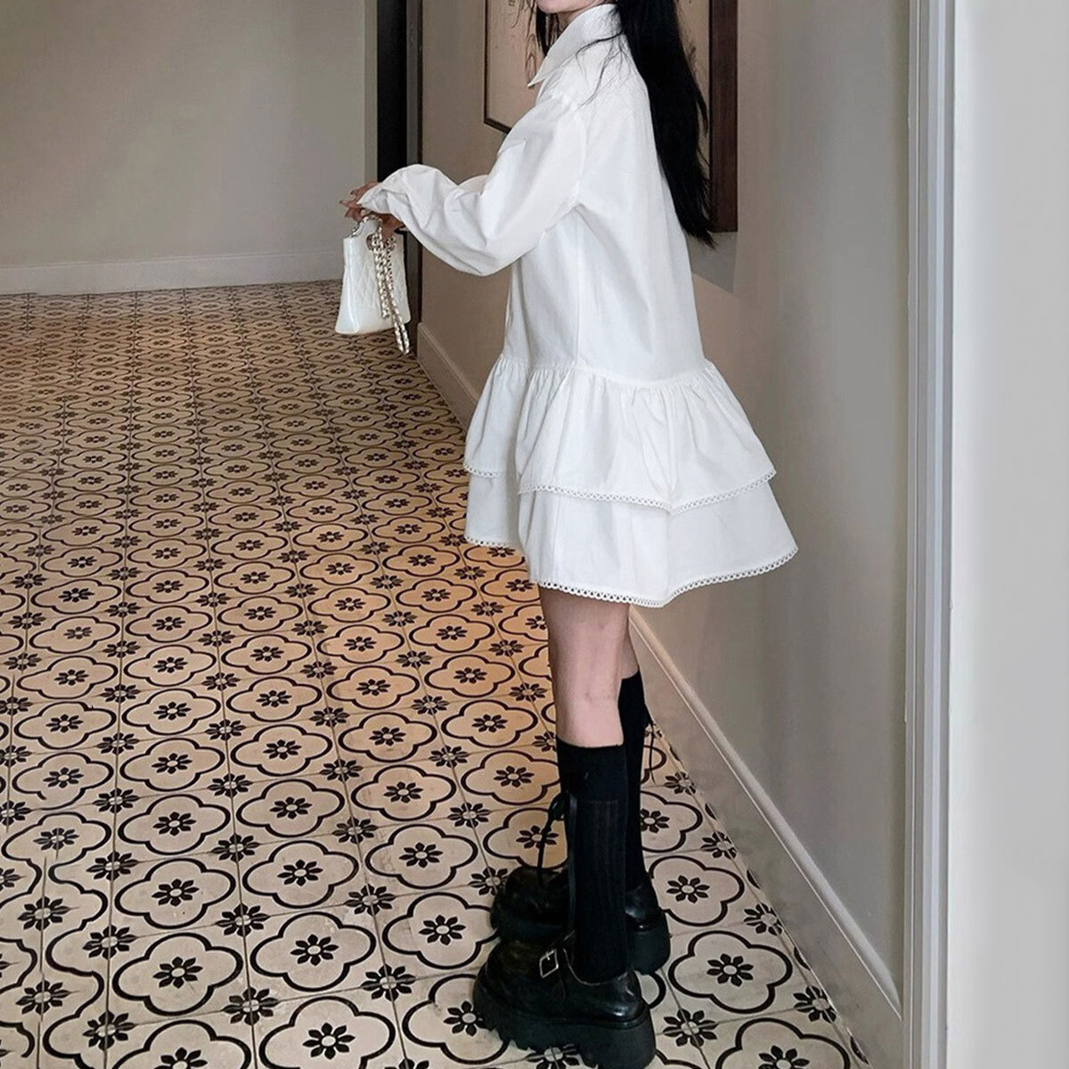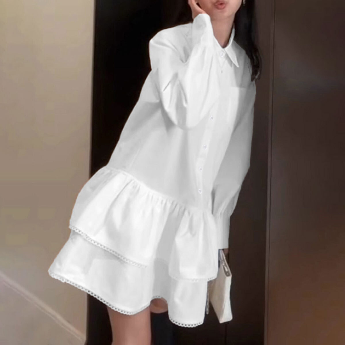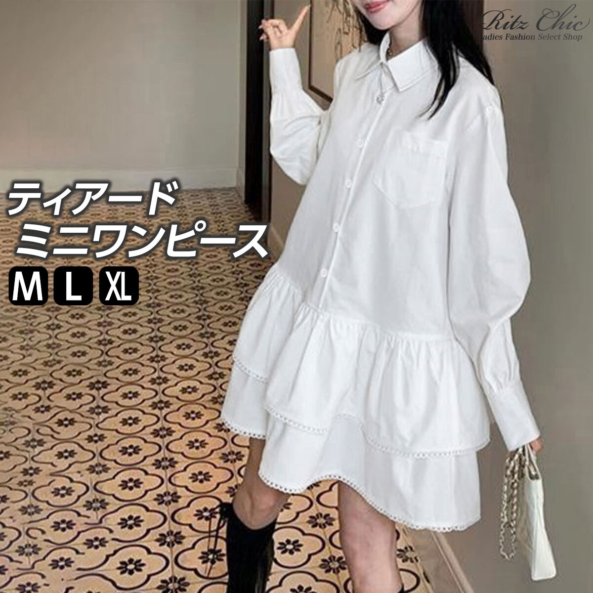 ティアード ミニワンピース 長袖 レディース 春夏秋 韓国 ワンピース きれいめ 大人 かわいい おしゃれ ホワイト 白 フェミニン ガーリー フリルワンピース Aライン チュニック 大人可愛い 大人女子