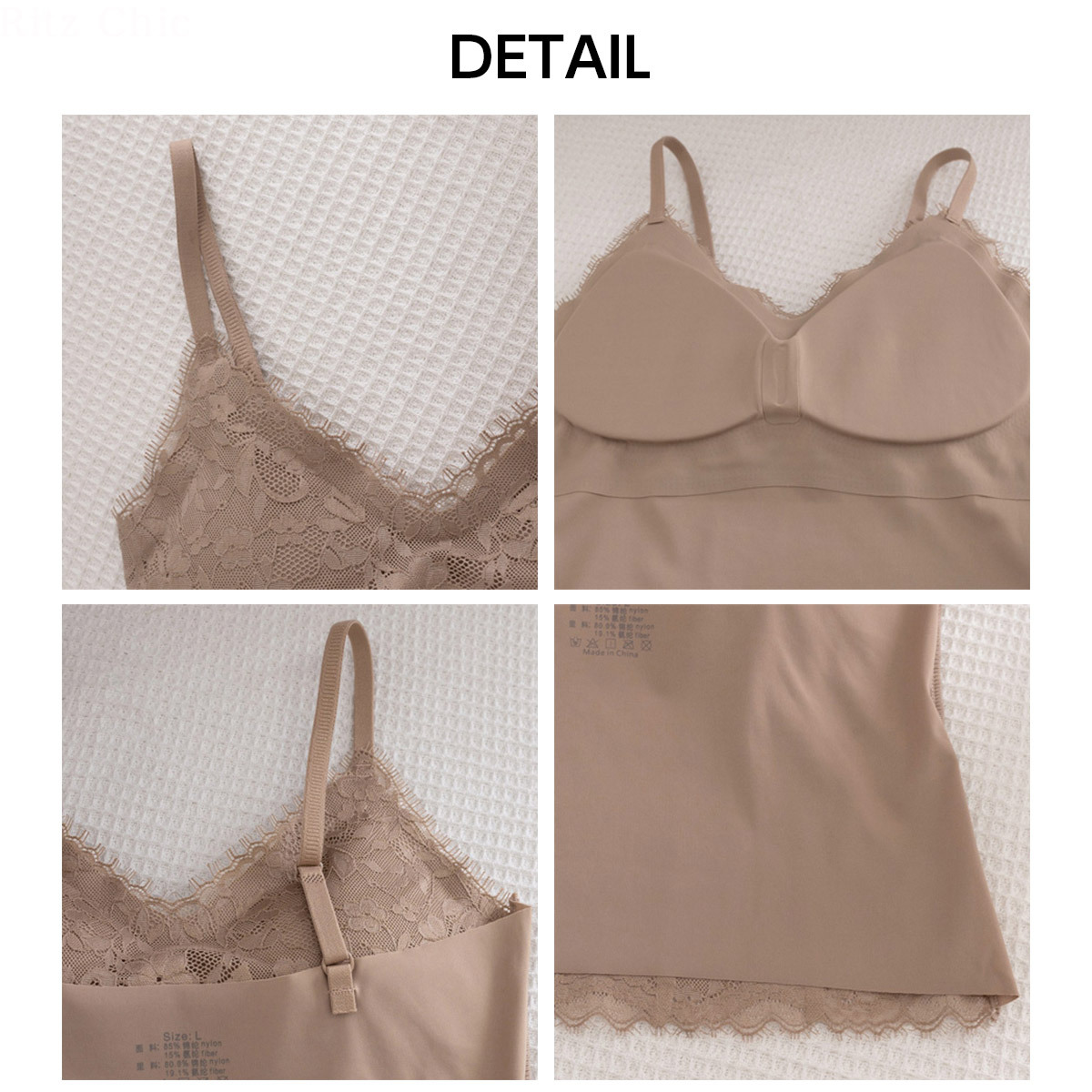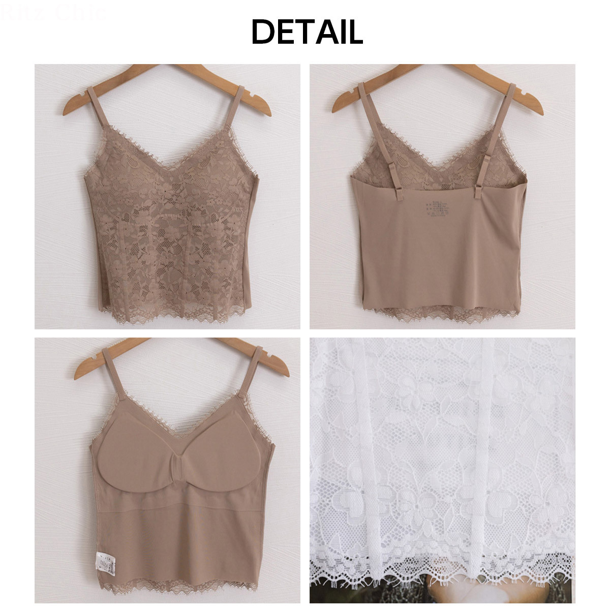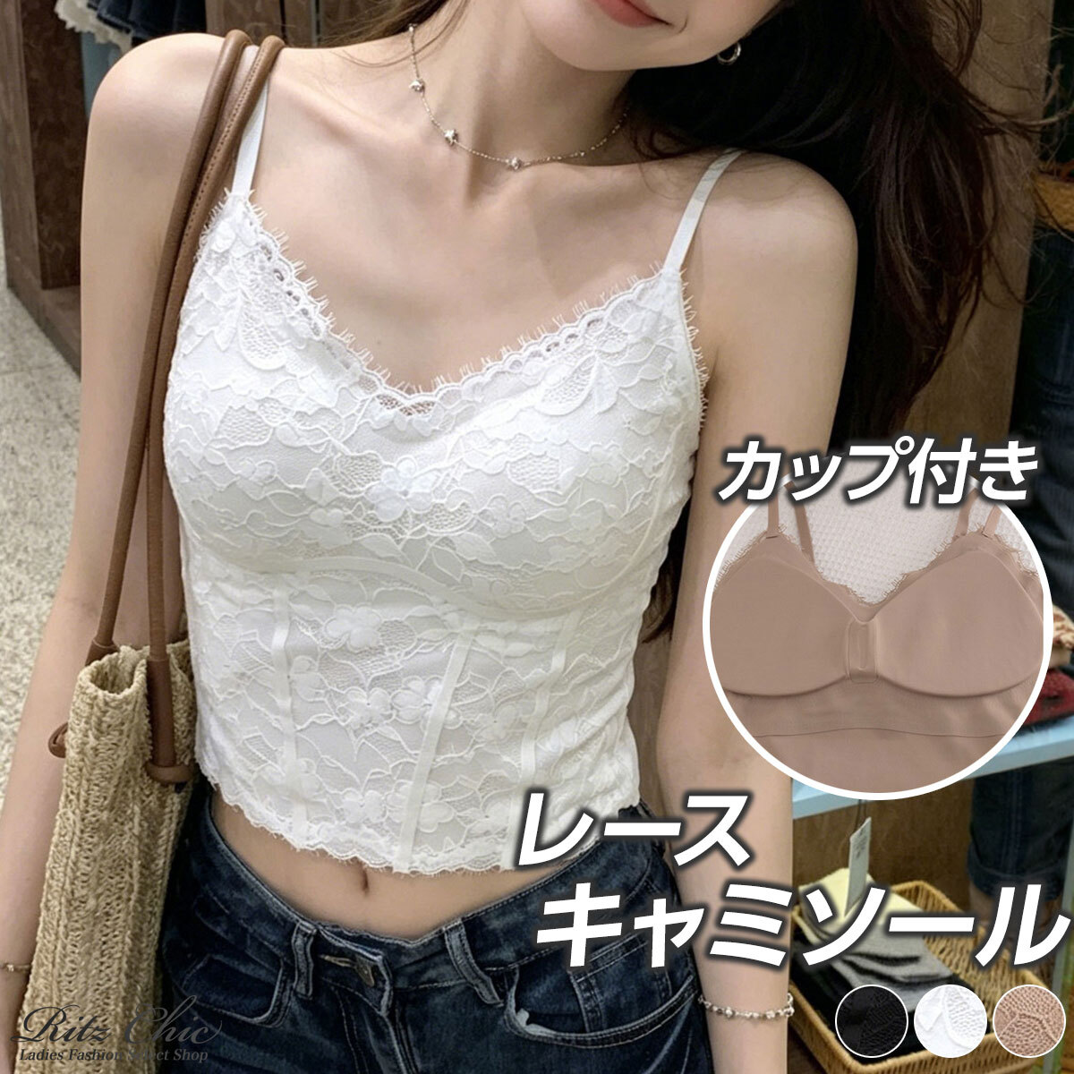 インナー選びの悩みくを解消できるショート丈のレースキャミソールです。