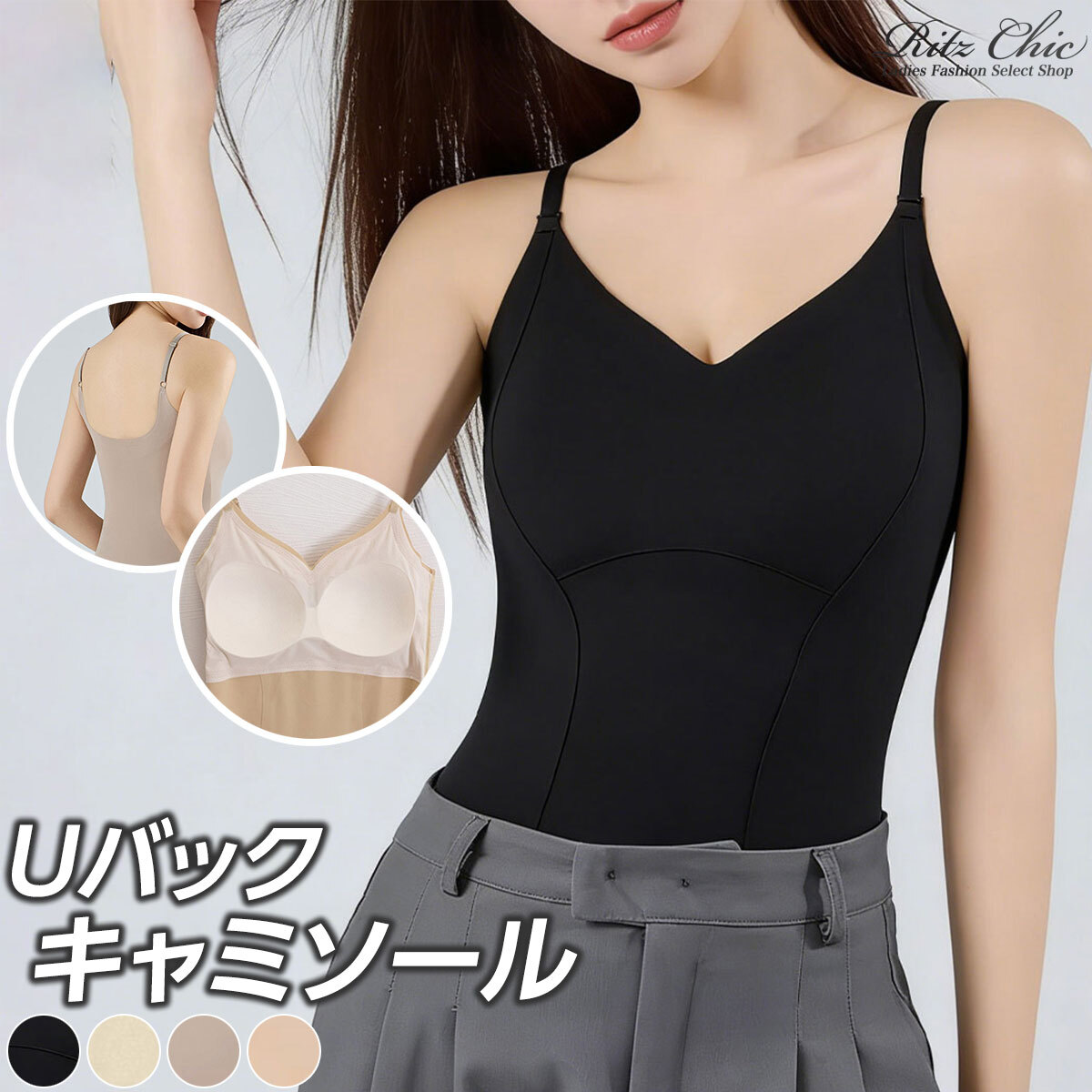 Uバック キャミソール カップ付き レディース 春夏 韓国 背中見せ 肌見せ きれいめ 大人 カジュアル シンプル インナー トップス おしゃれ 立体カップ シームレス スリムフィット 大人可愛い 大人女子