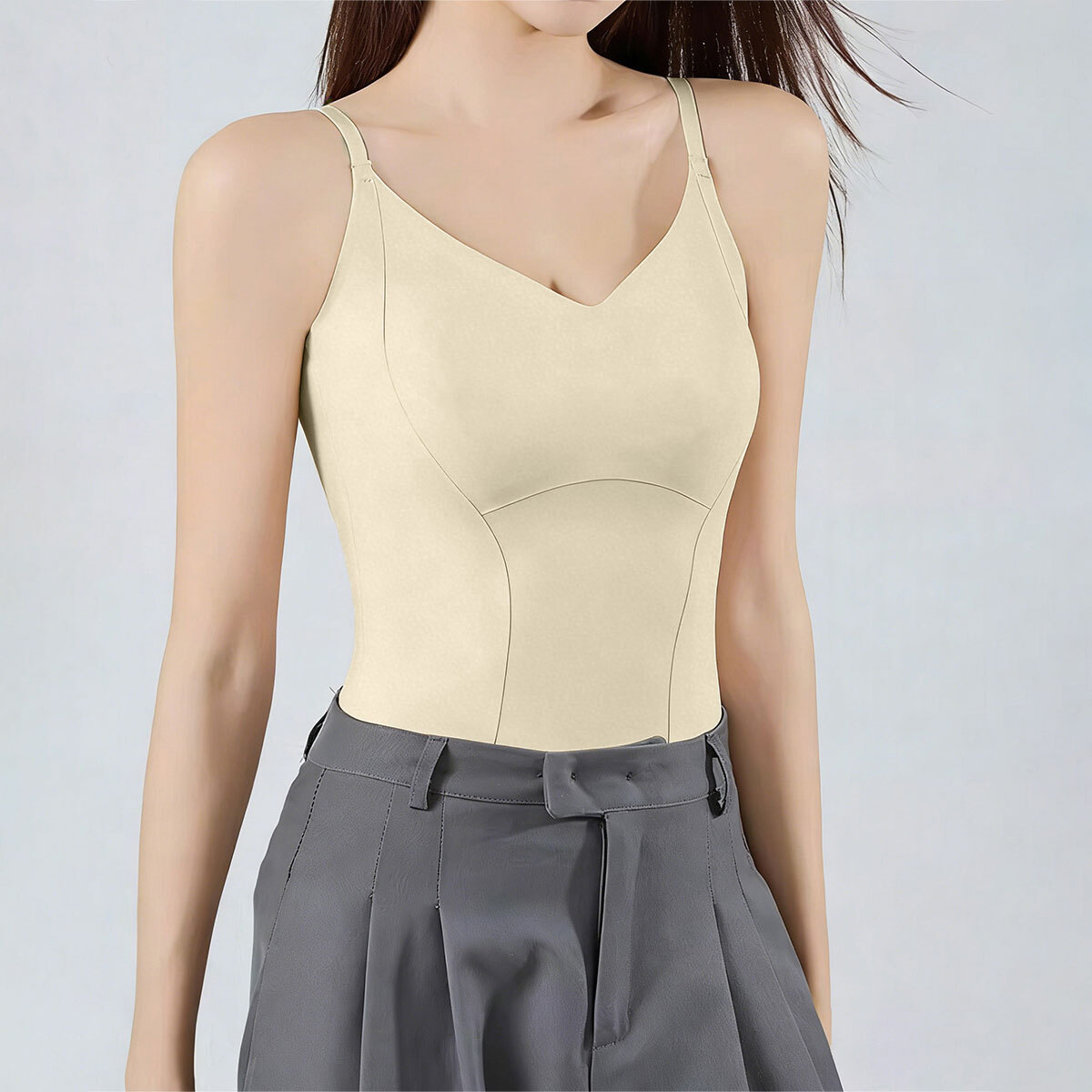 Uバックデザインが大人の魅力を引き立てる、カップ付きキャミソールです。