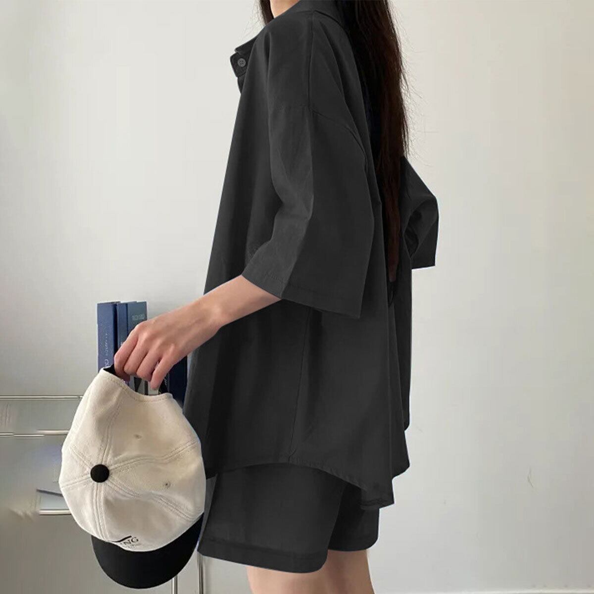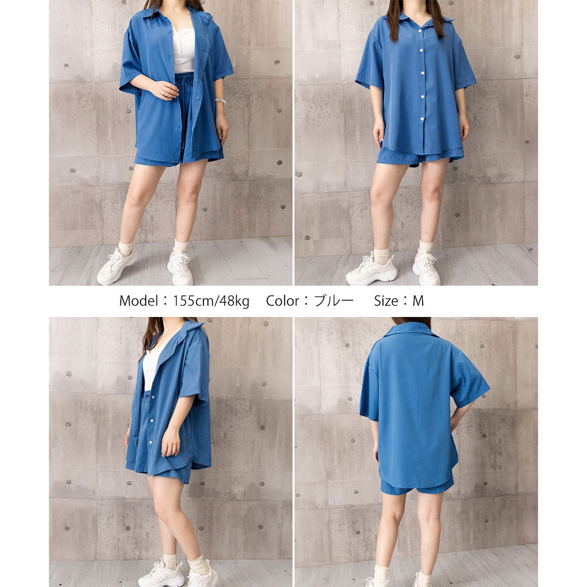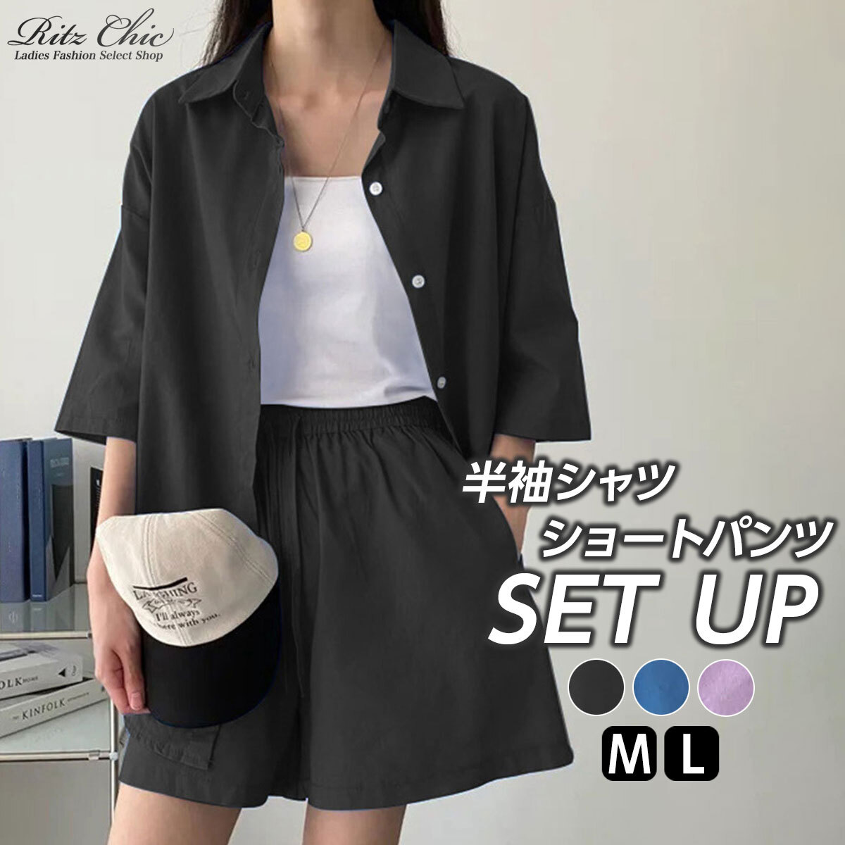 半袖シャツ ショートパンツ レディース セットアップ 春夏 韓国 きれいめ 大人 カジュアル 薄手 ゆったり リラックス 体型カバー 上下2点セット トップス ボトムス 大人可愛い 大人女子