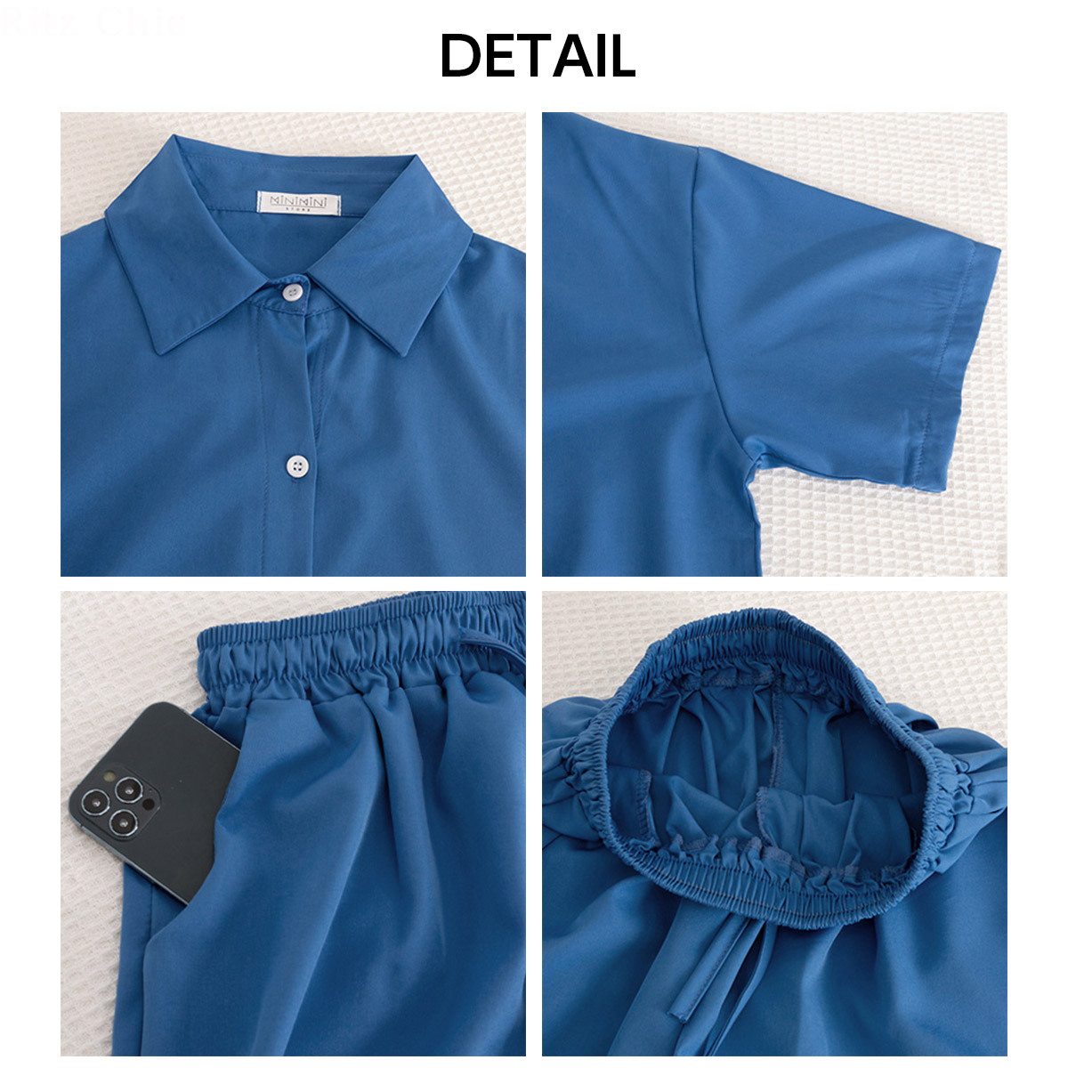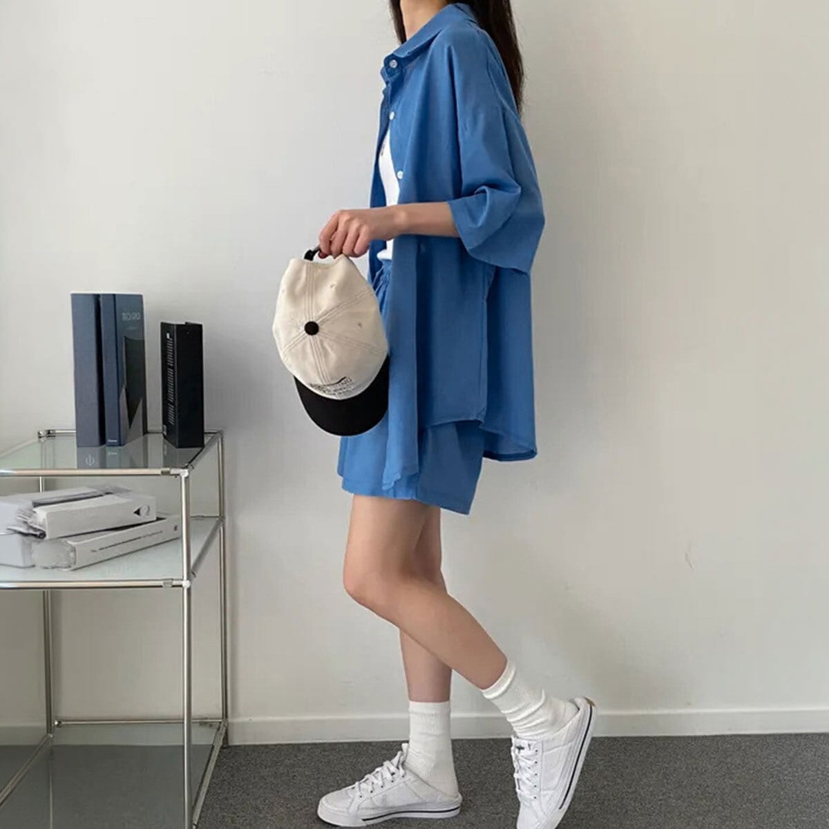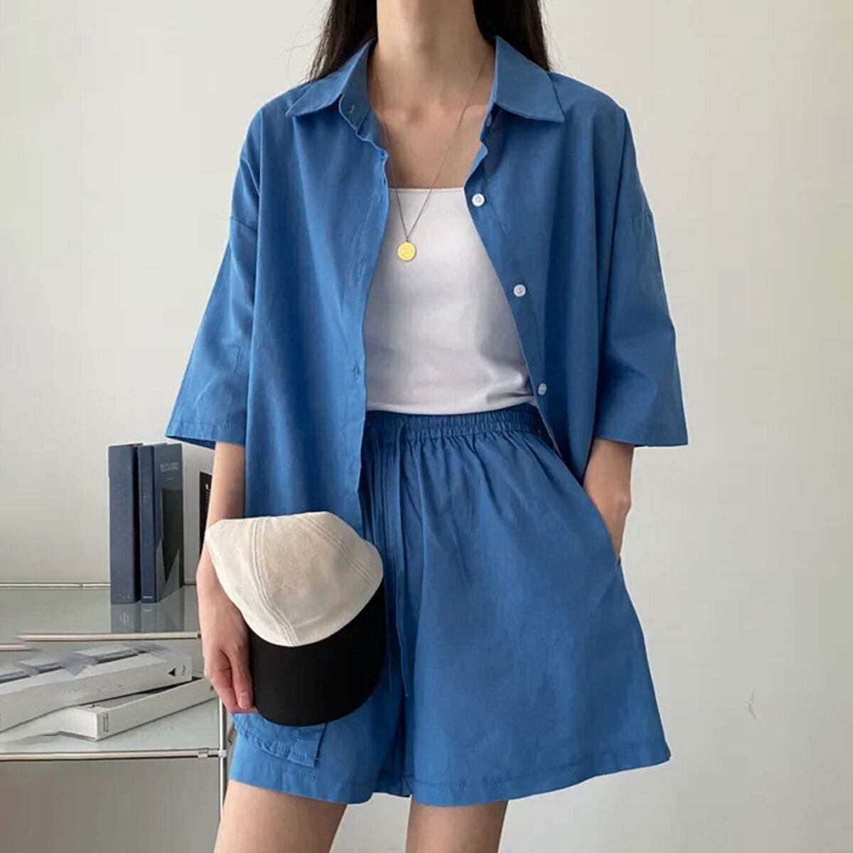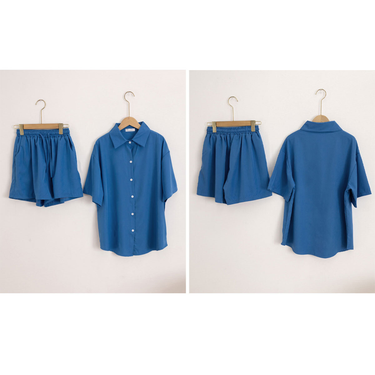 半袖シャツ ショートパンツ レディース セットアップ 春夏 韓国 きれいめ 大人 カジュアル 薄手 ゆったり リラックス 体型カバー 上下2点セット トップス ボトムス 大人可愛い 大人女子