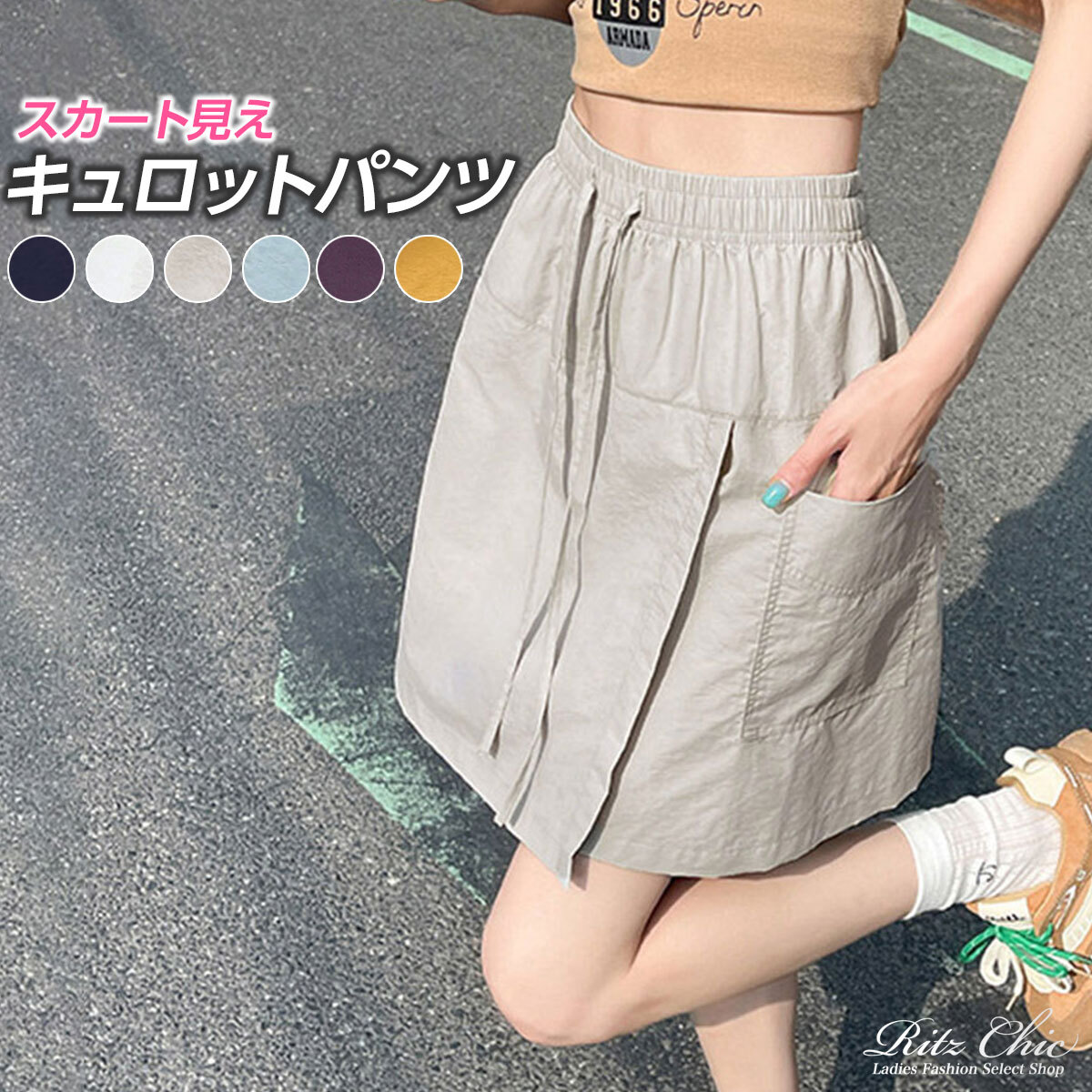 キュロット パンツ ラップ風 レディース 春夏 韓国 スカート見え きれいめ 大人 かわいい カジュアル シンプル 薄手 ウエストゴム ハイウエスト スポーティー 涼しい 大人可愛い 大人女子