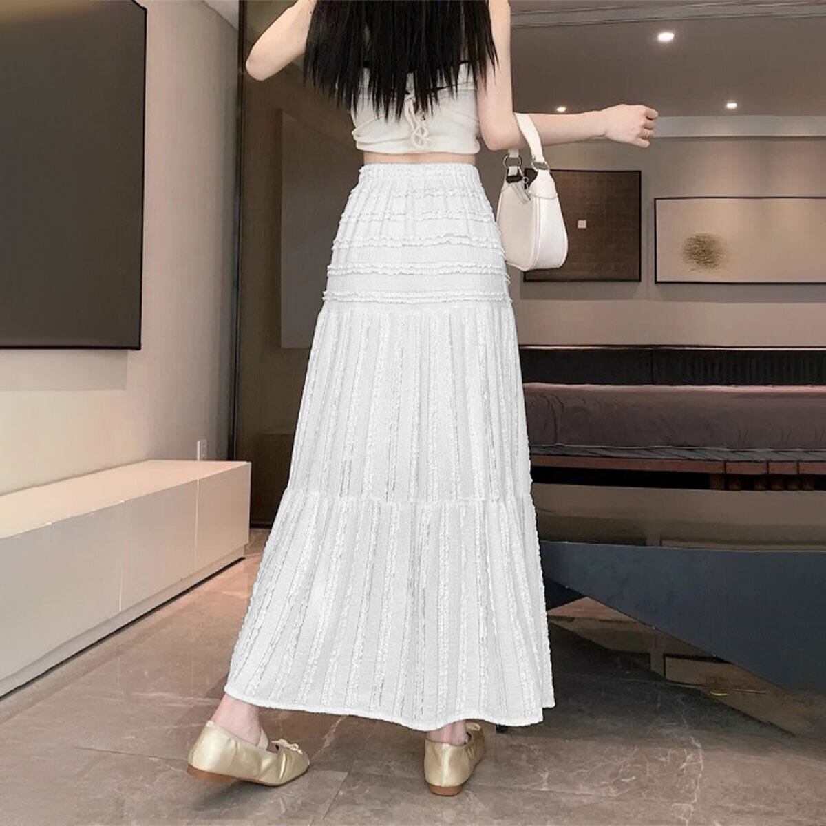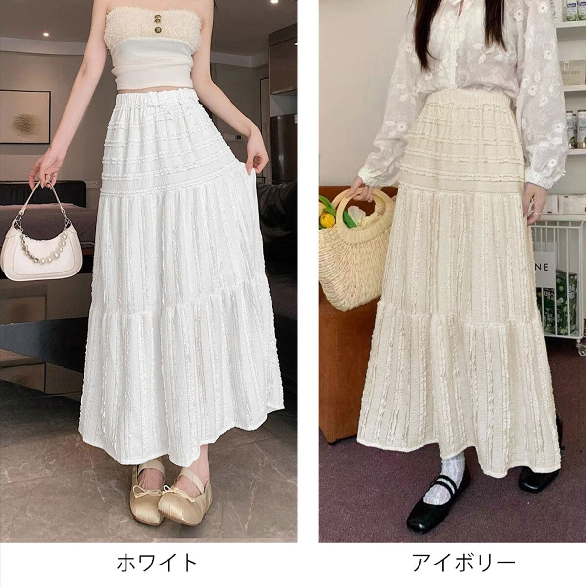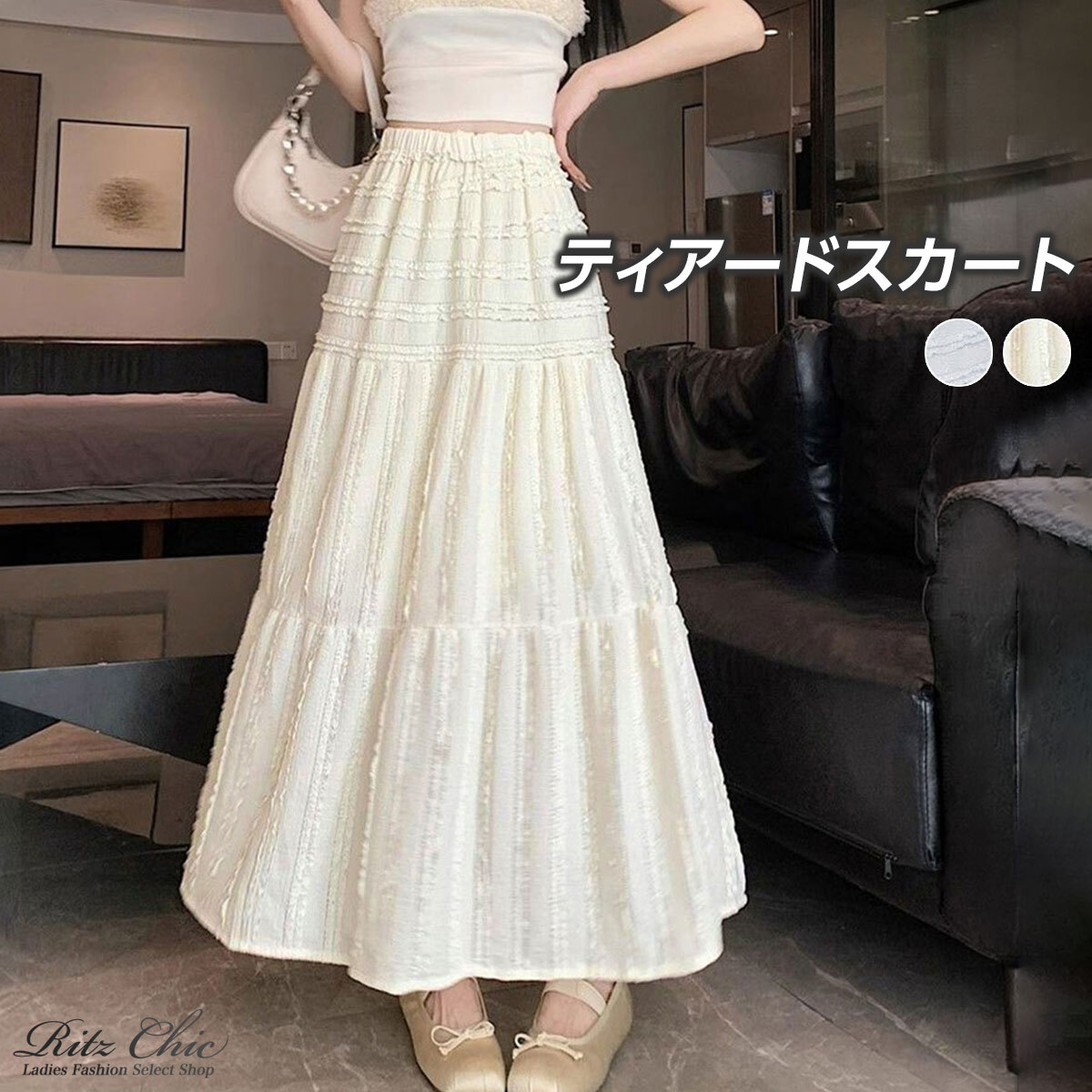 ティアード スカート レース レディース 春夏 韓国 ロングスカート きれいめ 大人 かわいい フェミニン おしゃれ Aライン ウエストゴム ハイウエスト 3段切り替え フリル 大人可愛い 大人女子