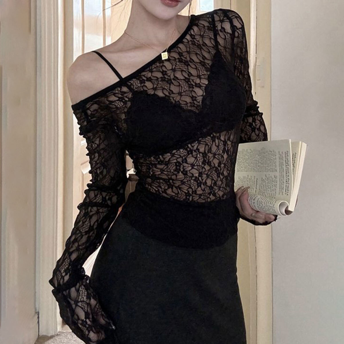 ※デザイン上透け感がございますので、インナーの着用をおすすめ致します。