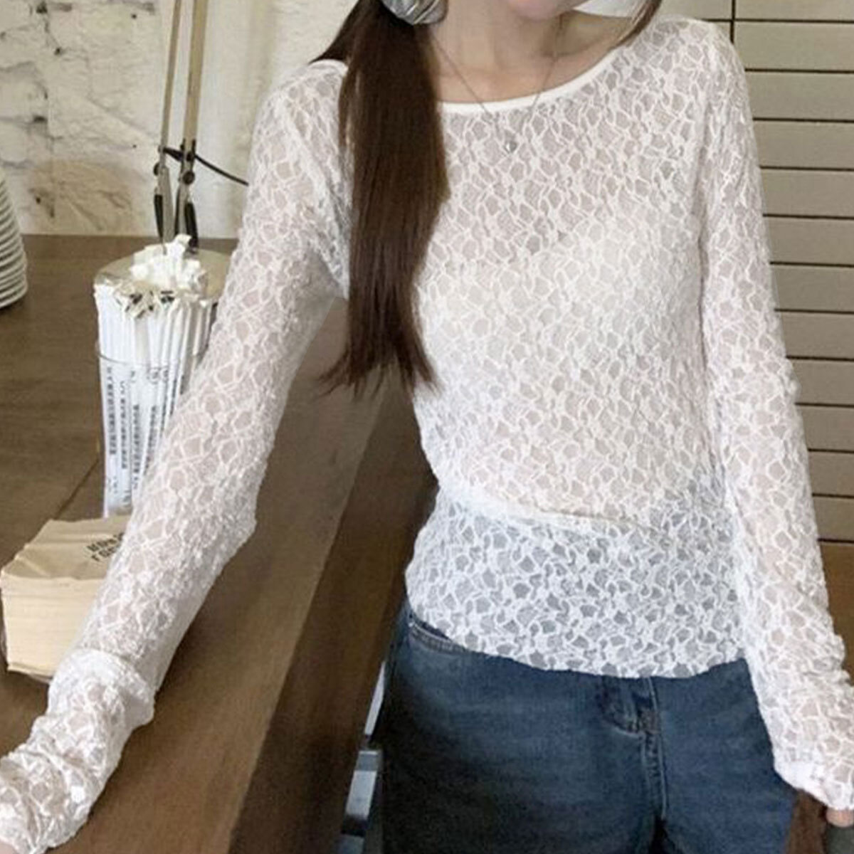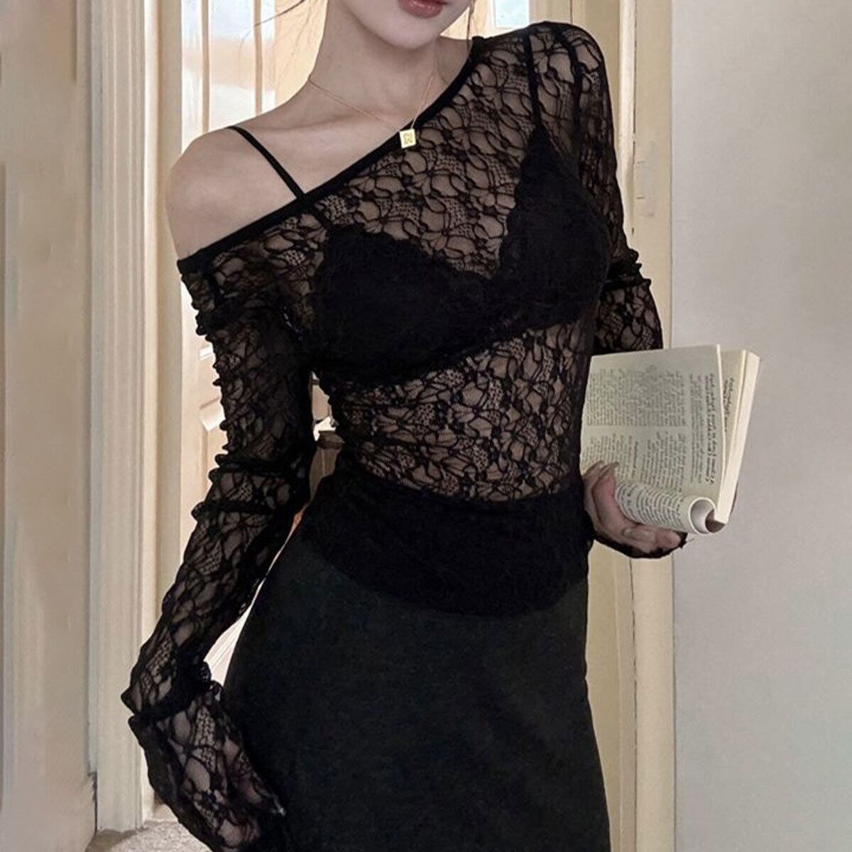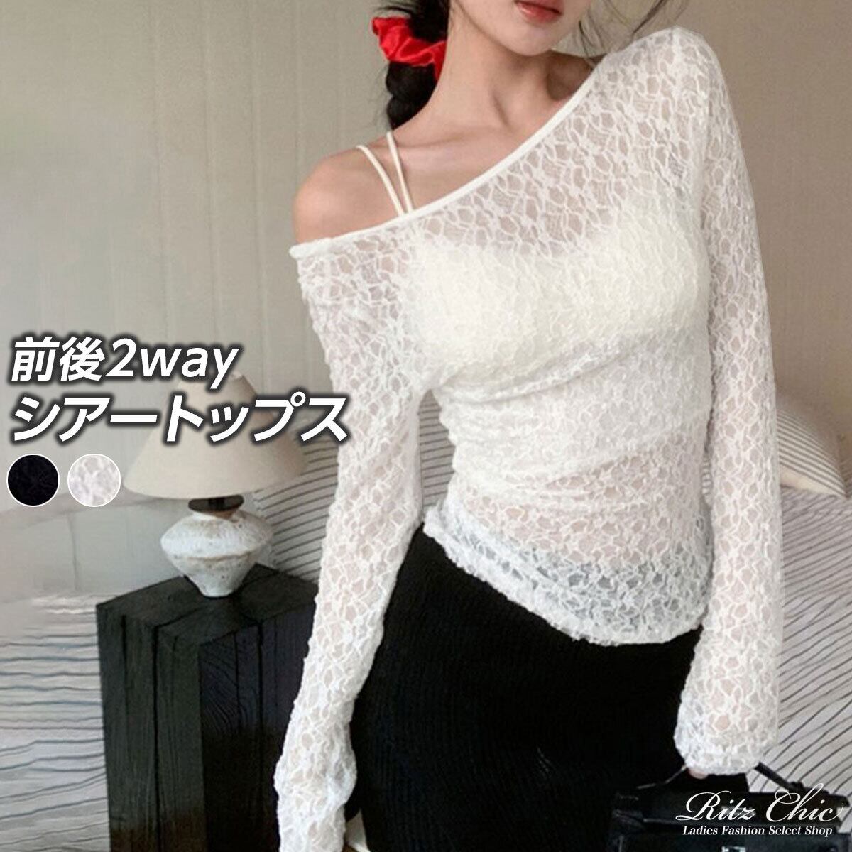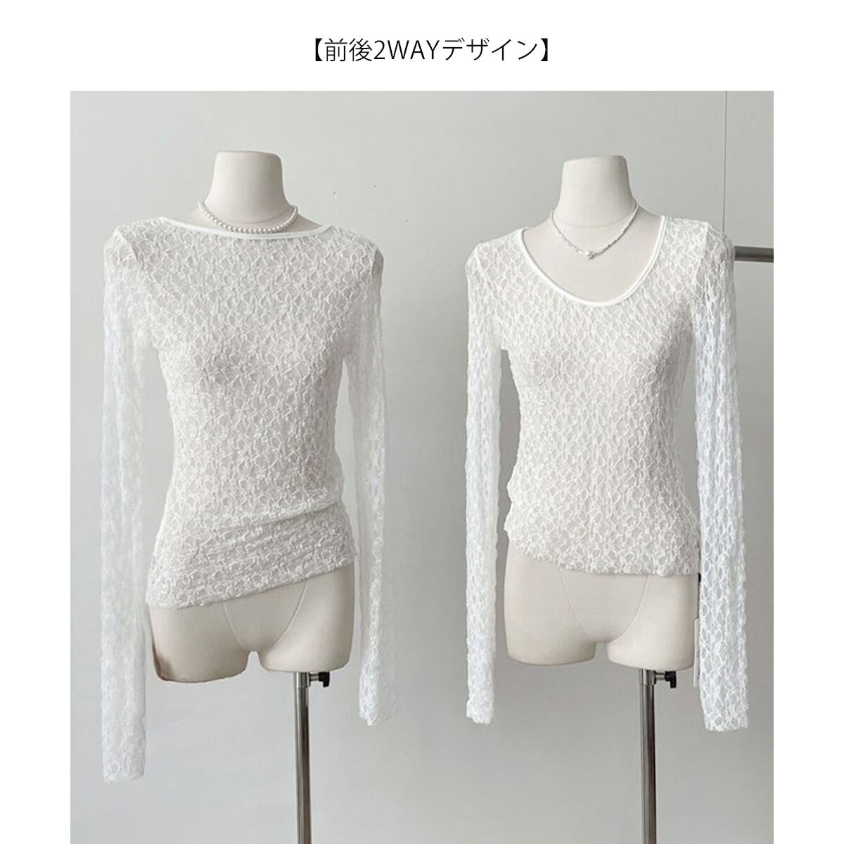 前後2way シアー トップス 長袖 レディース 春夏秋 韓国 きれいめ おしゃれ 大人 カジュアル フェミニン 重ね着 レイヤード 透け感 涼し気 薄手 レーストップス 大人可愛い 大人女子