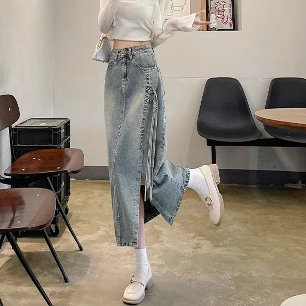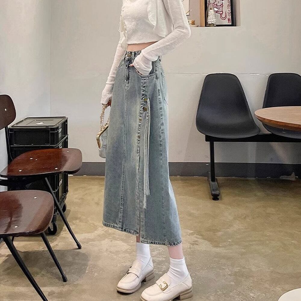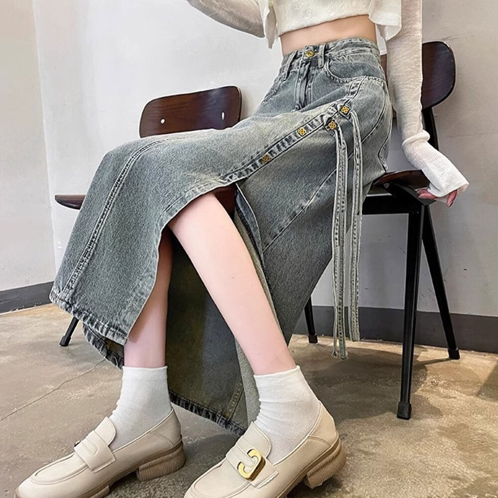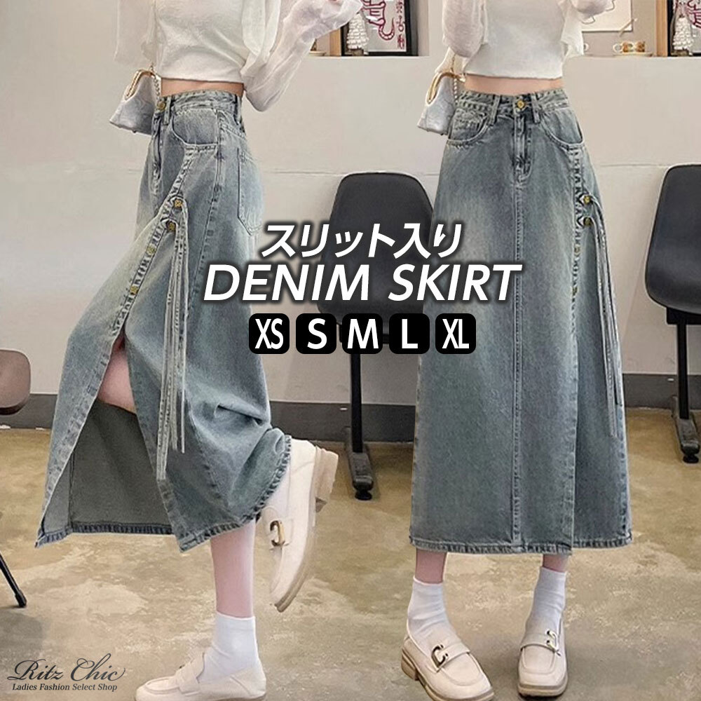 【送料無料】 スリット入り デニムスカート レディース 韓国 デニム ロングスカート きれいめ 大人 カジュアル おしゃれ レトロ 大人可愛い 大人女子