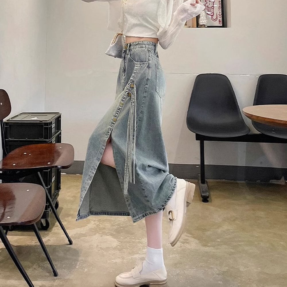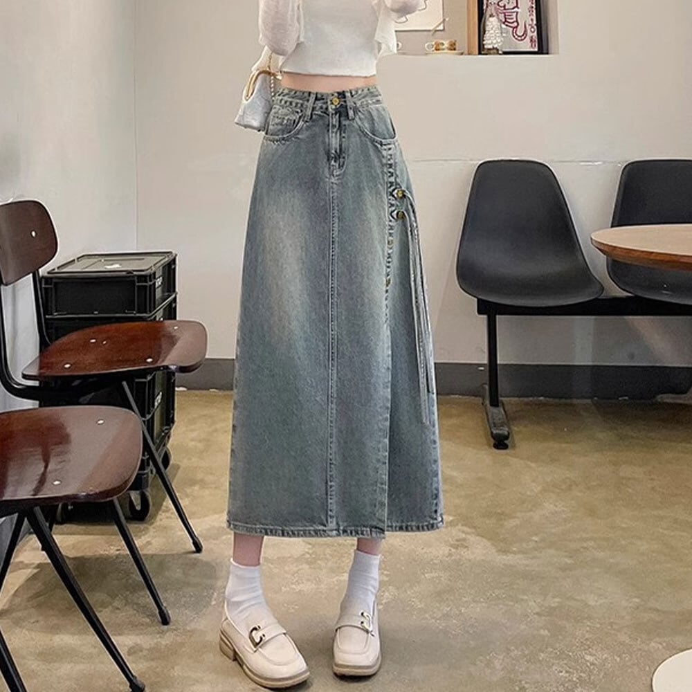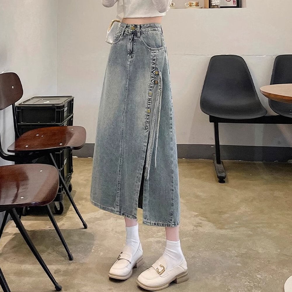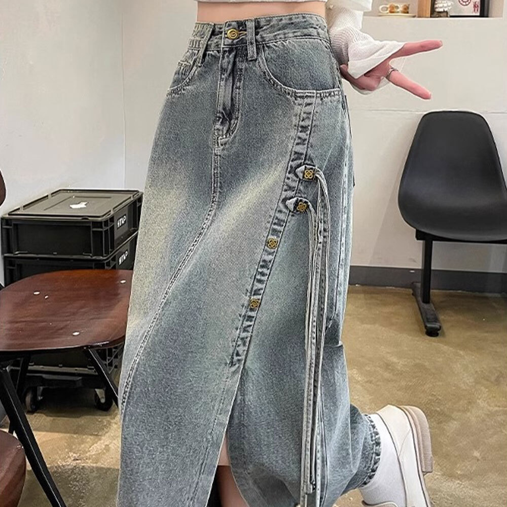 【送料無料】 スリット入り デニムスカート レディース 韓国 デニム ロングスカート きれいめ 大人 カジュアル おしゃれ レトロ 大人可愛い 大人女子
