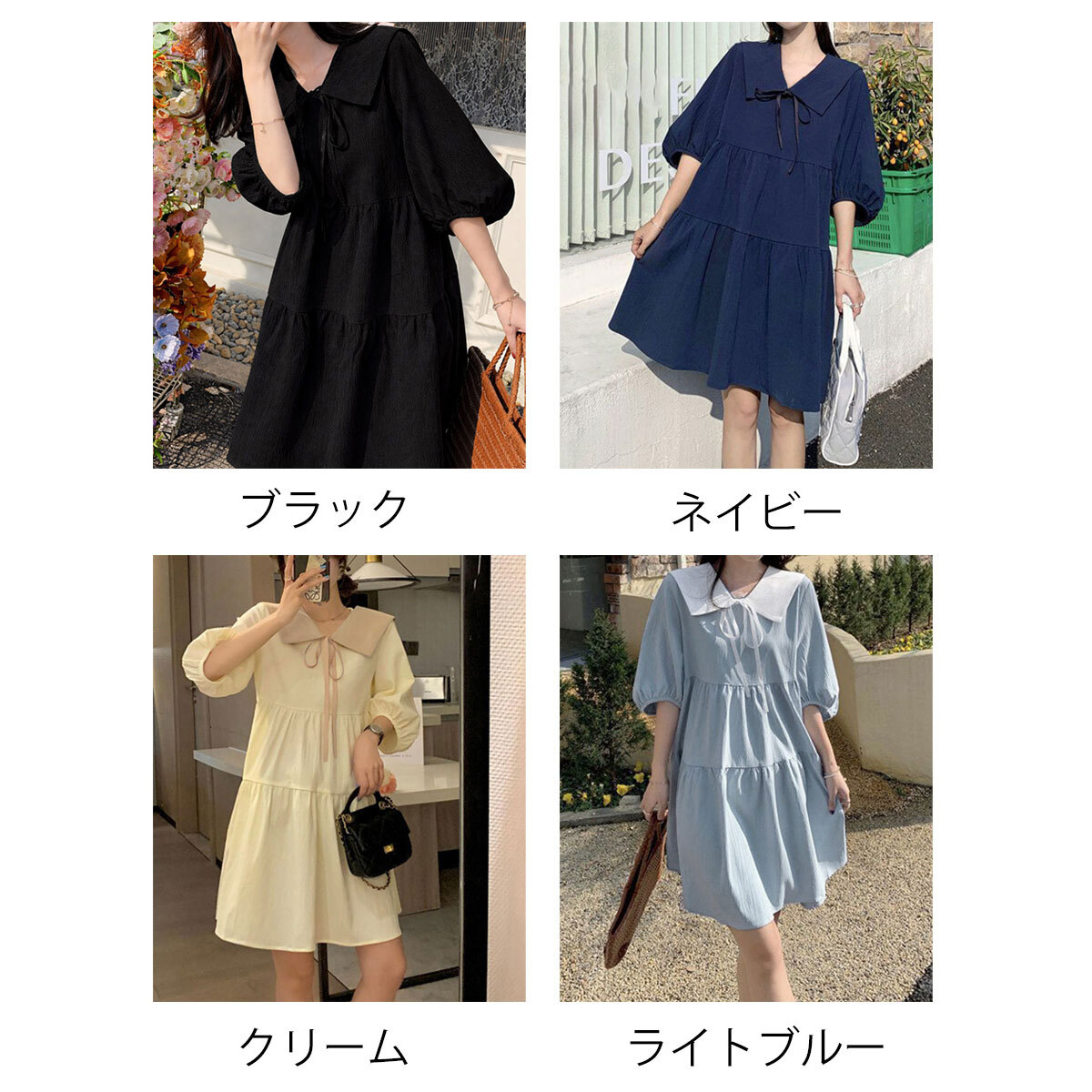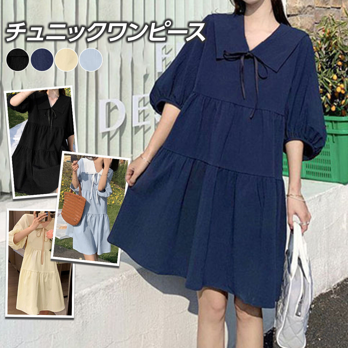 チュニック ワンピース 半袖 レディース 春夏 韓国 パフスリーブ きれいめ 大人 フェミニン かわいい おしゃれ Aライン ゆったり 体型カバー 無地 ティアード ミニワンピース 大人可愛い 大人女子
