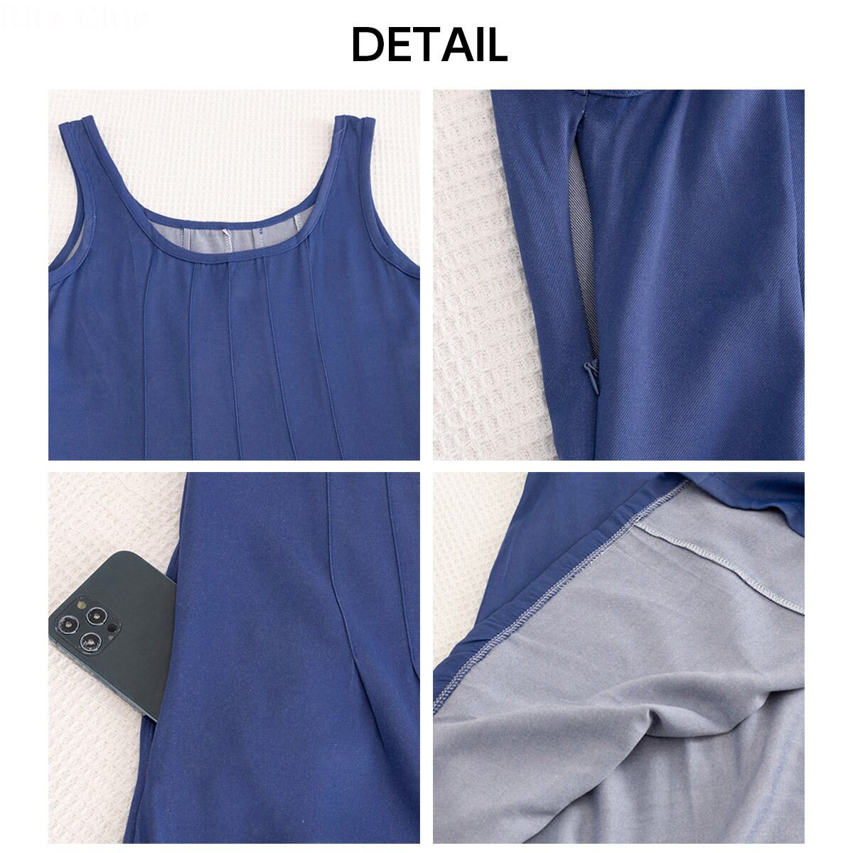 ◇デニム風デザインのノースリーブワンピース。