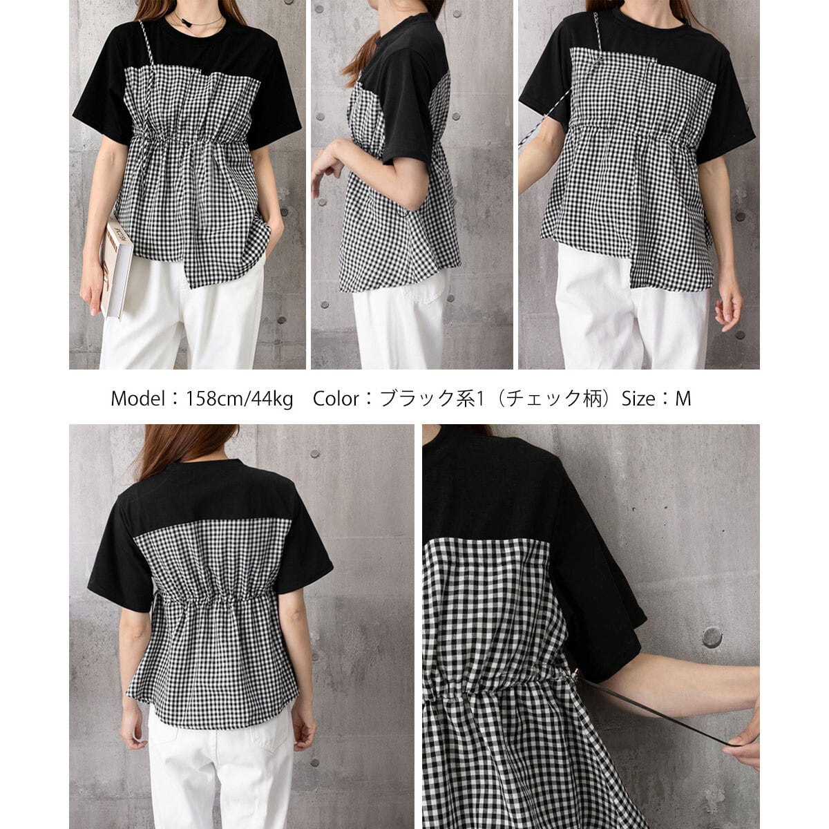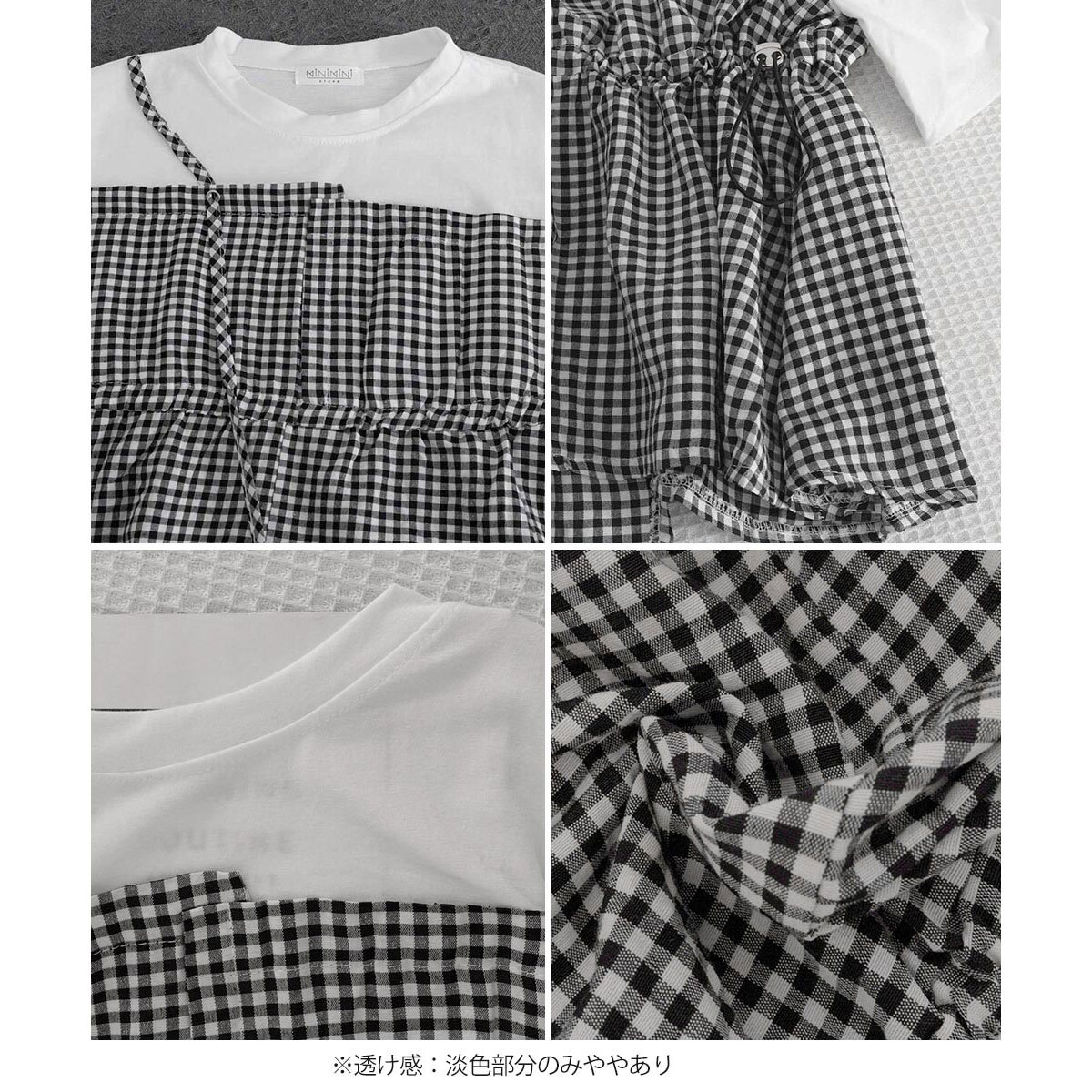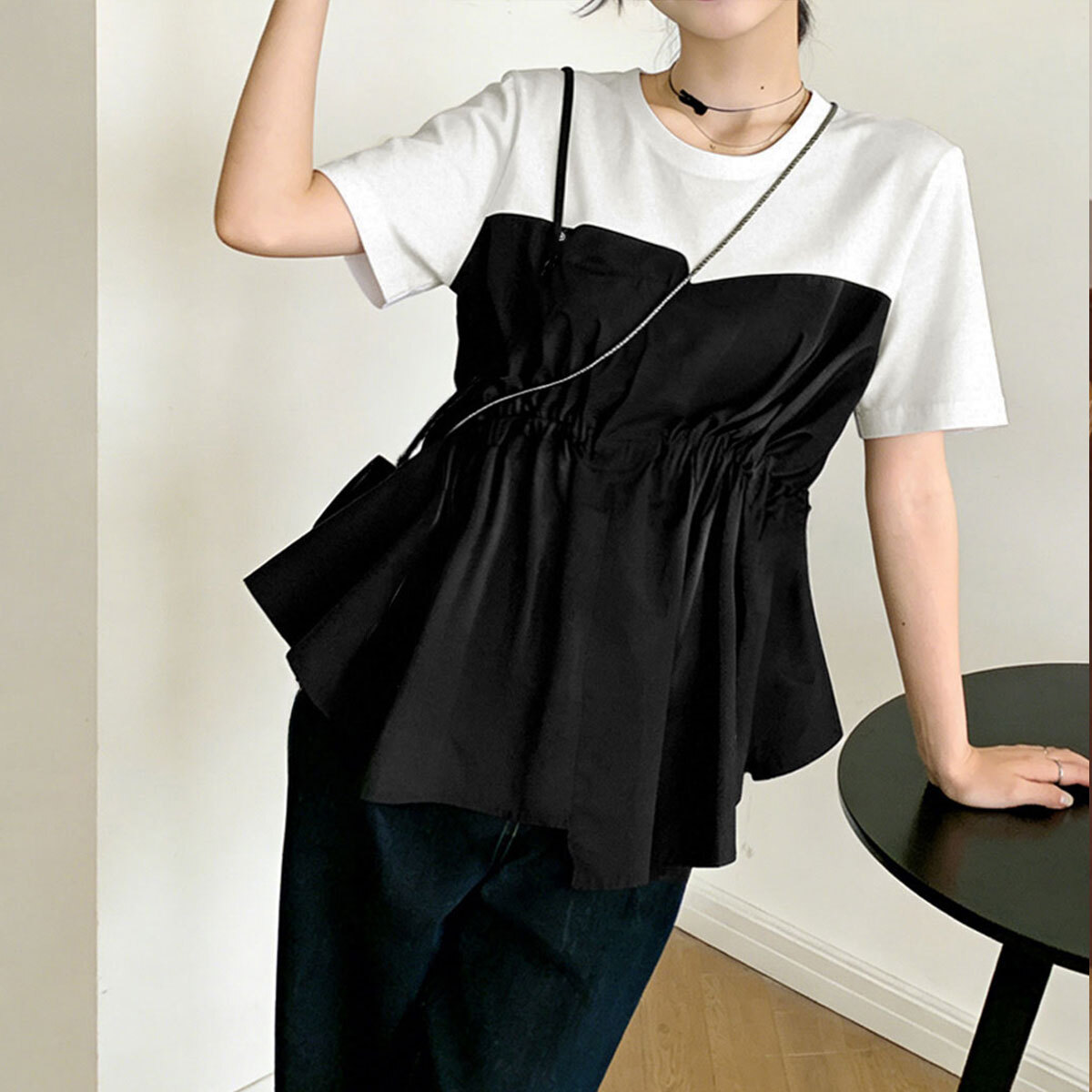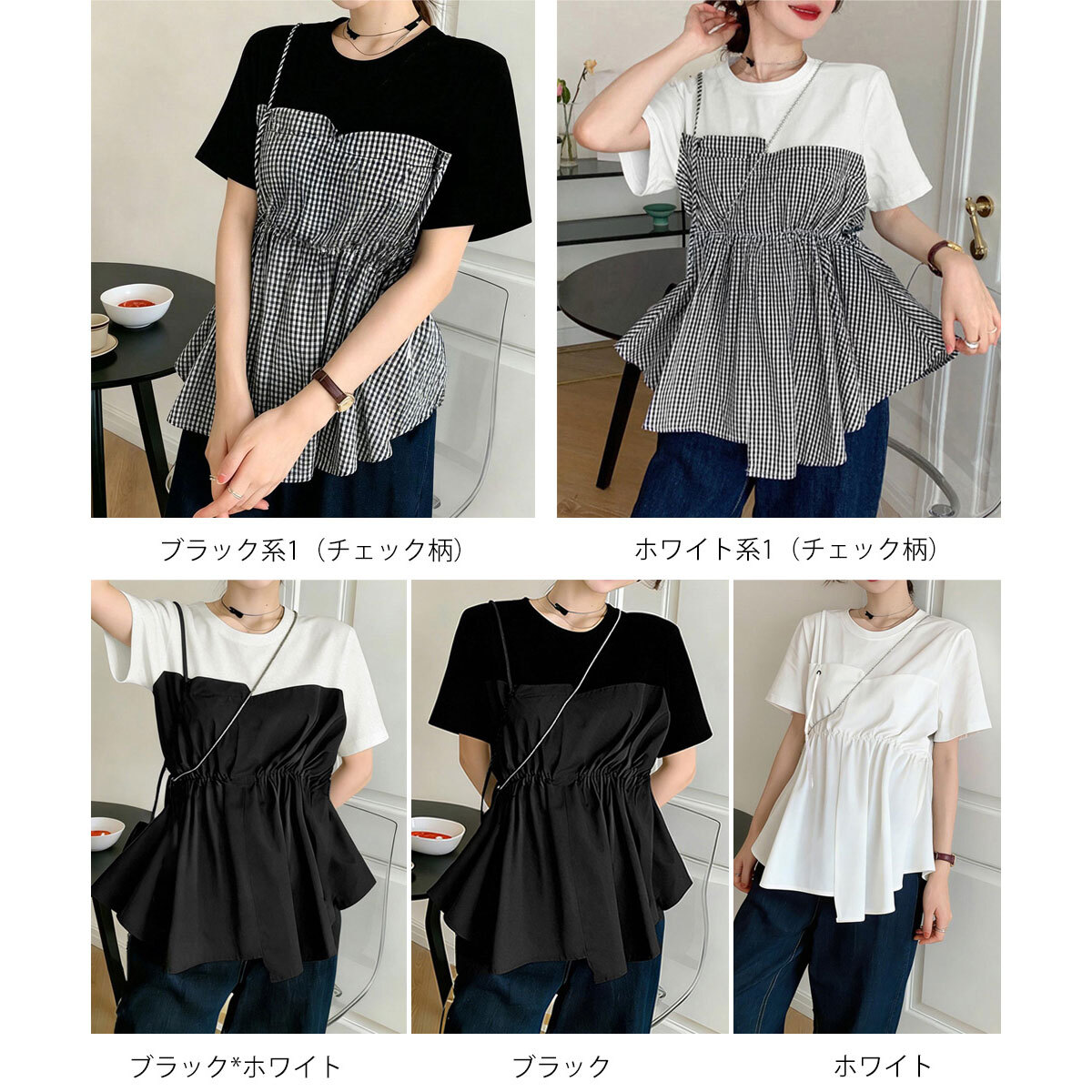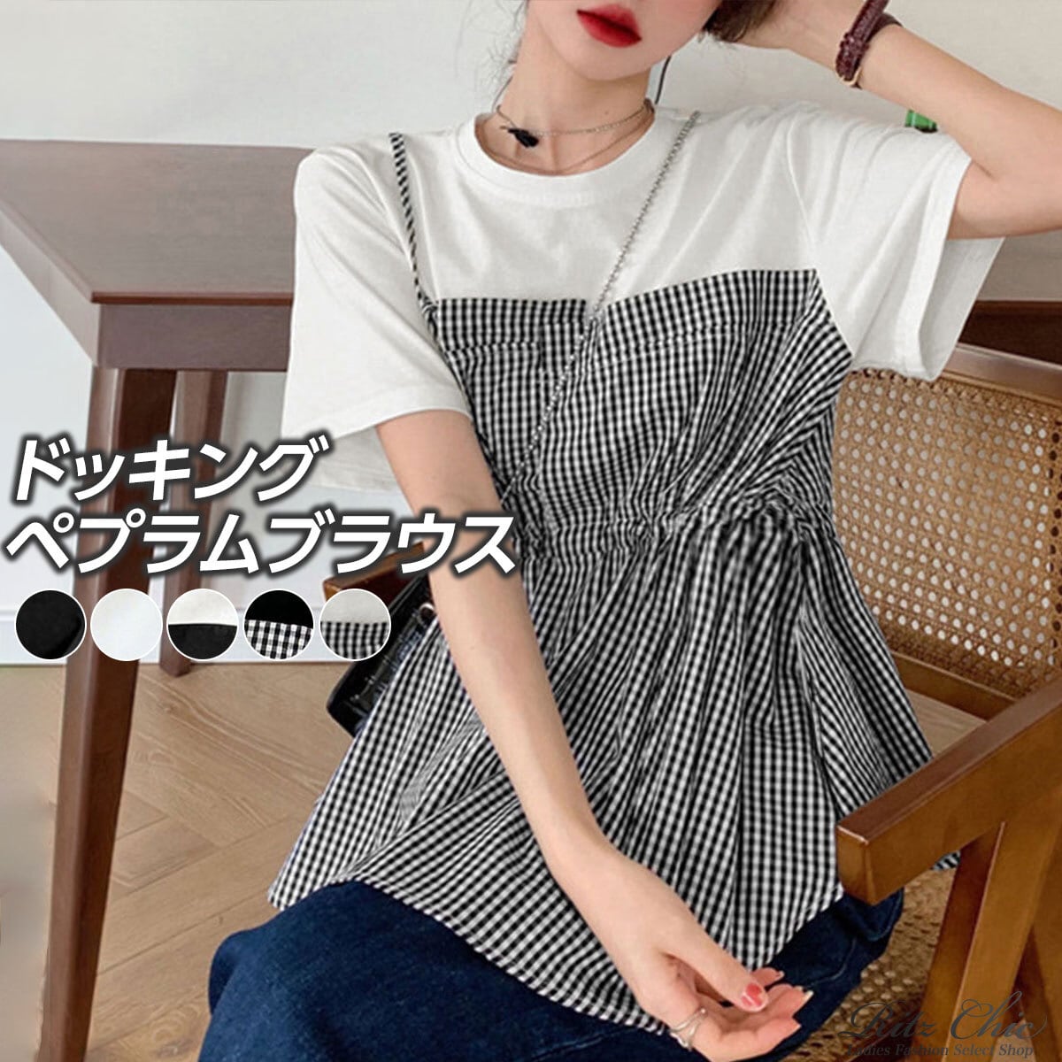 ペプラム ブラウス 重ね着風 レディース 春夏 韓国 きれいめ 大人 かわいい おしゃれ ドッキング トップス ビスチェ風 ゆったり 体型カバー フェミニン 大人可愛い 大人女子