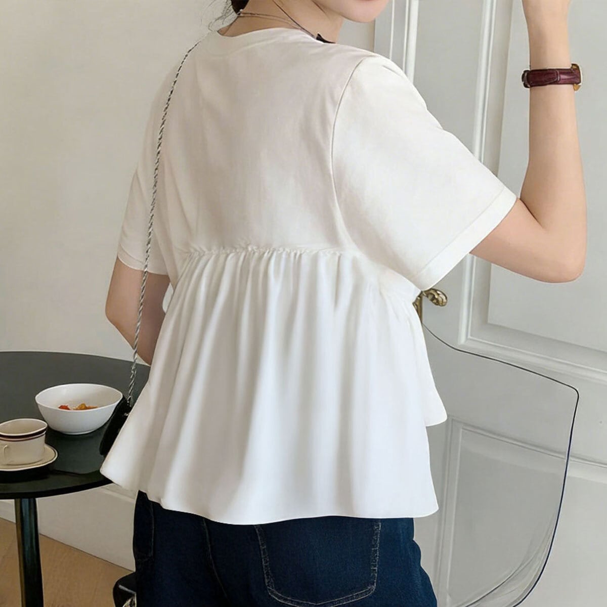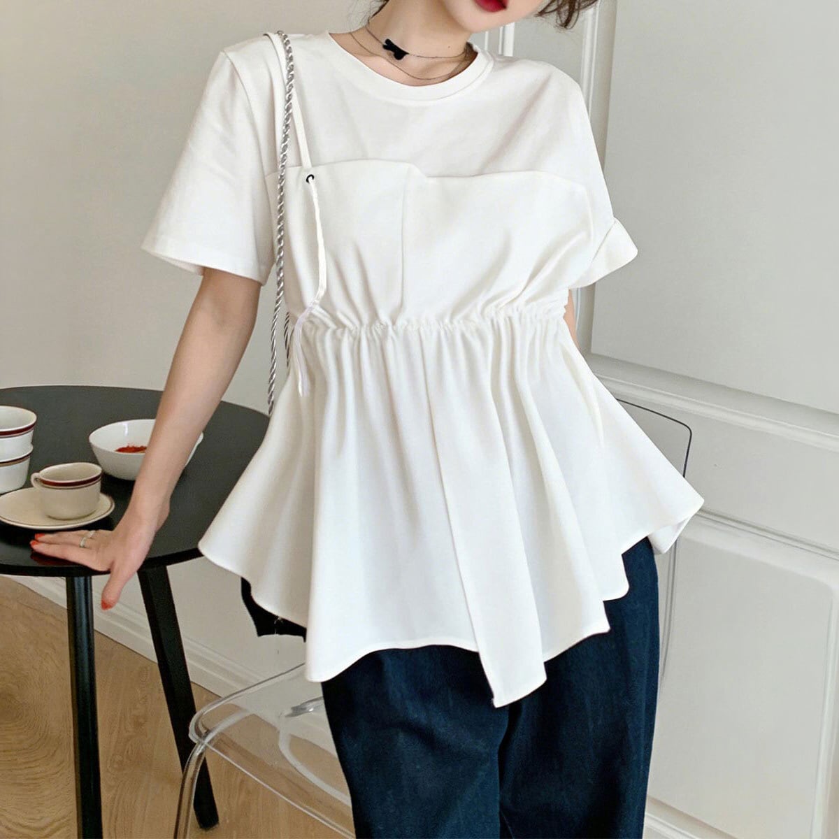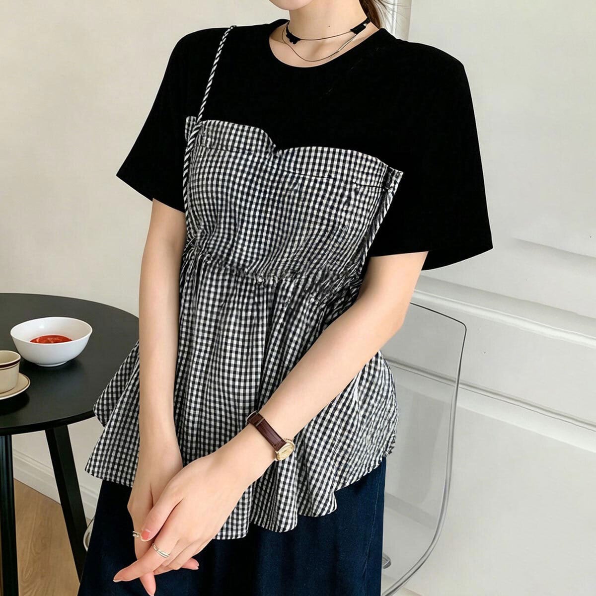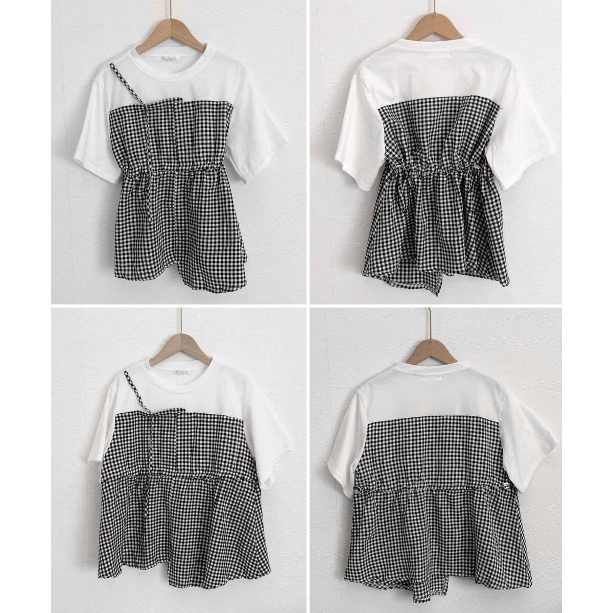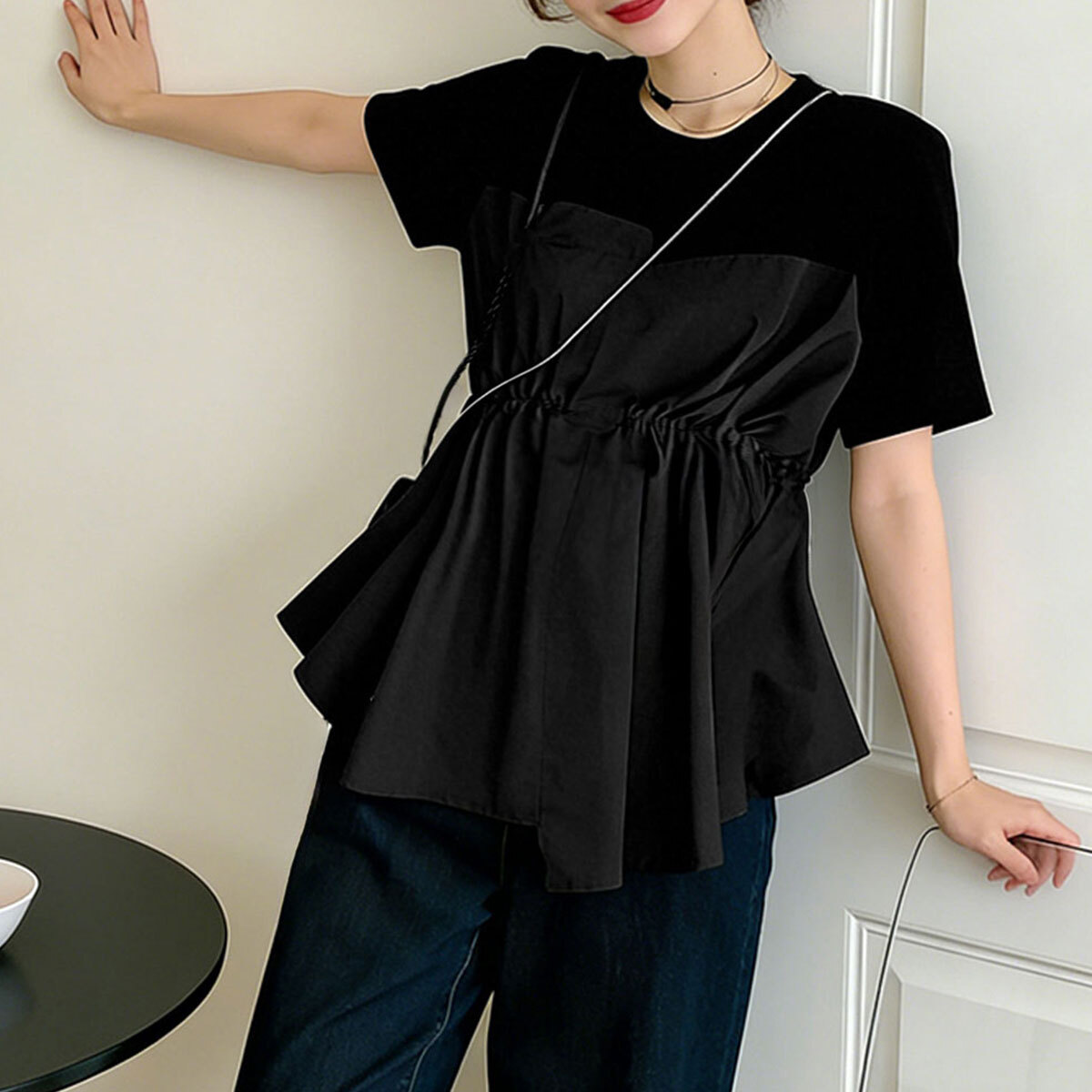 ペプラム ブラウス 重ね着風 レディース 春夏 韓国 きれいめ 大人 かわいい おしゃれ ドッキング トップス ビスチェ風 ゆったり 体型カバー フェミニン 大人可愛い 大人女子