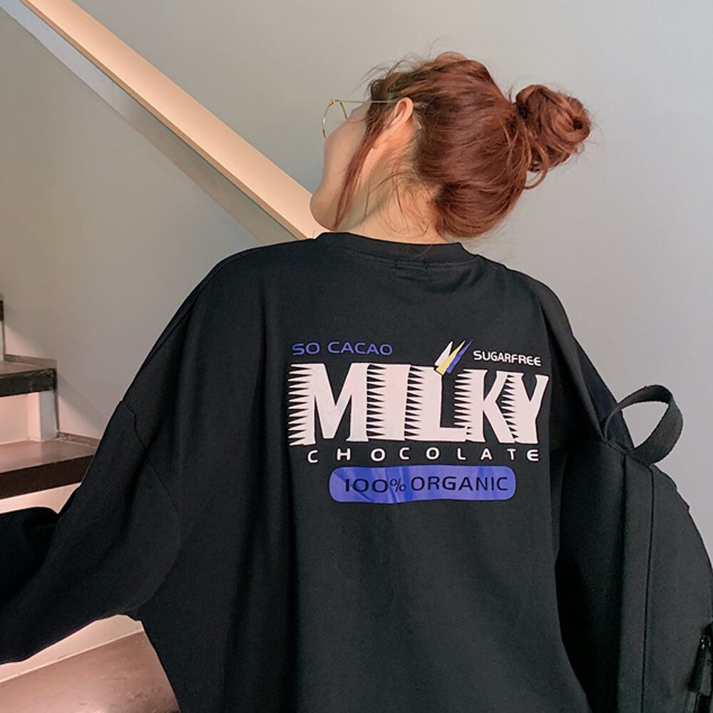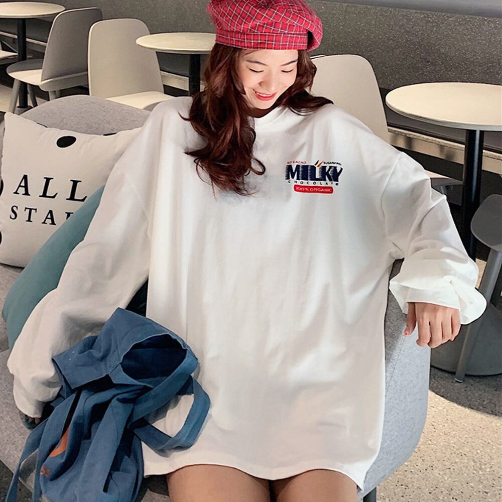 ロゴプリント Tシャツ 長袖 レディース 春秋 韓国 トップス おしゃれ ストリート ゆったり オーバーサイズ 大人 かわいい 体型カバー シンプル バックロゴ カットソー 大人可愛い 大人女子