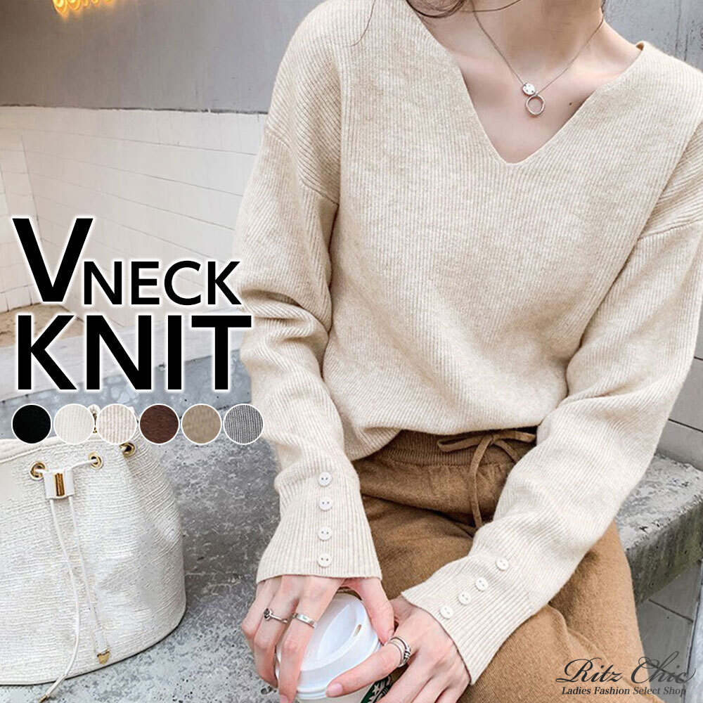 長袖 ニット セーター レディース トップス 春秋冬 きれいめ 大人 かわいい シンプル Vネック おしゃれ カジュアル 大人可愛い 大人女子
