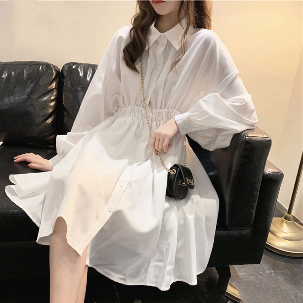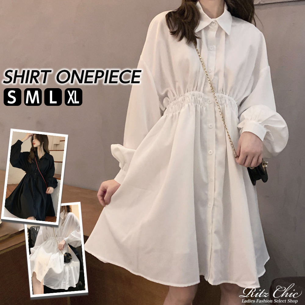 ワンピース 長袖 レディース 春夏秋 韓国 シャツワンピース きれいめ 大人 かわいい フェミニン シンプル ボリュームスリーブ おしゃれ 大人可愛い 大人女子