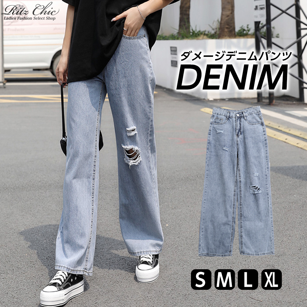 ダメージ ジーンズ レディース ストレート デニム パンツ 大人 おしゃれ カジュアル ストリート系 ダメージ加工 かわいい きれいめ 大人可愛い 大人女子