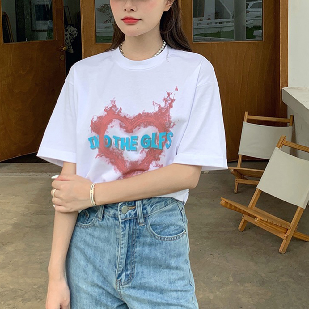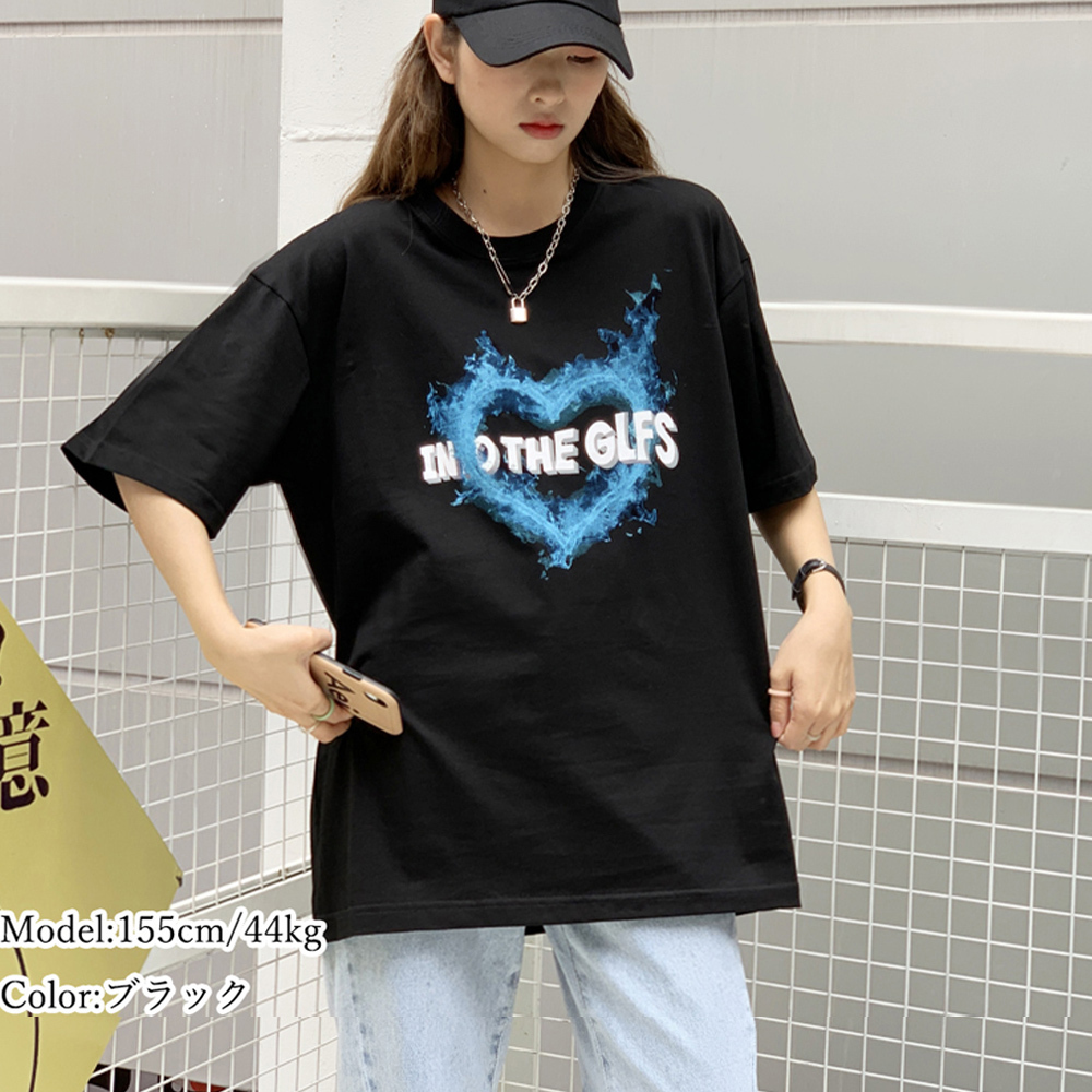 フロントの大きなハートロゴデザインがお洒落で可愛く、1枚着るだけで存在感抜群のレディースTシャツです。