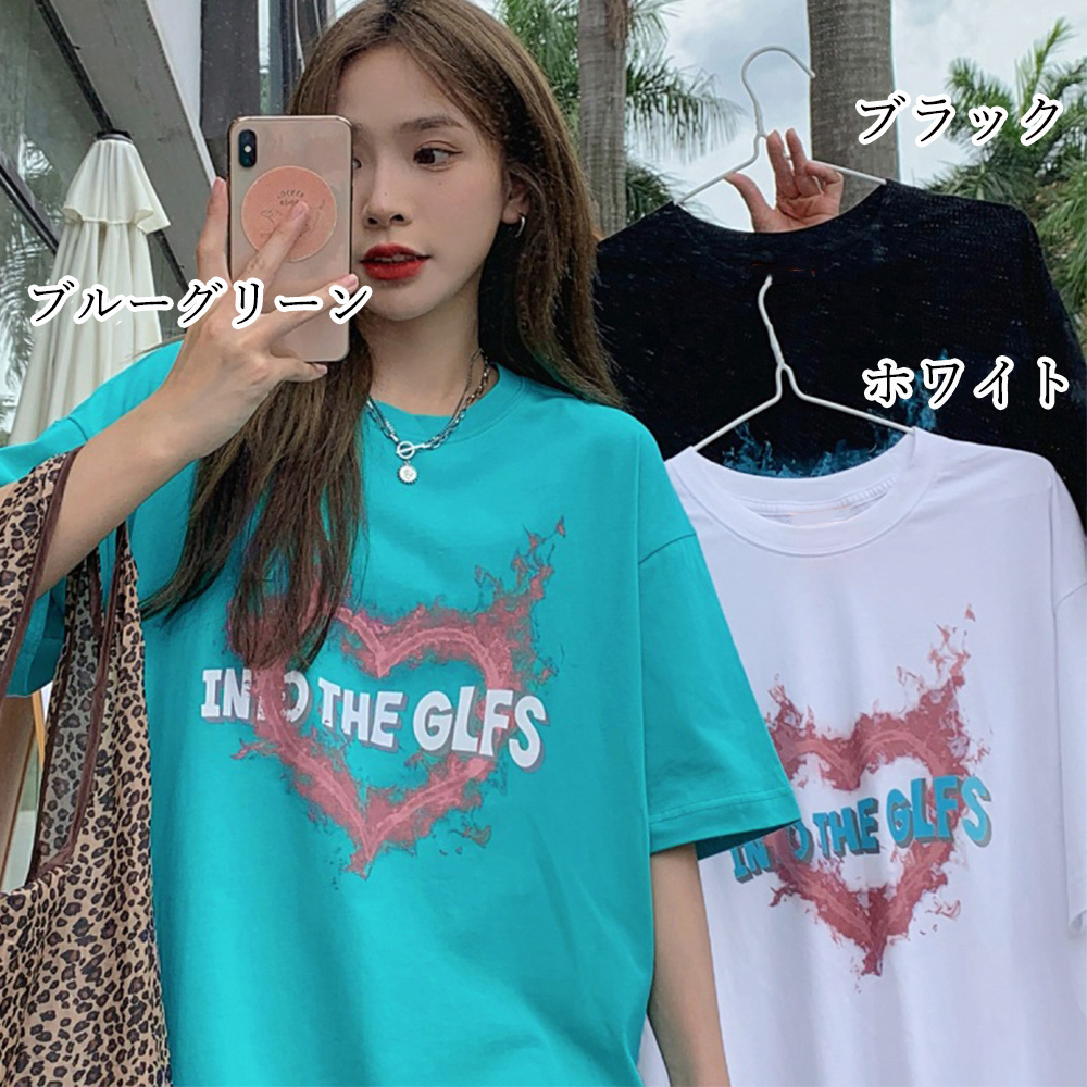 ハート ロゴ Tシャツ レディース 春夏秋 半袖 トップス きれいめ 大人 かわいい おしゃれ カジュアル 大人可愛い 大人女子