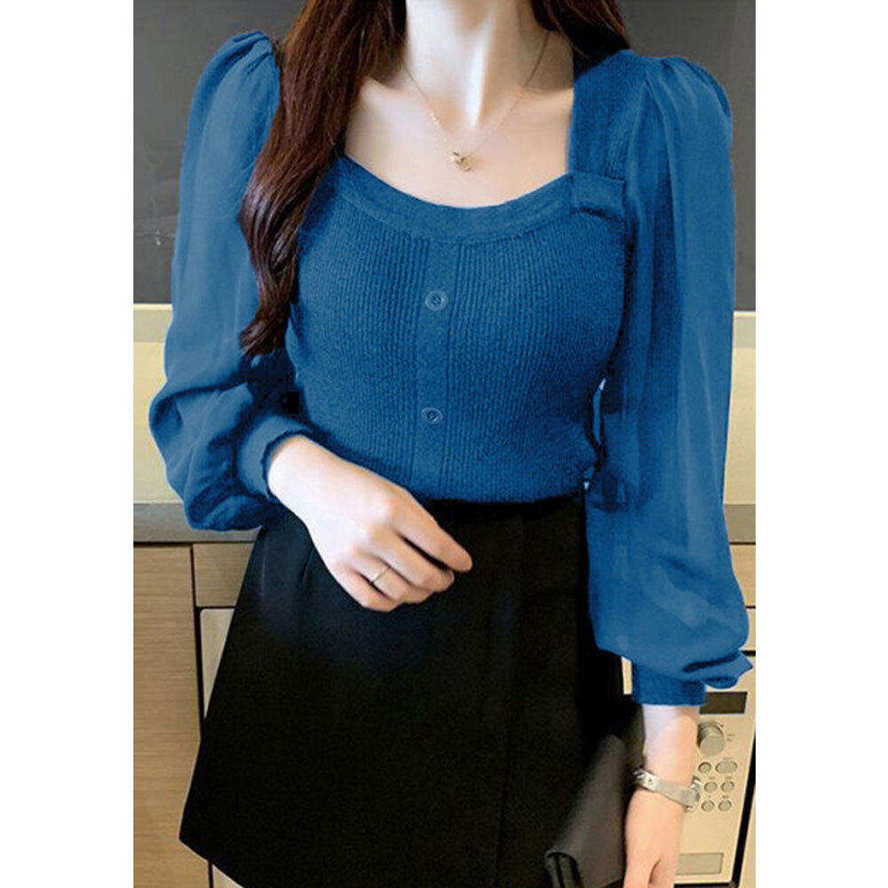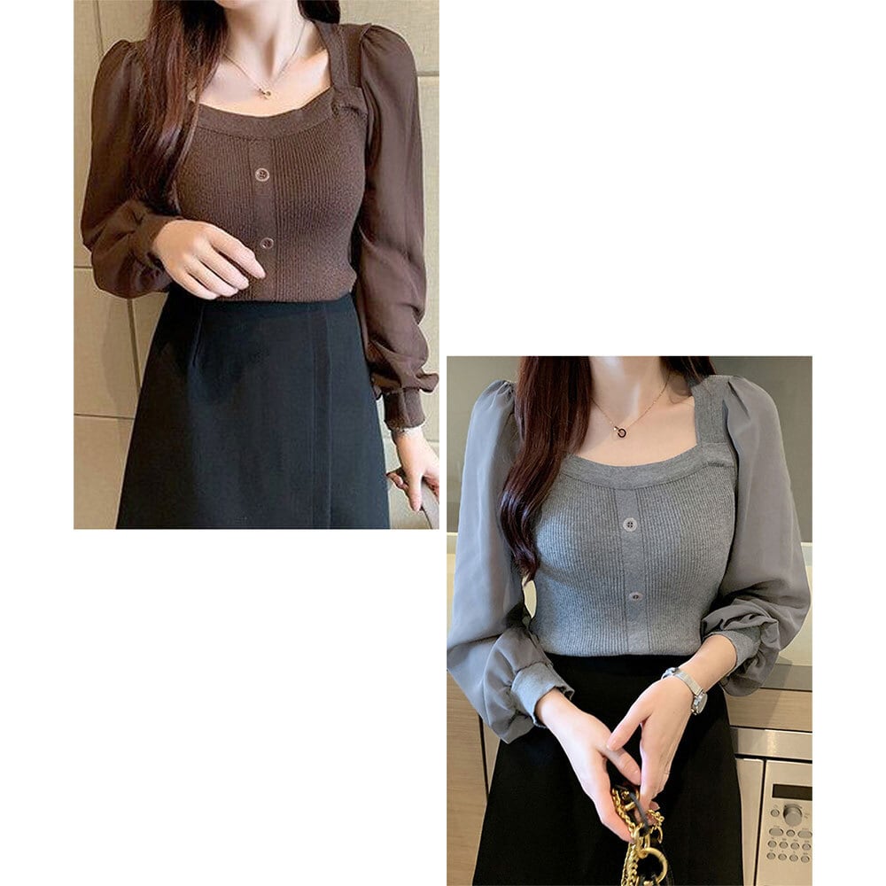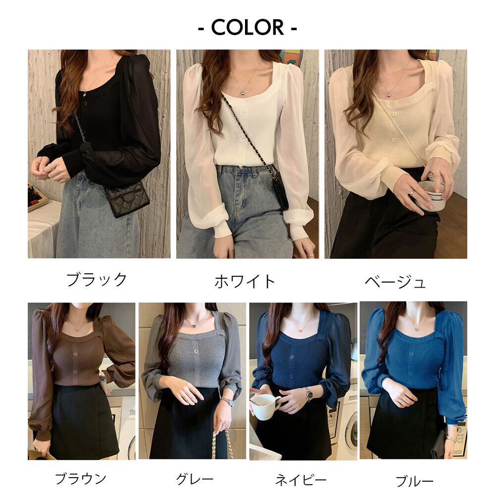 シフォン袖 ニット ブラウス トップス レディース 韓国 春夏秋 きれいめ 大人 かわいい オフィス ビジネス 透け感 おしゃれ カジュアル 大人可愛い 大人女子