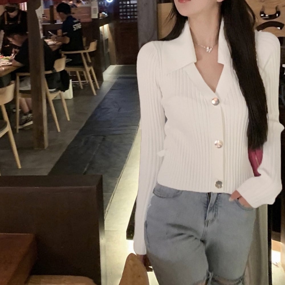 折り襟 リブニット カーディガン レディース 春秋冬 羽織り トップス 韓国 きれいめ おしゃれ かわいい 大人 カジュアル ニット オフィス ビジネス 大人可愛い 大人女子