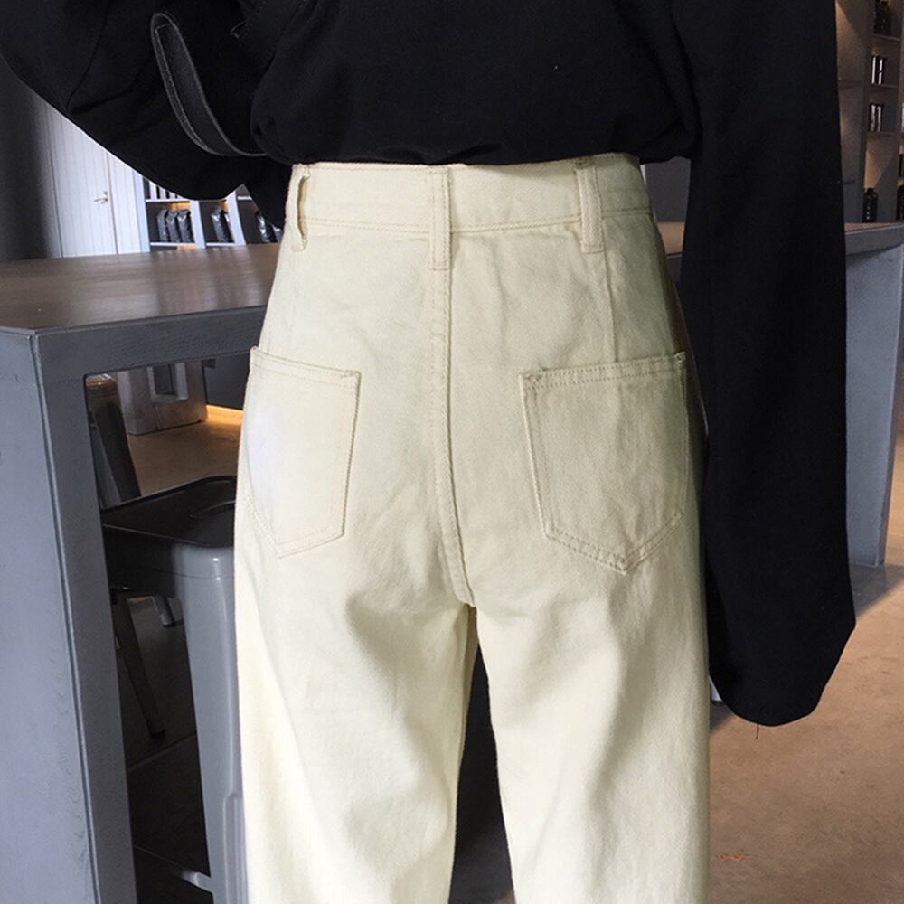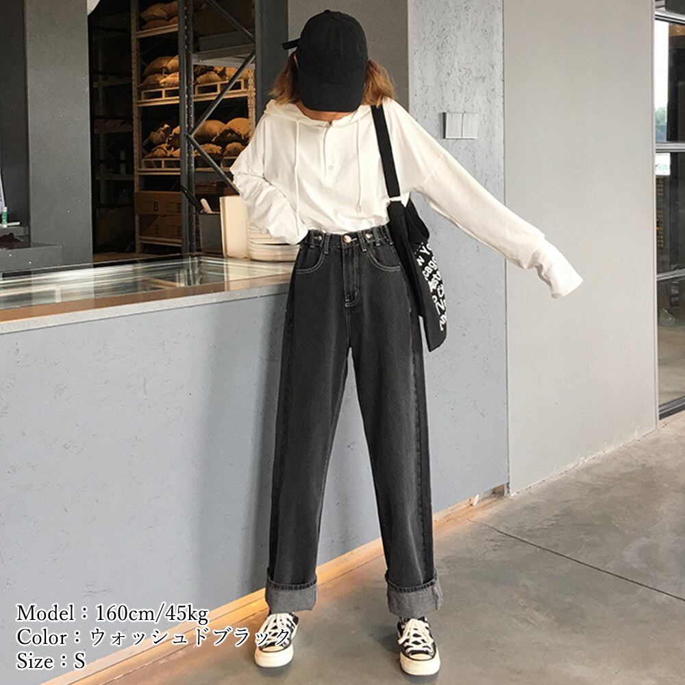 デニムパンツ ハイウエスト レディース 韓国 ストレート ジーンズ 大人 カジュアル ゆったり 美脚 ウエストボタン おしゃれ 春 夏 秋 冬 大人可愛い 大人女子