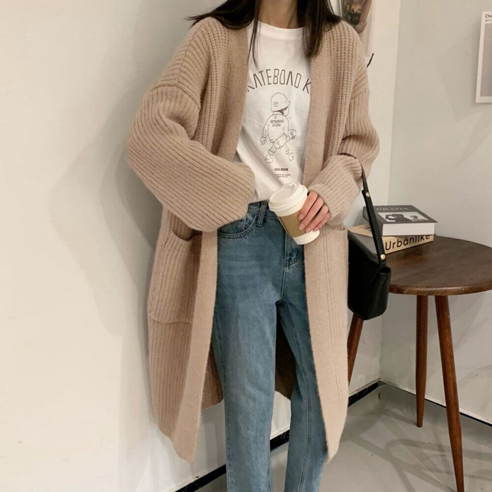 ニット ロングカーディガン レディース 秋冬 韓国 トッパー カーディガン 長袖 きれいめ シンプル 防寒 保温 アウター おしゃれ 大人 カジュアル 通勤 通学 羽織り 大人可愛い 大人女子