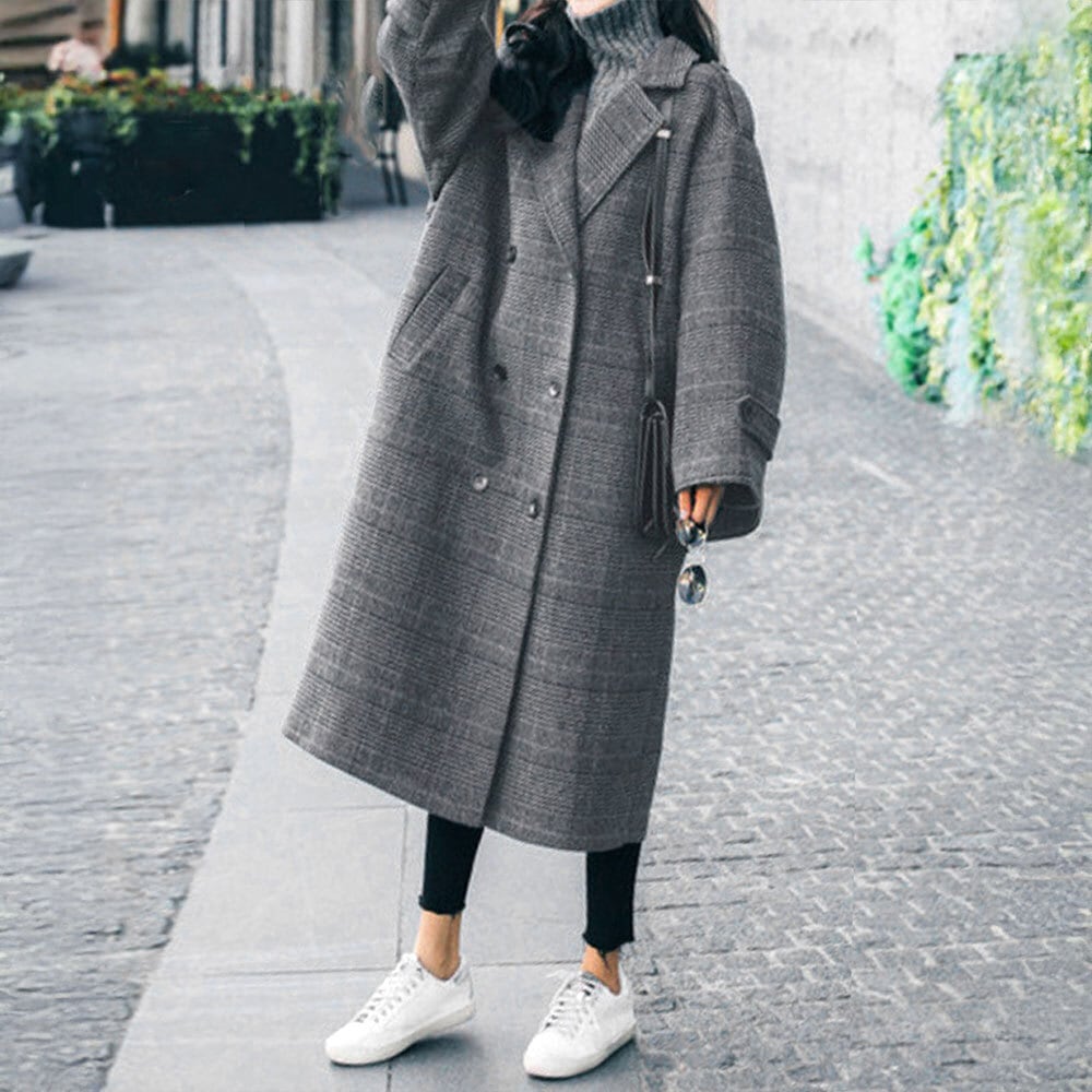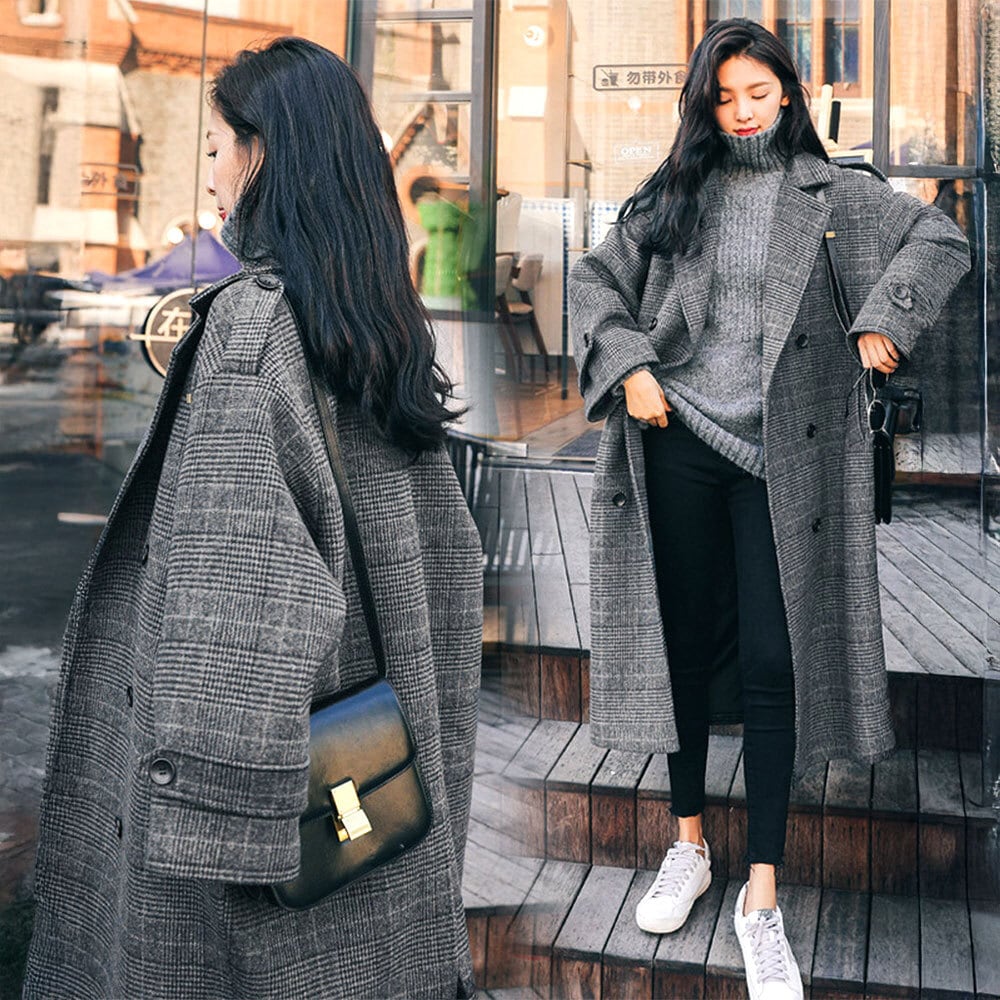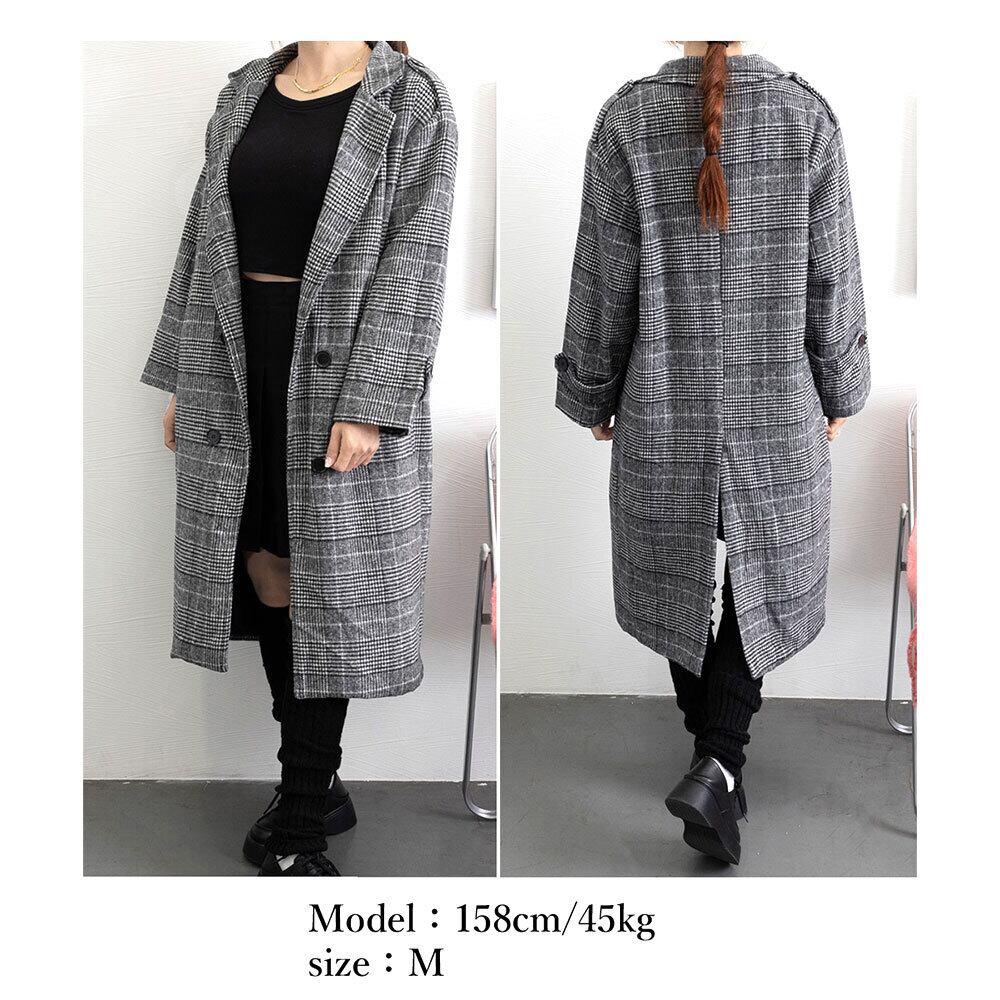 落ち着いたダークグレーのグレンチェック柄に、ロングな着丈が大人の女性らしさを強調して、大人可愛いを貴女のスタイリングに取り入れてくれます。