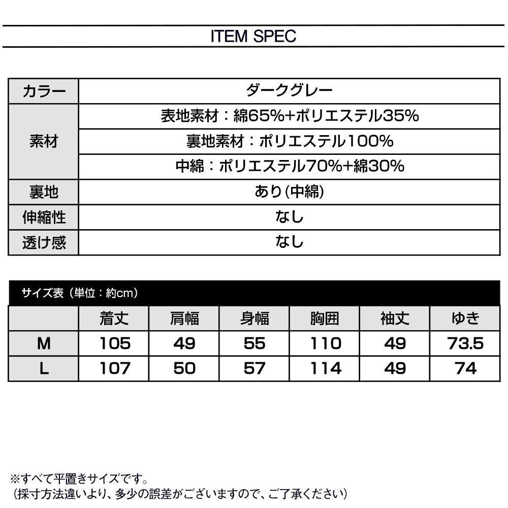 中綿入りのチェスターコートなので寒い季節にも暖かく、ゆったりと着用いただけるので着心地も抜群のアイテムです。