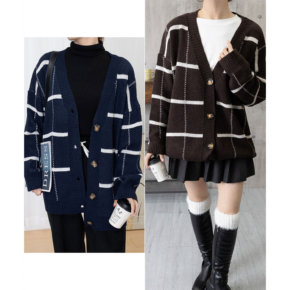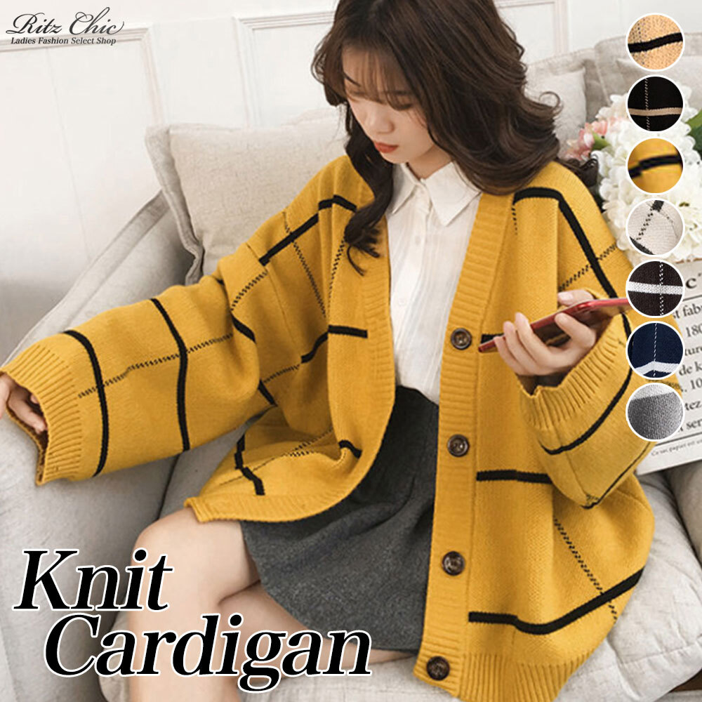 トレンドのゆるシルエットでラフに羽織れるチェック柄のニットカーディガンです。
