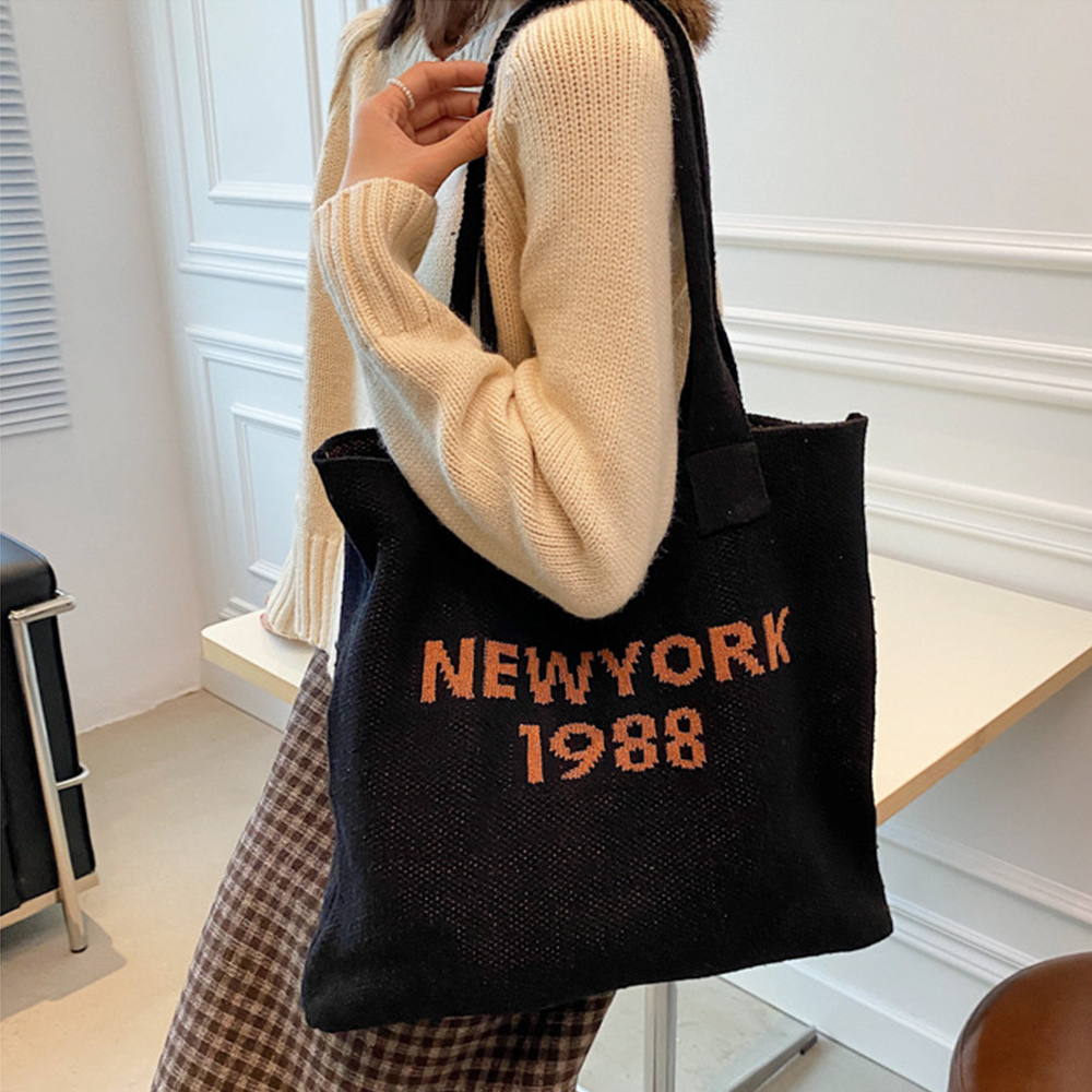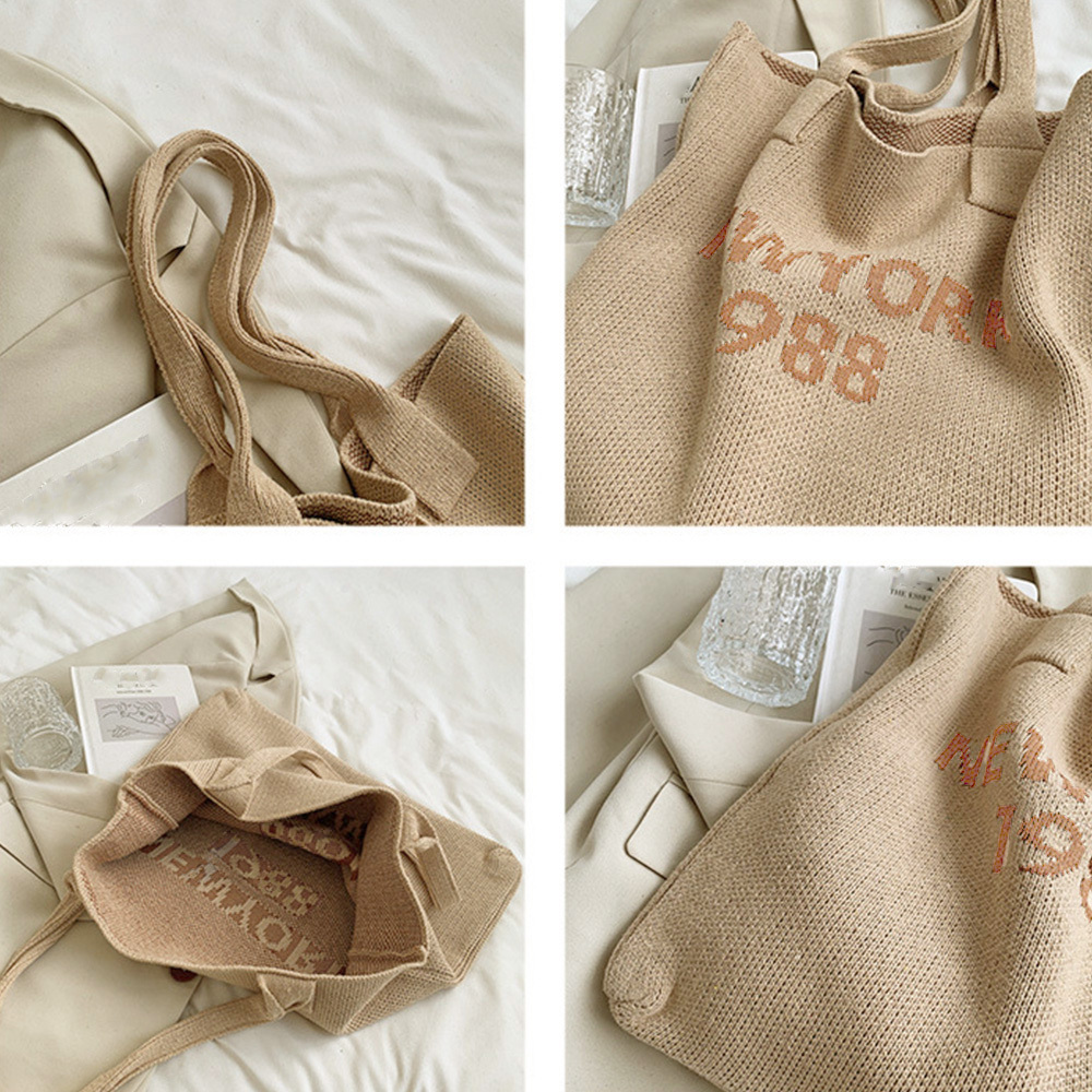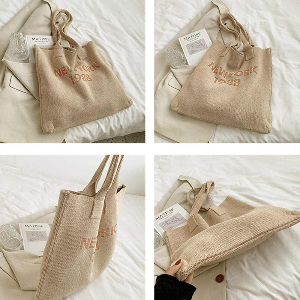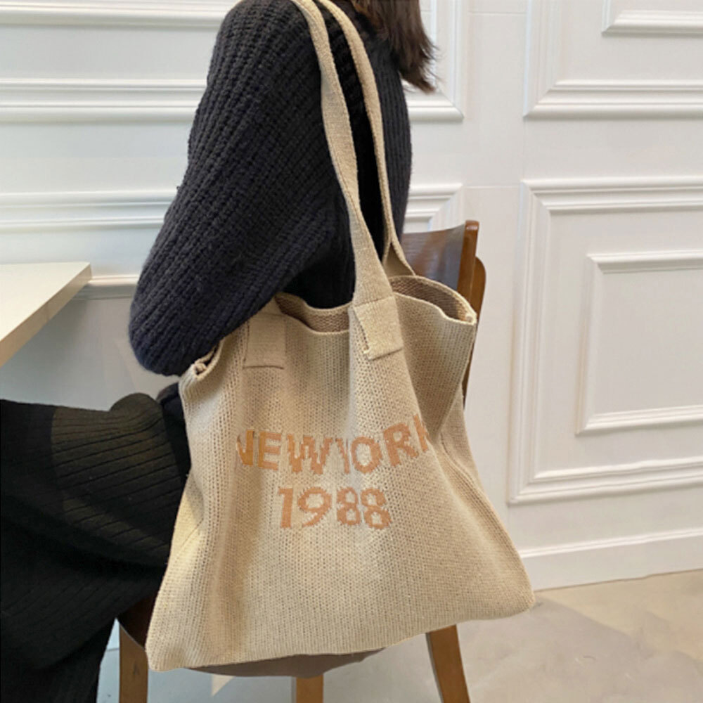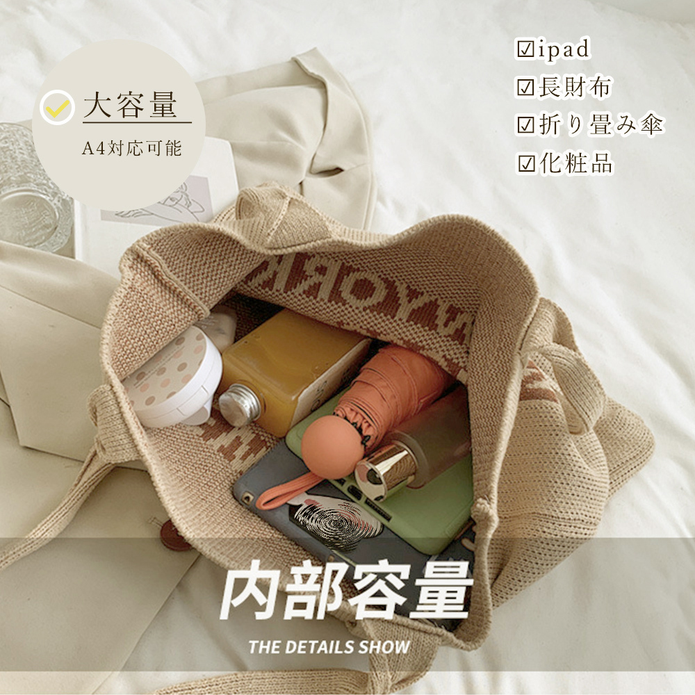 ニット トート バッグ レディース ロゴ 大容量 A4 通勤 通学 大人 かわいい きれいめ おしゃれ カジュアル 肩掛け 軽量 大人可愛い 大人女子