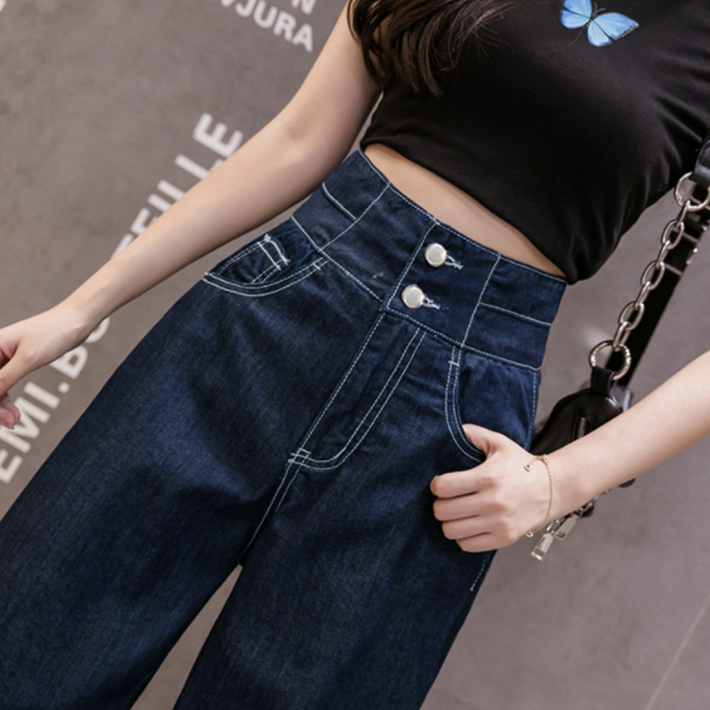 ハイウエスト仕様でスタイルを綺麗に魅せて、女性らしいラインを見せながら美脚脚長効果も期待出来る韓国風のデニムワイドパンツです。