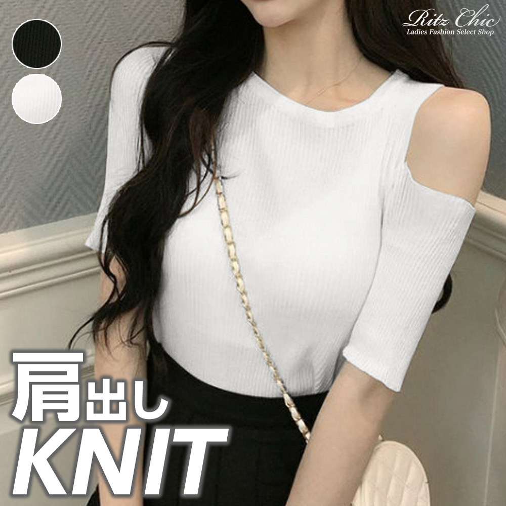 肩出し ニット トップス レディース 春夏 韓国 大人 きれいめ おしゃれ かわいい 肌見せ ストレッチ フェミニン 大人可愛い 大人女子