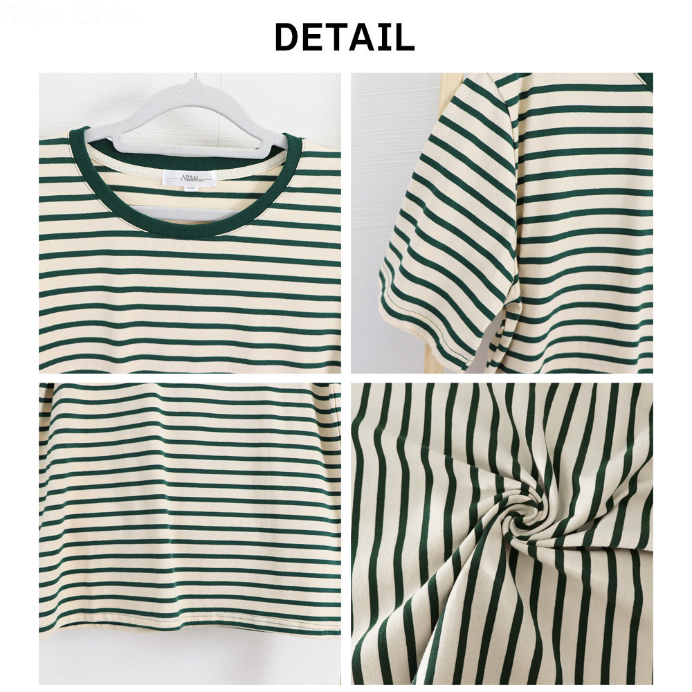 ボーダー柄 Tシャツ レディース 春夏秋 韓国 半袖 大人 カジュアル おしゃれ レトロ トップス シンプル ゆったり 大人可愛い 大人女子