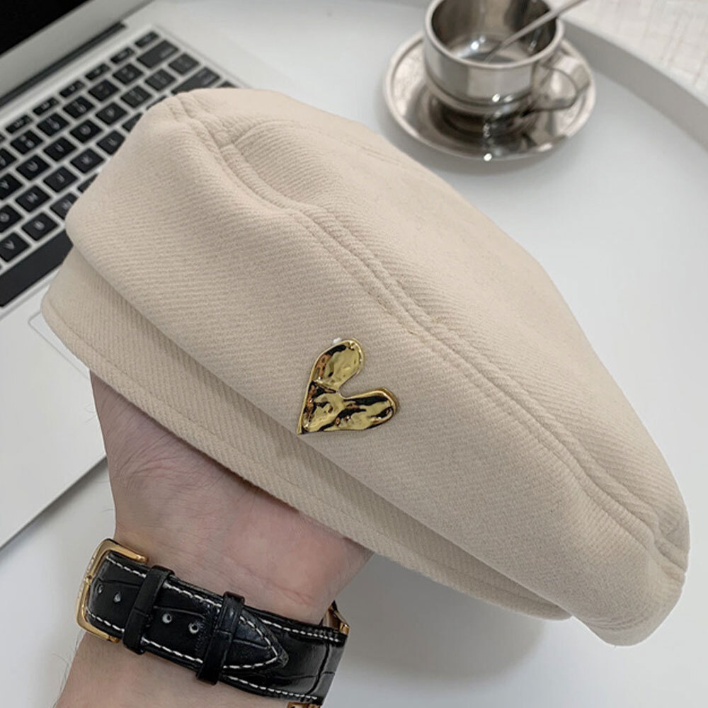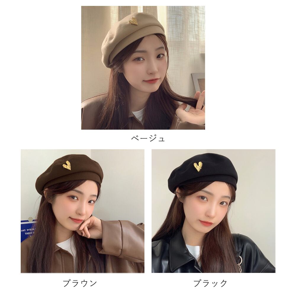 大人女子の春秋冬コーデにぴったりな、ハートデザインがお洒落で可愛い韓国風のベレー帽です。